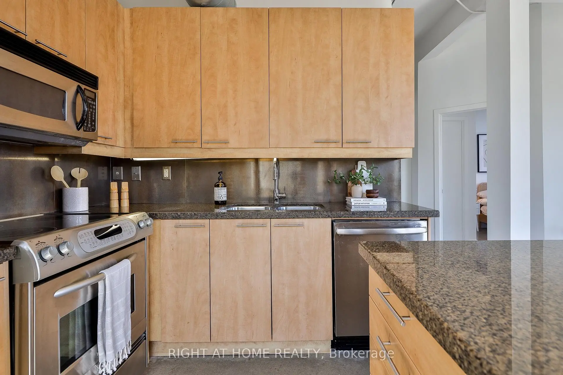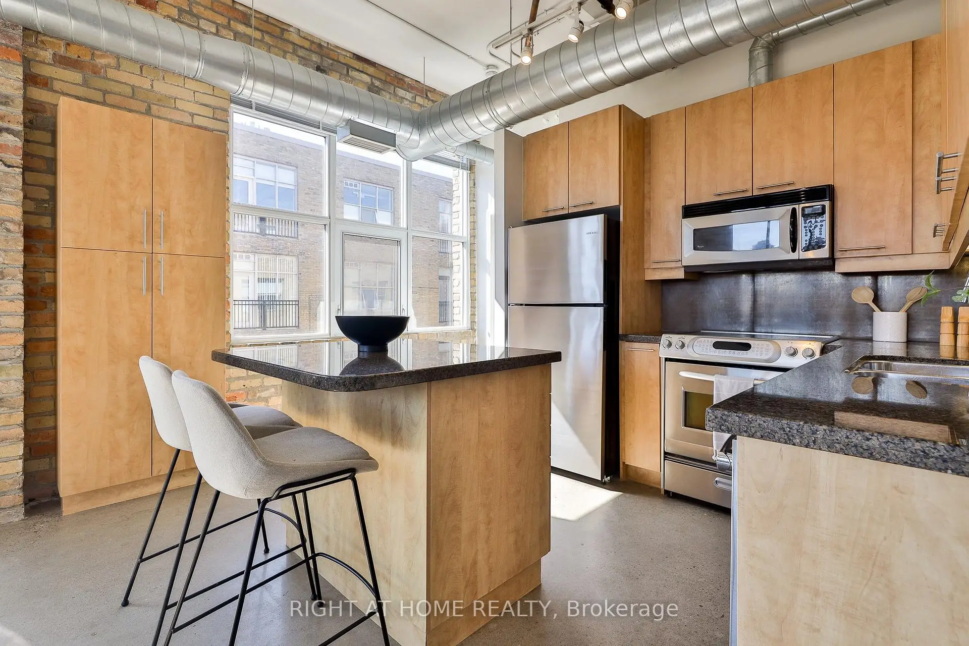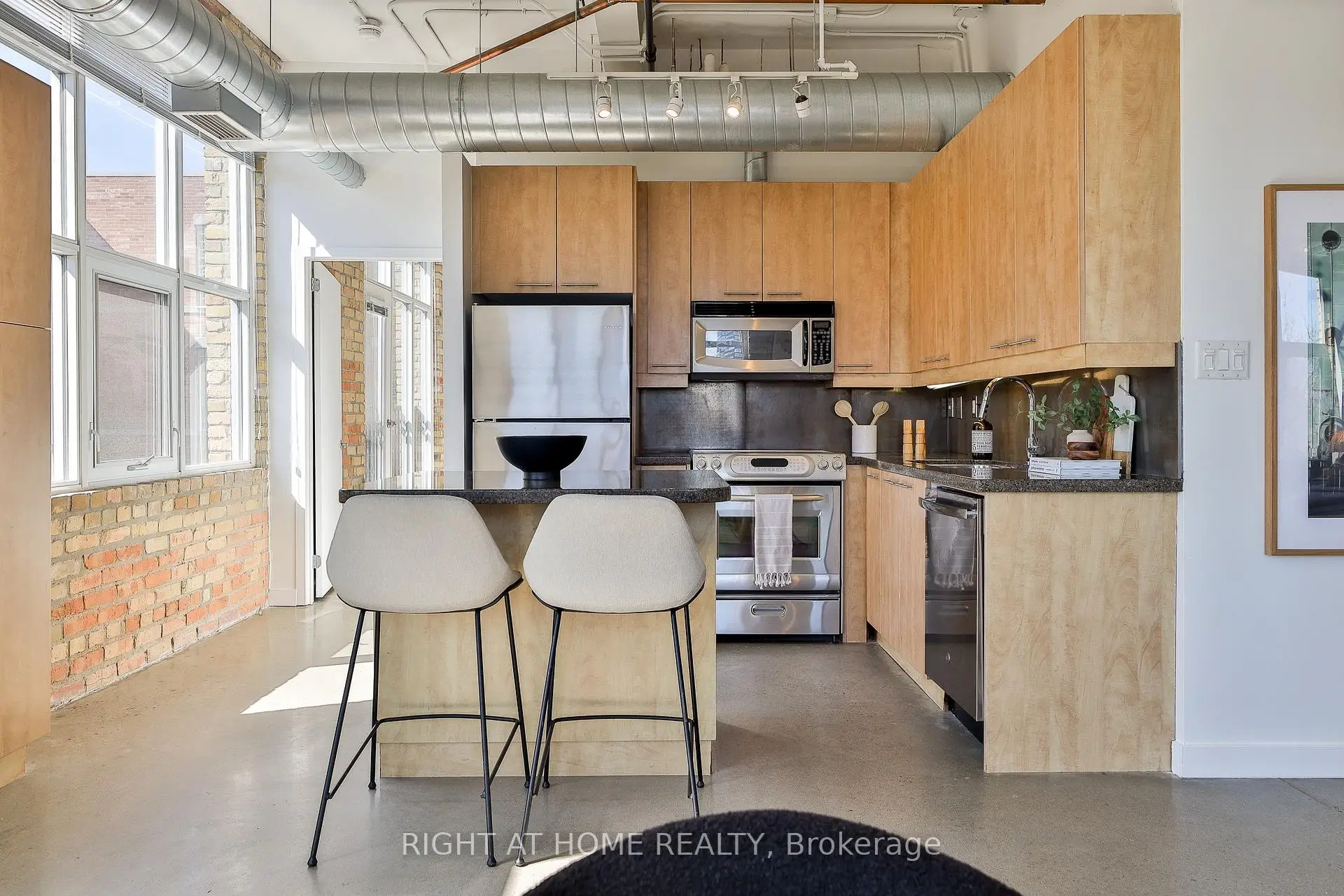 Authentic hard loft living at the iconic Chocolate Company Lofts, directly across from Trinity Bellwoods Park. A rare southwest corner 2-bedroom suite, tucked away from Queen and overlooking a quiet, tree-lined residential pocket - offering the perfect blend of natural light and privacy. Rich in character with exposed brick, original beams, polished concrete floors and soaring ceilings. This thoughtfully designed loft features a functional split 2-bedroom layout, two full bathrooms and a well-appointed kitchen with full-size stainless steel appliances, stone countertops, a large eat-in island and ample storage. The spacious primary bedroom features two walk-in closets and a 4-piece ensuite. Queen West at your doorstep and moments to Ossington, Dundas West, King West, and the city's best restaurants, cafés, and boutiques - with TTC at your doorstep. Parking, storage locker and a double bike rack included. Building features 24hr security/concierge, a nicely outfitted gym and spacious party room.