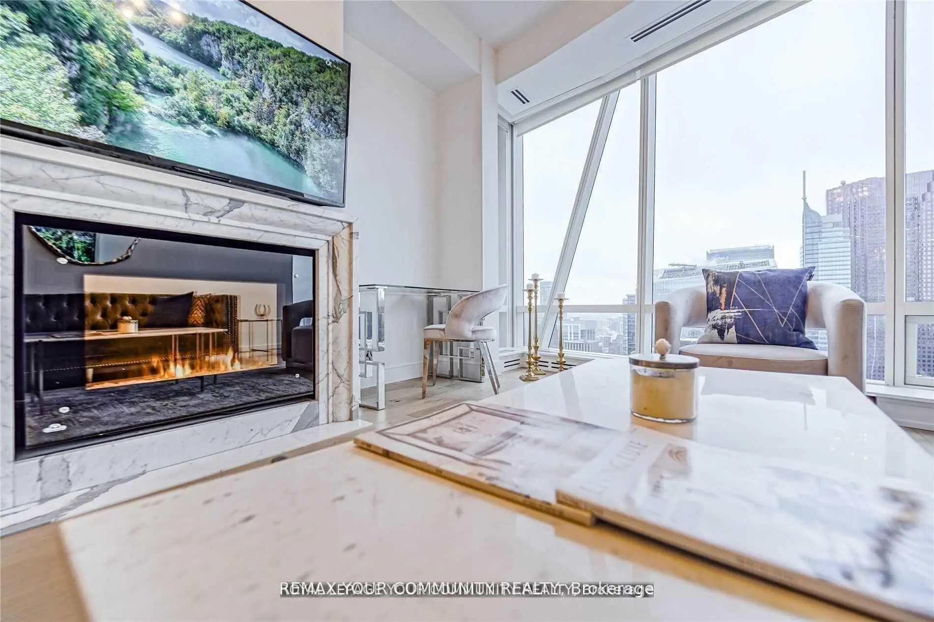 Welcome to Shangri-La Hotel Residences, Private Estate suite(Exquisite 50th Floor & Above),Experience breathtaking Views Of Downtown Toronto's Skyline & the Lake Ontario, 10'Ft.Ceilings and a spacious/open concept layout. This residence has been tastefully renovated with high Quality finishes through out.(wood Flooring, Base boards, Paint, custom Lighting. etc.)The modern Open Concept Kitchen features Granite Tops, Breakfast bar & top of the line "Miele" Appliance. The elegant bathroom is finished with Marble walls and floors .Enjoy the added comfort of Automatic Window Shades and Fireplace. Free Valet Parking Included, Guest Parking, Hotel Room Service/ House Keeping , Use of Hotel Amenities: Spa, Gym, Indoor Pool, Hot Tub, Steam Rm. Near Theaters, Restaurants, Shopping. Spacious Floor Plan. New hallway carpets & wallpapers , electric fireplace, marble bathroom walls & floors. Large storage locker behind the Parking spot. This a great value!