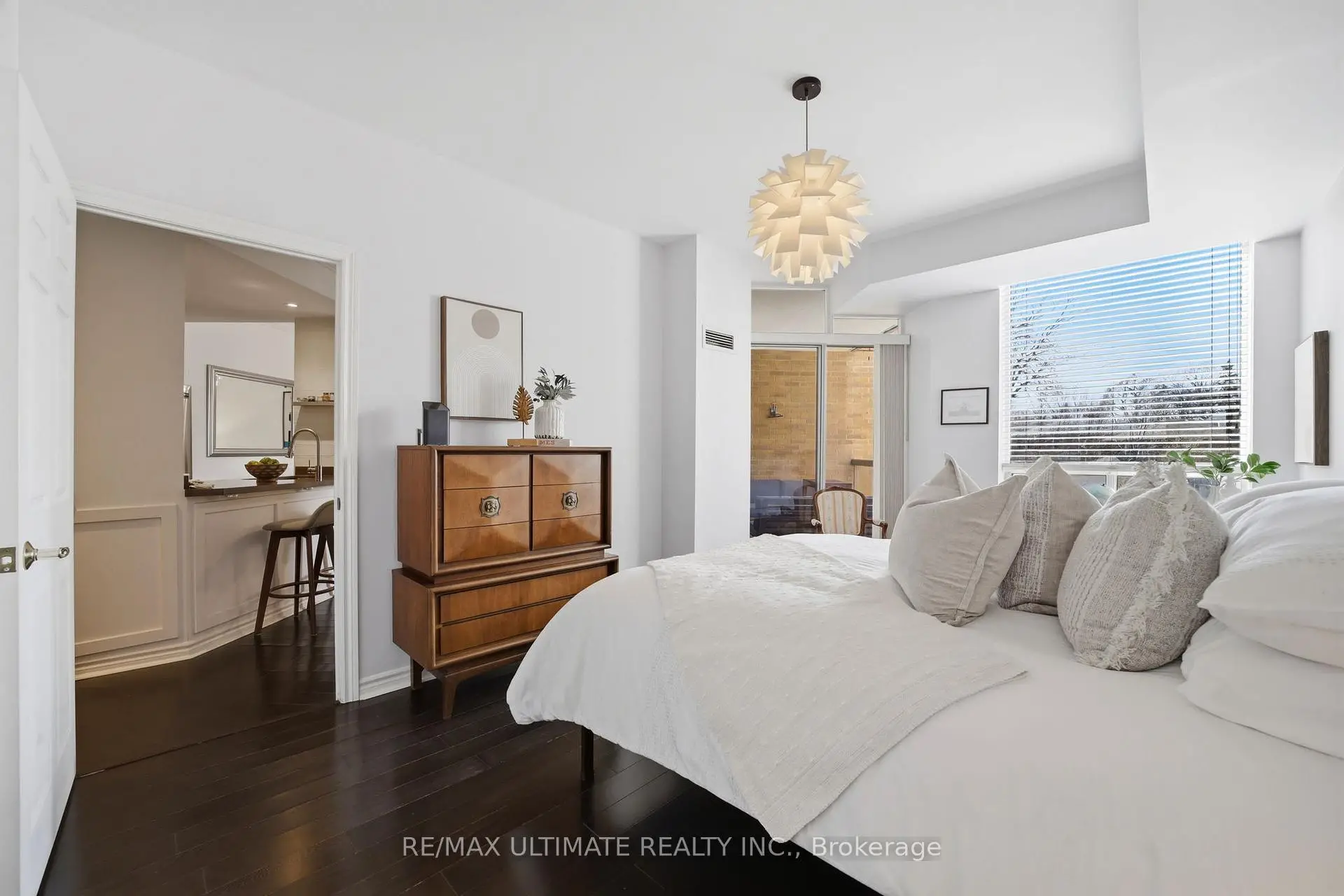 Discover stylish boutique living & urban elegance at The BRAXTON in the heart of Leaside! Welcome to this bright, expansive 1 bedroom, 1 bathroom suite in a highly sought-after intimate building with only 52 suites. This rarely offered unit features a unique open-concept layout from the moment you enter. The main living area offers a seamless flow, ideal for both entertaining and relaxation. A sleek open concept kitchen is complete with upgraded quartz , breakfast bar with wainscotting, slate flooring, potlights and is perfect for everyday living and hosting, Dining area features rich hardwood floors and 9-ft ceilings, creating an inviting and airy space. The generously sized primary bedroom which can easily accommodate a king size bed serves as a serene private retreat amidst the city bustle along with a secondary walkout to terrace, and wall to wall closet with organizers providing ample closet space. A truly desirable feature with the private terrace is the convenient access from both the main living area and the bedroom, enhancing the indoor-outdoor lifestyle, Lights with dimmers create the just the right ambience, Enjoy and relax in the spa-inspired 4-piece bathroom showcasing a relaxing tub. Enjoy seamless connections via the Eglinton subway station and the new Crosstown LRT, making commuting downtown and across the city highly accessible. Just steps to Leaside's Vibrant shops, Restaurants, Whole Foods, Top Rated Schools, Bayview Village and everyday conveniences. Includes underground parking and locker. A perfect opportunity for first-time buyers, downsizers or investors in an unbeatable location! Amenities include gym, party room, visitor parking and an outstanding on-site superintendent from Monday to Friday Bldg during business hours. Excellent maintained building. This suite is sure to check all your boxes!