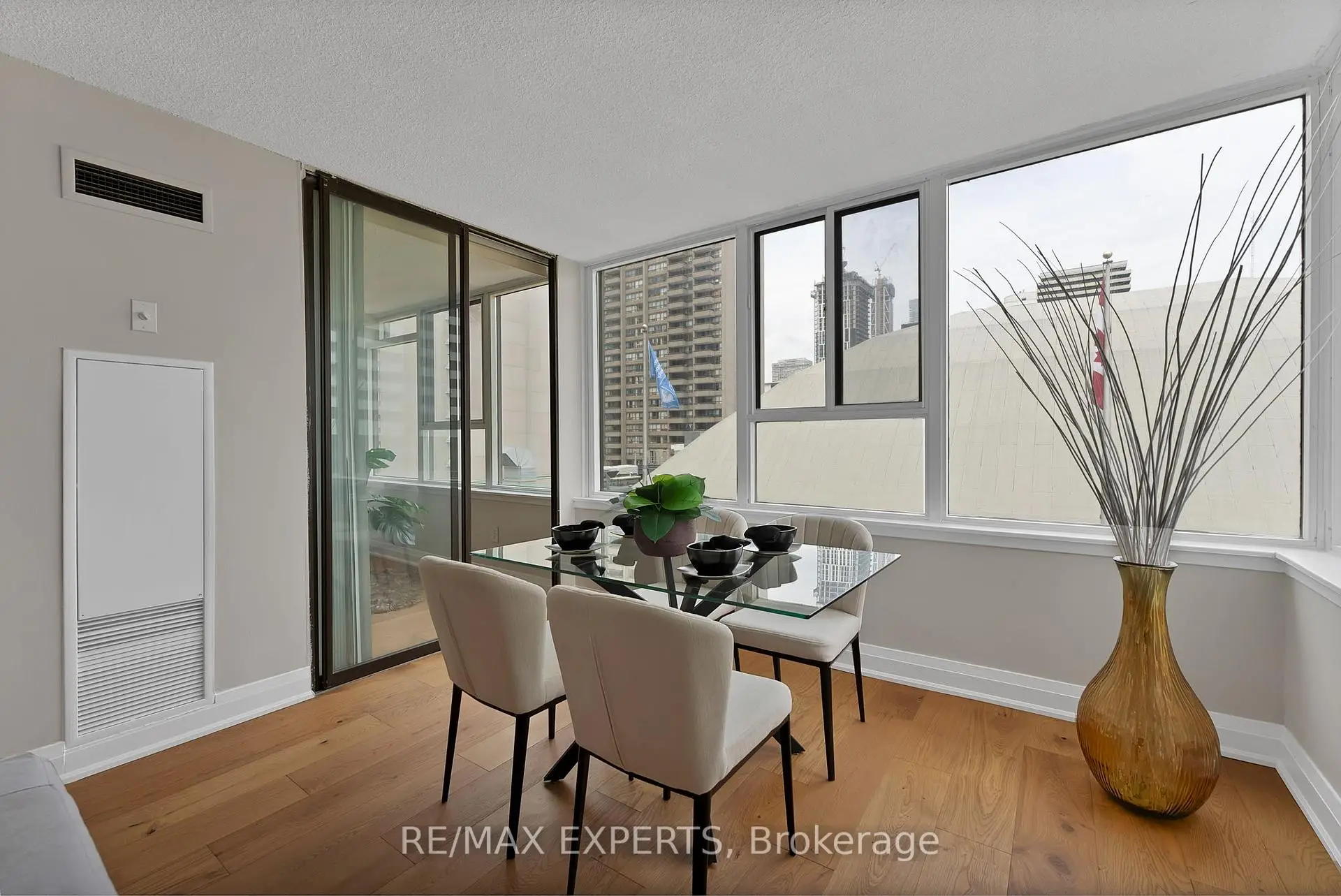 Welcome to Lexington Condominiums! Rarely offered ~1,250 SQ. FT. CORNER/END UNIT in the heart of Yonge & Carlton-an exceptional size that's increasingly hard to find in today's downtown market. This 2-BEDROOM + SOLARIUM SUITE FEATURES A DESIRABLE SPLIT-BEDROOM LAYOUT, offering both privacy and functionality. Beautifully renovated with NEW HARDWOOD FLOORING (2026) and fresh paint, the unit boasts a spacious open-concept living/dining area and a functional eat-in kitchen. Generously sized bedrooms include a primary retreat with a 4-piece ensuite and double closets. The bright solarium, surrounded by windows, provides flexible space for a home office, nursery, or additional lounge area. Complete with a large foyer closet and separate laundry room with added storage.Unbeatable location-steps to College Station, street cars, shops, restaurants, and Loblaws at Maple Leaf Gardens. Minutes to Eaton Centre, TMU, U of T, hospitals, and more. Full-service building with premium amenities: 24/7 concierge, indoor pool, gym, running track, squash courts, party room, library, sundeck with BBQs, and visitor parking. ALL UTILITIES INCLUDED in maintenance fees. Well-managed building with a strong sense of community-ideal for buyers seeking space, layout, and convenience in downtown Toronto.