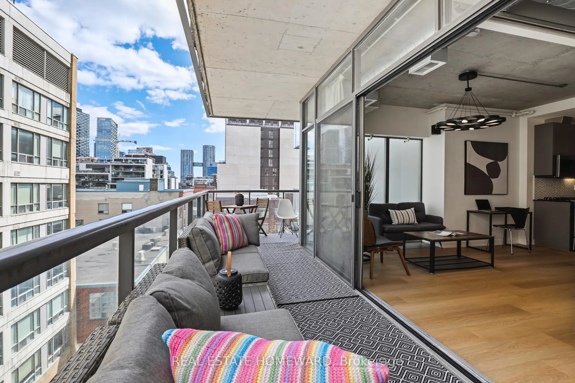 This cool urban Boutique building awaits you in the Queen/King W neighbourhood. Endless shopping, dining, nightlife, parks, transit & connected bike lanes. Walking to the Lake or Art Galleries & Culture.The list is endless. How about relaxing @ Home on your approx. 168 sq. ft. balcony w/ massive sliding doors seemingly blending your interior & exterior living space. Parking & Locker ? It's all her for YOU .