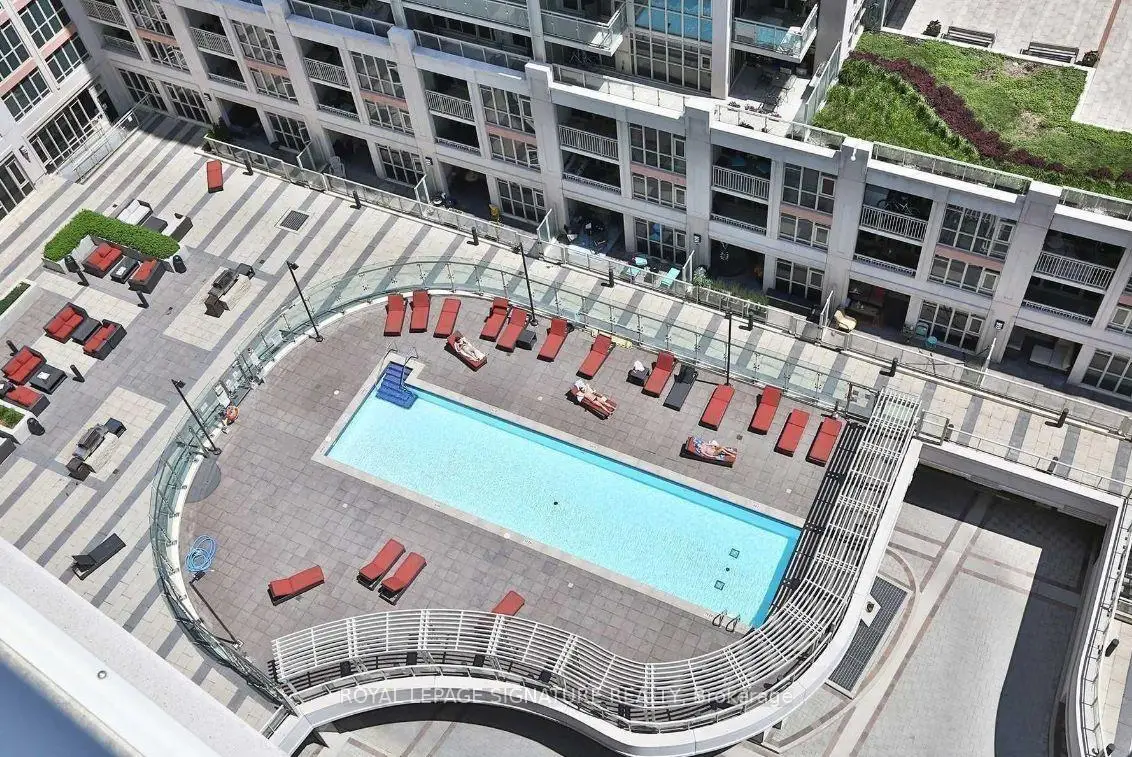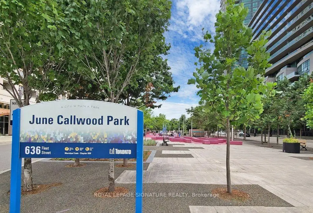 Gorgeous bright larger unit in the Heart of Fort York! Includes one parking and one locker. The layout is very functional and desirable, with a spacious bedroom and fully enclosed den, which provides versatility as a second bedroom, home office or guest space. The space has a very welcoming appeal for enjoyment and the private balcony is sure to provide many opportunities for relaxation. The contemporary kitchen features granite countertops, stainless stee appliances, and ample cabinetry. This is a very well managed building with fantastic hotel-style amenities, including a 24 hours concierge, fully equipped fitness centre, outdoor pool, BBQ terrace, party and games rooms, guest suites, visitor parking, and five high-speed elevators ensuring ease of access throughout. This vibrant waterfront community is highly sought after and very close to Coronation Park, The Bentway, Martin Goodman Trail and of course the lakefront, as well within walking distance to Rogers Center, Union Station, HTO Beach,Habourfront Centre, Billy Bishop Island Airport, Queens Quay, Loblaws, Farm Boy and restaurants.