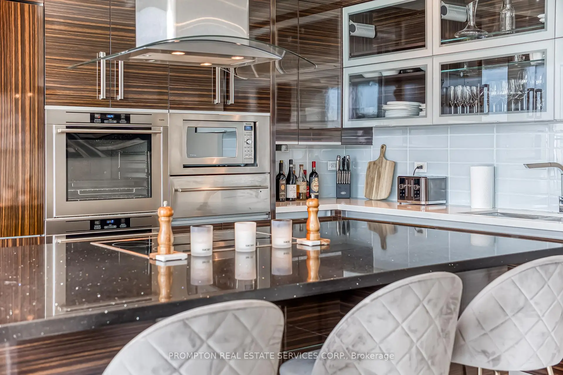 Absolutely Stunning Custom 2-Storey Penthouse in the Heart of Downtown Toronto! This sun-filled 3.bedroom, 4-bathroom residence offers luxury living just steps from the Eaton Centre, top restaurants, theatres, shopping, and the subway. Soaring 10-ft ceilings, floor-to ceiling windows, and 8-ft solid doors throughout. Modern floating staircase with glass railing, sleek custom lighting, and two spa-inspired ensuites. The Italian-designed kitchen features granite countertops, a large island, and solid cabinetry.