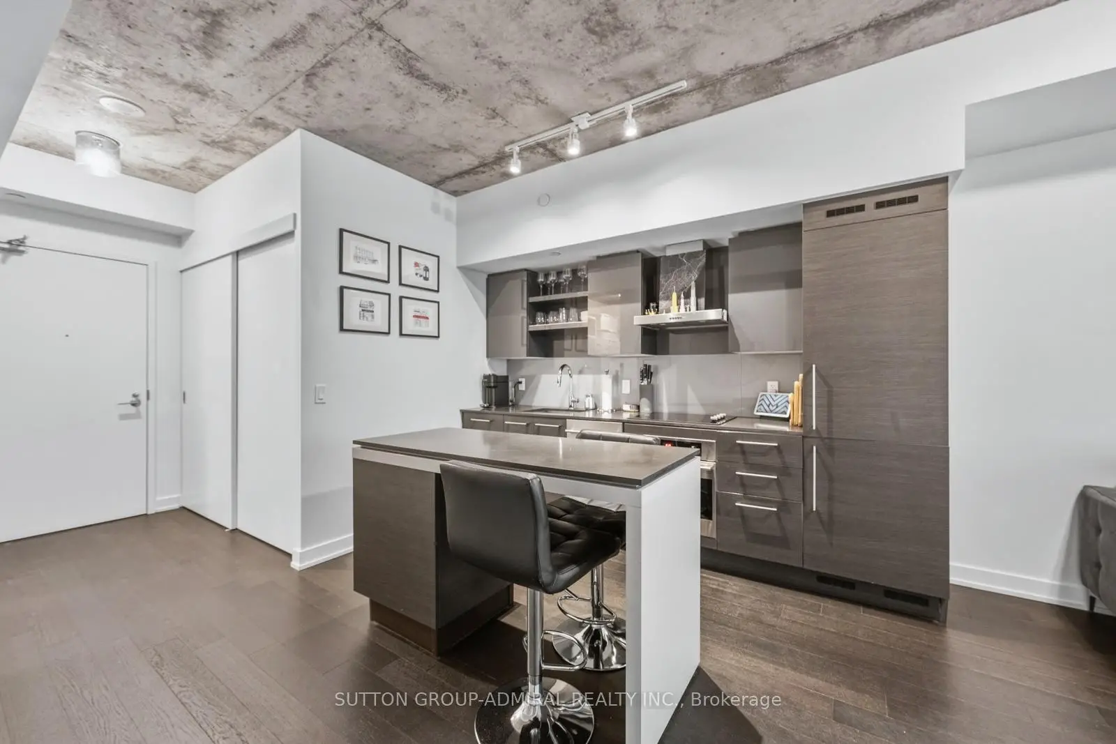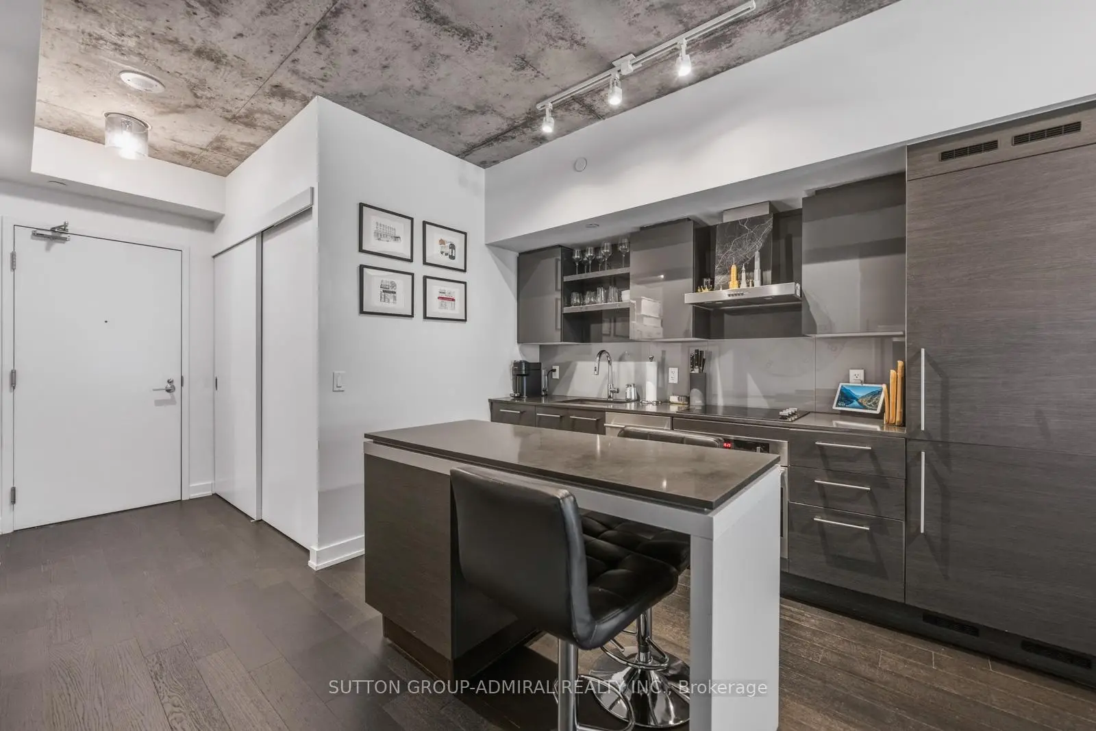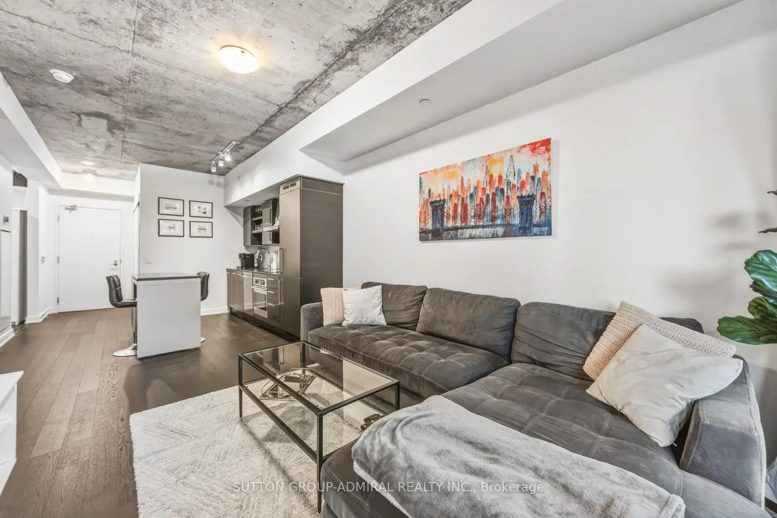 Experience elevated urban living in this stunning lower penthouse suite at 1030 King Street West, Unit 921, in the sought-after DNA3 building, ideally located in Toronto's vibrant Niagara community. This beautifully maintained 1+den condo offers approximately 609 sq. ft. of thoughtfully designed, carpet-free living space with a bright open-concept layout, featuring a modern kitchen with centre island, built-in appliances, and seamless flow into the living area with walk-out to a private balcony showcasing clear west-facing city skyline views. The spacious primary bedroom includes a walk-in closet and large window, while the separate den provides flexibility for a home office or guest space, it's built-in closets provide extra storage for convenience. Residents enjoy premium amenities including concierge, fitness centre, party/meeting room, media room, and a rooftop deck with BBQs, while maintenance fees conveniently cover heat, water, A/C, and building insurance . Perfectly positioned with effortless access to TTC streetcars and bus routes, this location is surrounded by top-rated schools and daycares such as Givins/Shaw Public School, Alexander Muir/Gladstone Public School, and Craig Roland Lee, making it ideal for young professionals and families alike. Enjoy the outdoors with nearby green spaces including Trinity Bellwoods Park, Stanley Park, Coronation Park, and Fort York Garrison Common. Just steps away, the lively Exhibition Place district offers year-round attractions including BMO Field, Enercare Centre, Coca-Cola Coliseum, and Ontario Place, along with scenic views of Lake Ontario. This is a rare opportunity to own a stylish penthouse-level suite in one of downtown Toronto's most dynamic and connected neighbourhoods.
