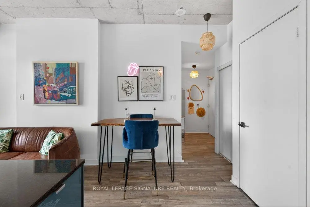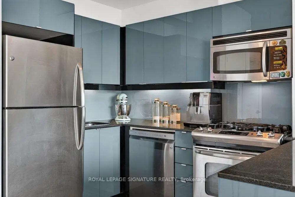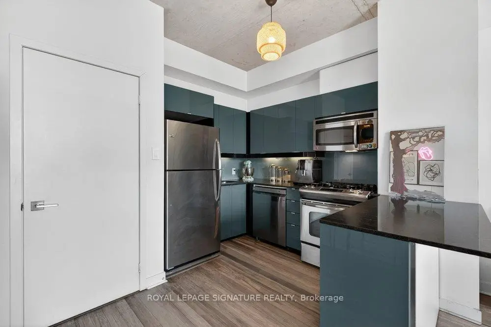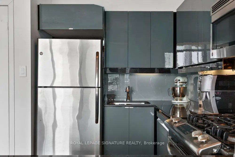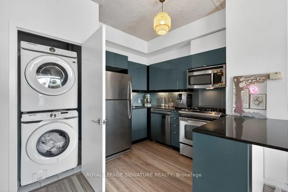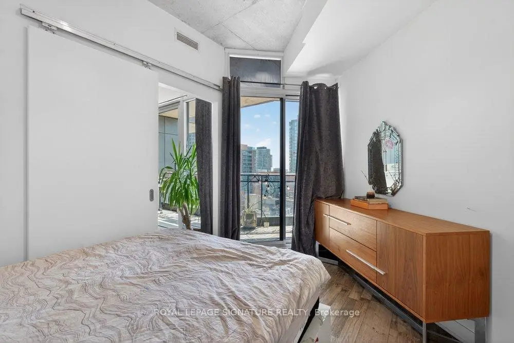 Welcome to Glasshouse Lofts, an exceptional loft residence in the heart of downtown Toronto, perfectly positioned at Queen & Jarvis in the vibrant Church-Yonge Corridor, where the charm of the Garden District meets the historic character of the St. Lawrence Market neighbourhood, all just moments from the Financial District. Soaring 9'3" exposed ceilings and dramatic floor-to-ceiling windows set the tone, flooding the space with natural light while framing breathtaking, unobstructed views of the French Quarter and the city skyline, creating an old-world European charm. The desirable wide layout creates a sense of openness rarely found in downtown condos, offering a highly functional layout for everyday living and effortless entertaining.The thoughtfully renovated kitchen is a true standout, featuring modern finishes and a coveted gas stove, a rare luxury in high-rise living, making it a space where cooking becomes a genuine pleasure. Just beyond, step out to your private balcony, complete with a natural gas BBQ hookup. Generous in size, it feels like a true extension of the living space, perfect for hosting dinner gatherings, cocktail evenings, or enjoying quiet al fresco moments with a stunning urban backdrop. Beautiful laminate flooring flows seamlessly throughout, adding warmth and continuity to the space. The generously sized bedroom provides a peaceful retreat, featuring a double closet and a private walkout to the balcony, where morning coffee comes paired with a view worth waking up for. Step outside and immerse yourself in the pulse of the city. Surrounded by Toronto's most sought-after destinations, from St. Lawrence Market and St. James Park to the Eaton Centre, everything is just steps away. Transit is exceptionally convenient, with streetcars at your doorstep and a short walk to Queen Subway Station. This isn't just a home, it's a lifestyle. A refined urban escape with a distinctly European feel tucked into one of Toronto's most dynamic neighbourhoods.