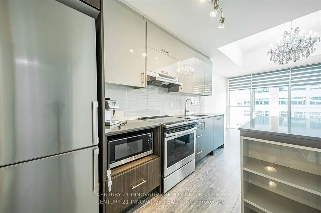 Stunning and luxurious suite at the renowned Vivo Condos in the heart of North York! This bright and spacious 2-bedroom, 2 full bathroom unit features a desirable south exposure, filling the home with abundant natural sunlight and offering breathtaking balcony views. The open-concept layout is complemented by upgraded laminate flooring throughout and large windows that enhance the airy feel of the space. The modern European-style kitchen is equipped with top-of-the-line built-in stainless steel appliances, updated quartz countertops, and a centre island. Both bedrooms are generously sized with ample closet space, while the primary bedroom includes a 4-piece ensuite. A versatile bonus nook provides the ideal space for a home office or play area. Enjoy the convenience of ensuite laundry and an unbeatable location just steps to Fairview Mall, Don Mills Subway Station, library, public transit, and more. Don't miss the opportunity to call this exceptional unit your home. EXTRAS: Built-in fridge, stove, oven, dishwasher, microwave, washer, and dryer.