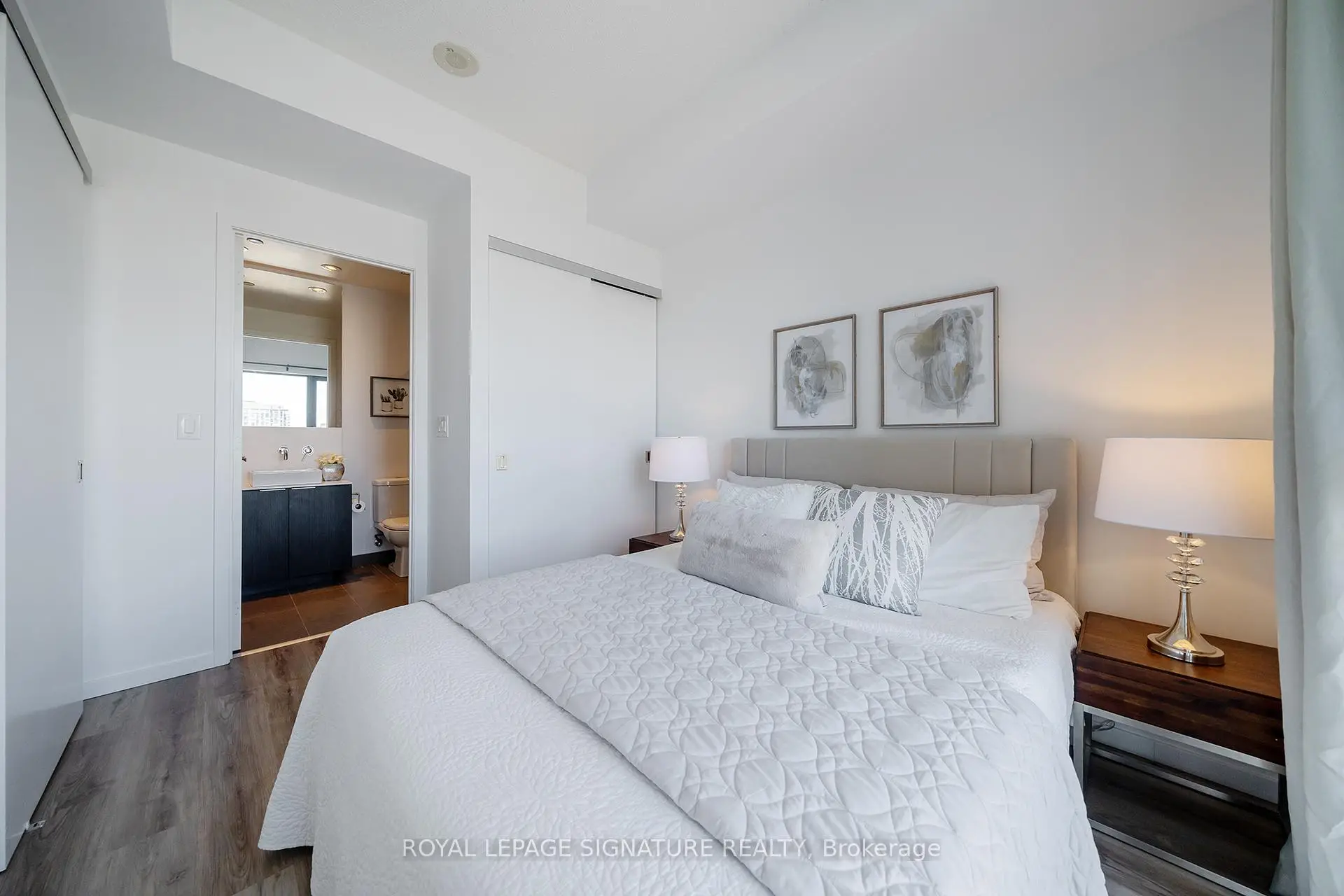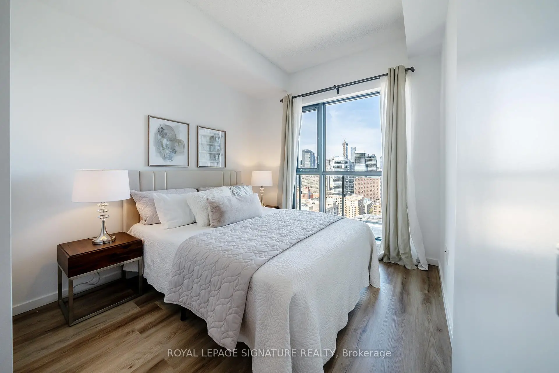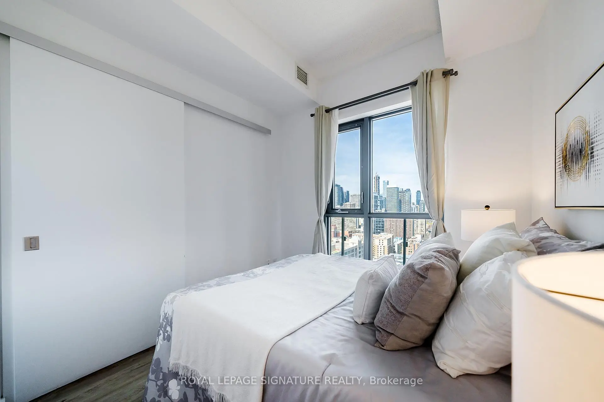 Welcome to this bright and thoughtfully designed 2-bedroom, 2-bathroom suite features a highly desirable split-bedroom layout with excellent use of space, perfect for comfortable urban living. Vinyl flooring runs throughout, while the open-concept living, dining, and kitchen area offers plenty of room for both everyday living and entertaining, with walk-out access to the balcony. Both bedrooms showcase floor-to-ceiling windows that bring in abundant natural light. The generously sized primary bedroom includes a private ensuite bathroom for added convenience and comfort. Enjoy clear north-facing views, modern finishes, and contemporary appliances throughout. Situated in one of downtown Toronto's most convenient locations, just steps to Toronto Metropolitan University, CF Toronto Eaton Centre, Yonge-Dundas Square, TTC transit, grocery stores, restaurants, hospitals, and everyday essentials. Walkable to University of Toronto, with easy access to the Financial District, waterfront, and major highways. Residents enjoy 24-hour security, and the unbeatable central location offers strong long-term value for tenants seeking lifestyle and convenience.
