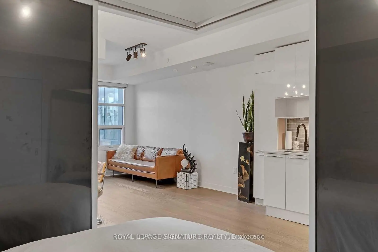 Experience the best of King West living at the highly coveted Kingly Condos at King & Portland. This exceptional 1-bedroom suite offers incredible value with thoughtful upgrades and a spacious open-concept layout designed for modern city living.The suite features expansive New York-style warehouse windows, 9-ft smooth ceilings, and wide plank flooring throughout, creating a bright and stylish atmosphere. The custom Scavolini kitchen is a standout, complete with full-sized integrated/panelled stainless steel appliances, natural stone counters, subway tile backsplash, and an additional custom pantry for extra storage.The lengthy open-concept living and dining area is perfect for entertaining, enhanced by floor-to-ceiling windows that bring in abundant natural light and offer versatile layout options. The primary bedroom is smartly enclosed with frosted glass sliding doors and features a double closet. Relax in the spa-inspired 4-piece bathroom finished with modern tile, a stone vanity, mirrored medicine cabinet, extra shelving, and a luxury 2-in-1 shower/tub. Step out onto your private balcony to enjoy sensational sunrise views, and take advantage of the included locker for added convenience.Residents enjoy state-of-the-art amenities, including a fitness centre and gym, rooftop deck, party and meeting rooms, and 24-hour concierge. Located just steps from Toronto's hottest restaurants, cafes, nightlife, and shopping, this is King West living at its finest. Live like royalty at The Kingly.