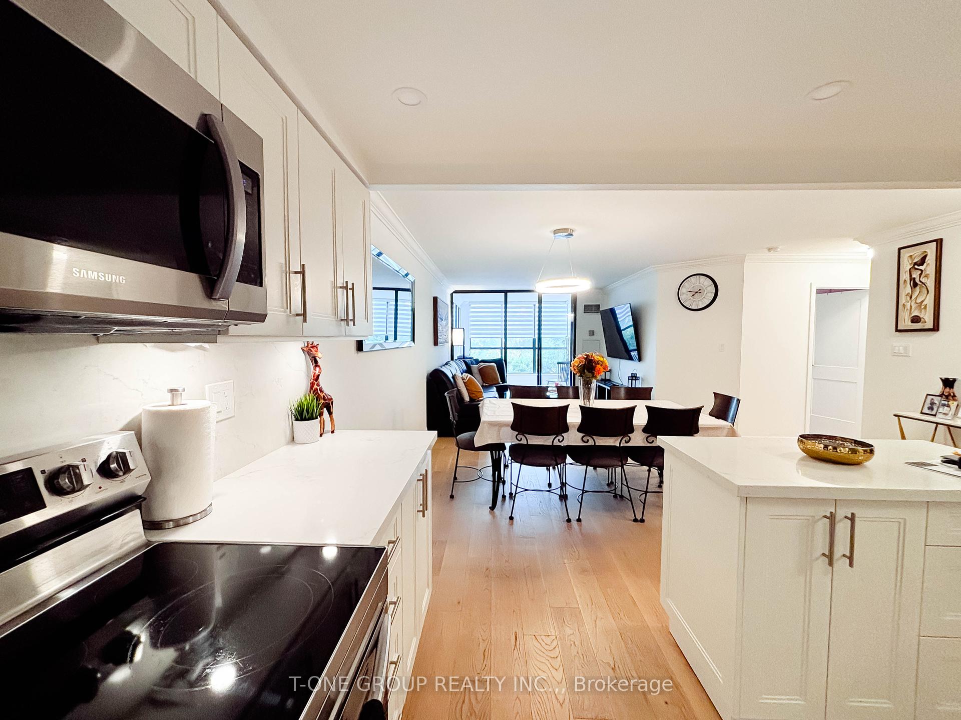 Beautiful Fully renovated 1090 Sq Ft 2+1 Bedroom Large Walk in master Closet , one parking Spot + 1 Exclusive Locker Move in Ready ! Top of the line Engineered Hardwood floors Through Out Newer doors, Handles, High End Blinds ,Kitchen with Quartz Counter/Backsplash & Under Mount Sink, newer doors Too many Upgrade to Mention, easy Access to 401 nearby school , TTC and close to all other amenities.