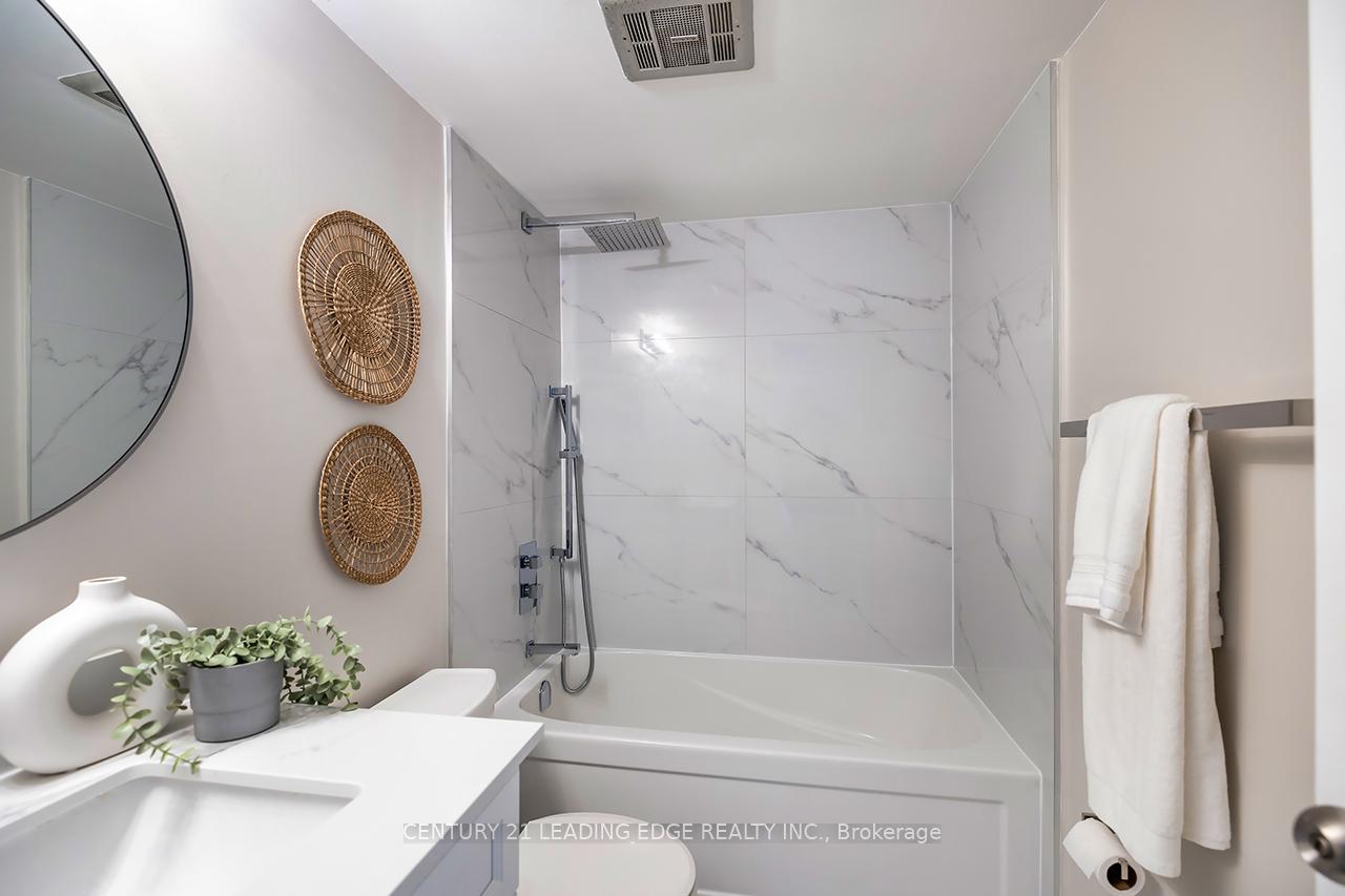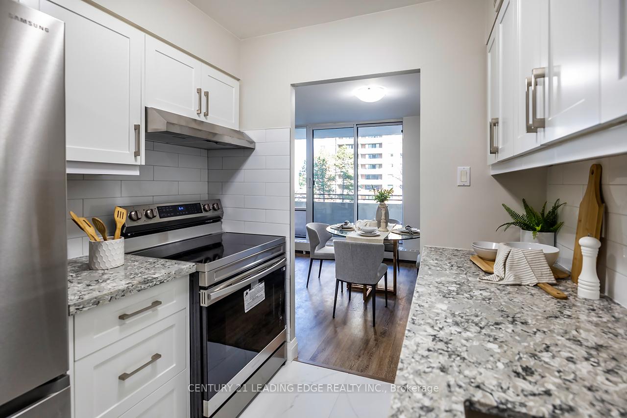 Welcome to 101 Prudential Dr The Birches. This fully renovated 1-bedroom, 1-bath suite offers a rare opportunity to own a condo that has been redone from top to bottom with absolutely everything brand new and never lived in since the renovation. Perfect for first-time buyers, investors, or anyone seeking a stylish, move-in-ready home in a convenient Toronto location. Step into a bright, open-concept layout with north exposure and large windows filling the space with natural light. The entire unit has been upgraded with modern finishes, premium flooring, smooth ceilings, and energy-efficient LED lighting. The sleek new kitchen showcases quartz countertops, full-height cabinetry, tile backsplash, and a complete set of brand-new stainless-steel appliances fridge, stove, dishwasher, and range hood all never used. The spacious living and dining area offers an easy flow for entertaining or relaxing, while the bedroom provides a quiet retreat with ample closet space and room for a full bedroom set. The modern 4-piece bathroom features new porcelain tile, a floating vanity, designer fixtures, and a deep soaker tub/shower combo. Every detail has been updated from electrical and plumbing to doors, trim, and paint making this truly a turnkey home. Also includes one parking space and a locker for added convenience. Enjoy the stability of a well-managed building in an established community, just minutes to Kennedy Subway Station, Lawrence East RT, shopping, schools, and Hwy 401. Maintenance fees include heat, hydro, water, building insurance, and common elements providing unbeatable value and peace of mind. Experience a brand-new condo inside a proven address completely renovated, never occupied, and ready for its new owner.