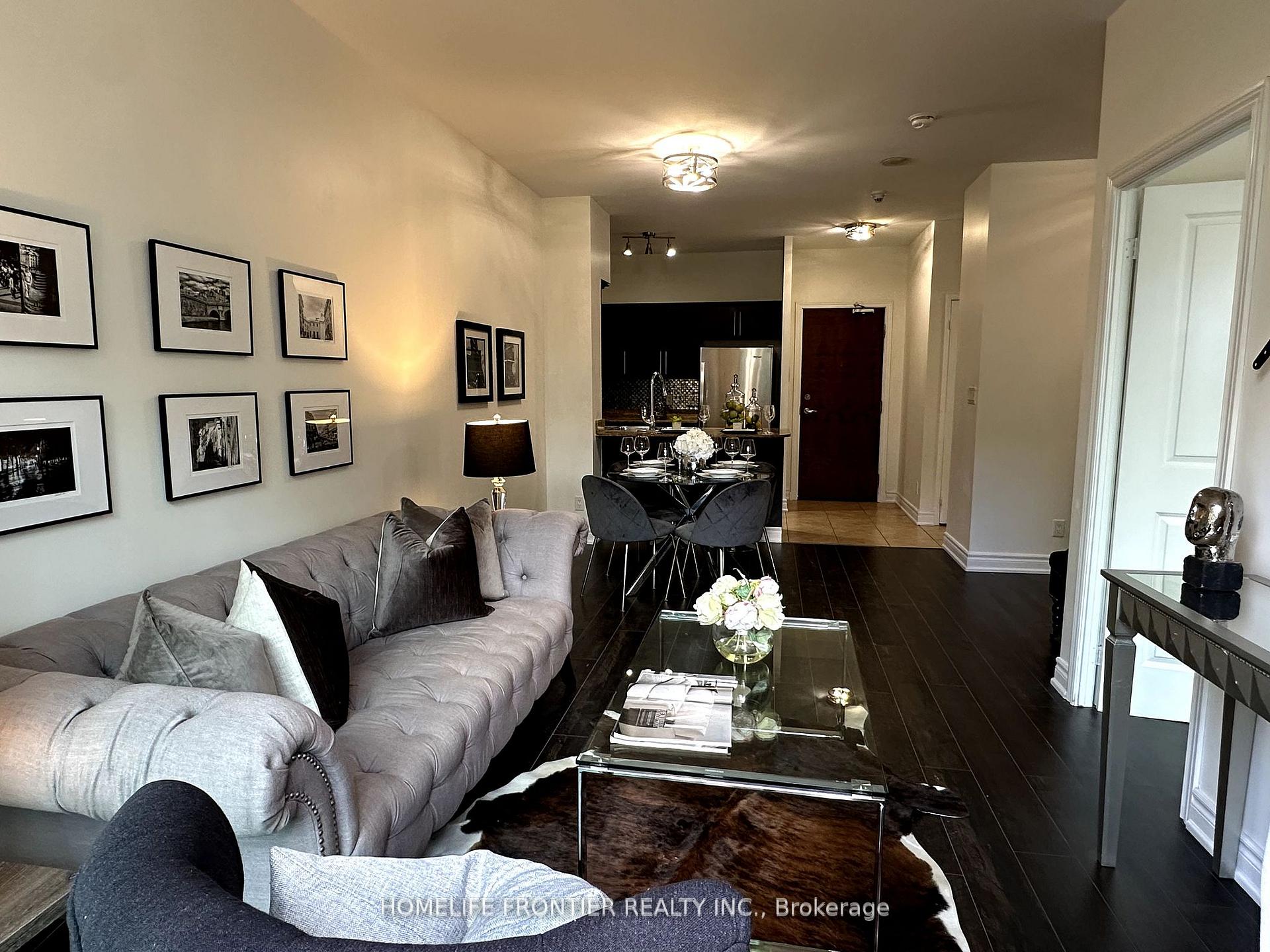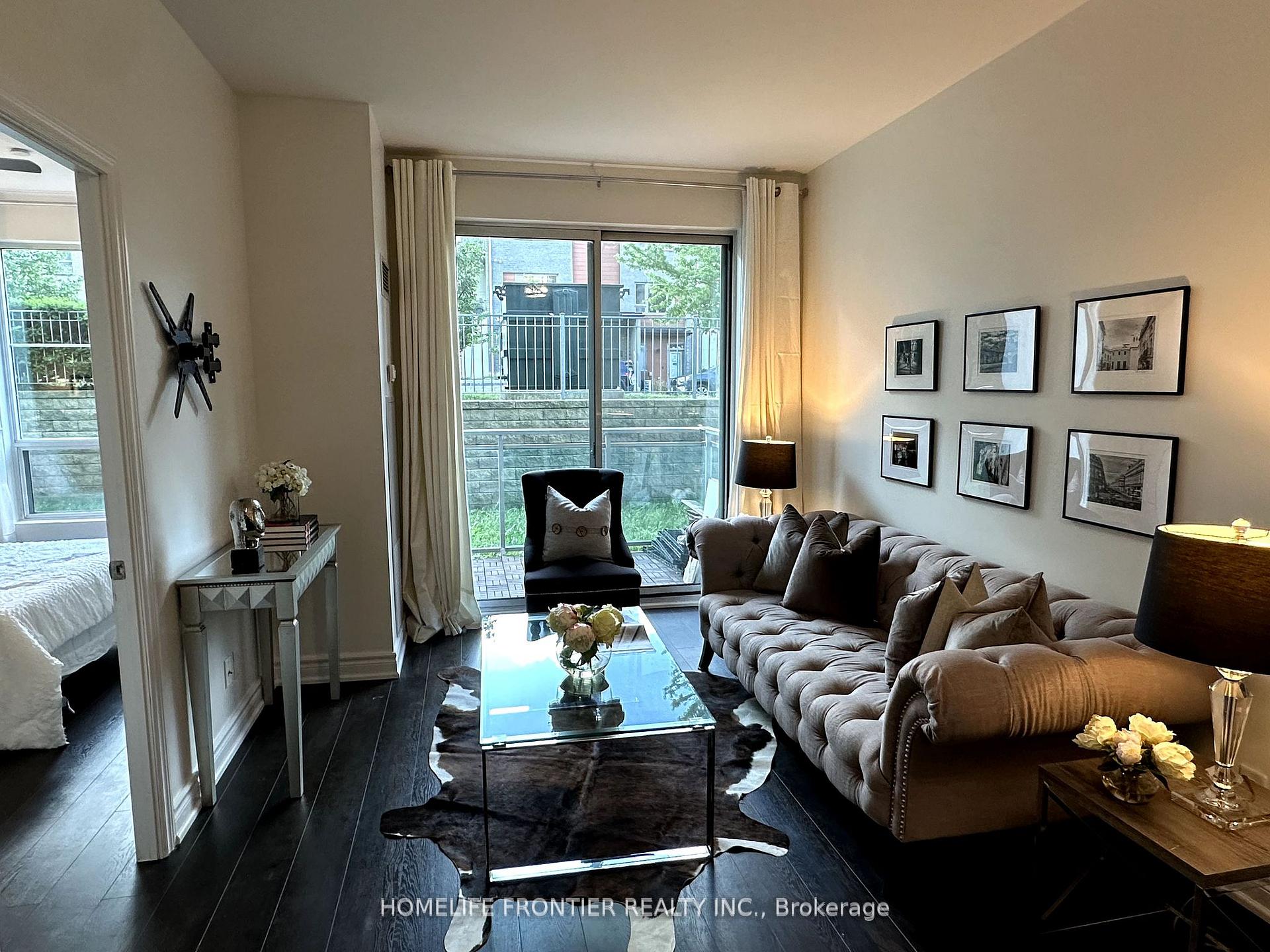 Stunning 728 SF Ground Floor Unit Fully Renovated with 52 Sq Ft Balcony Overlooking Green Space! Feels just like living in a house with a peaceful yard view! This beautifully Renovated unit features 9 feet ceilings, brand new laminate flooring throughout, a modern kitchen with granite countertops, stainless steel appliances, Ceramic backsplash and breakfast bar, brand new bathroom vanity and fresh paint throughout. Located in a quiet residential pocket, yet just steps to TTC, minutes to Hwy 401 and close to shopping, parks and restaurants all within walking distance.