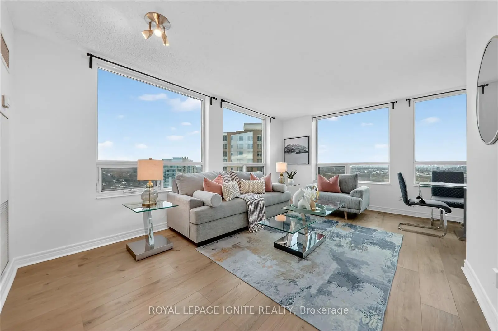 Rare Find! Tridel-built, upscale corner unit at 360 at the City Centre, offering an exceptionally well-maintained and sun-filled living space with panoramic city views, including the CN Tower, beautiful sunsets, morning sunrises, and a distant view of Lake Ontario. Freshly painted with modern laminate flooring, granite kitchen countertops, a spacious primary bedroom with walk-in closet and ensuite, and a private balcony with sweeping southwest views, this split-bedroom layout provides excellent privacy. Located steps from Scarborough Town Centre, restaurants, grocery stores, parks, library, movie theatre, banks, TTC, LRT, and with quick access to Highway 401 and GO Transit, this landmark tower is professionally managed by Del Property Management. Residents enjoy resort-style amenities such as an indoor pool, hot tub, sauna, large gym, billiards room, games room, meeting and party rooms, rooftop terrace, BBQ area, 24-hour concierge, and visitor parking. Two parking spaces, a locker, and included heating and water complete this exceptional offering.