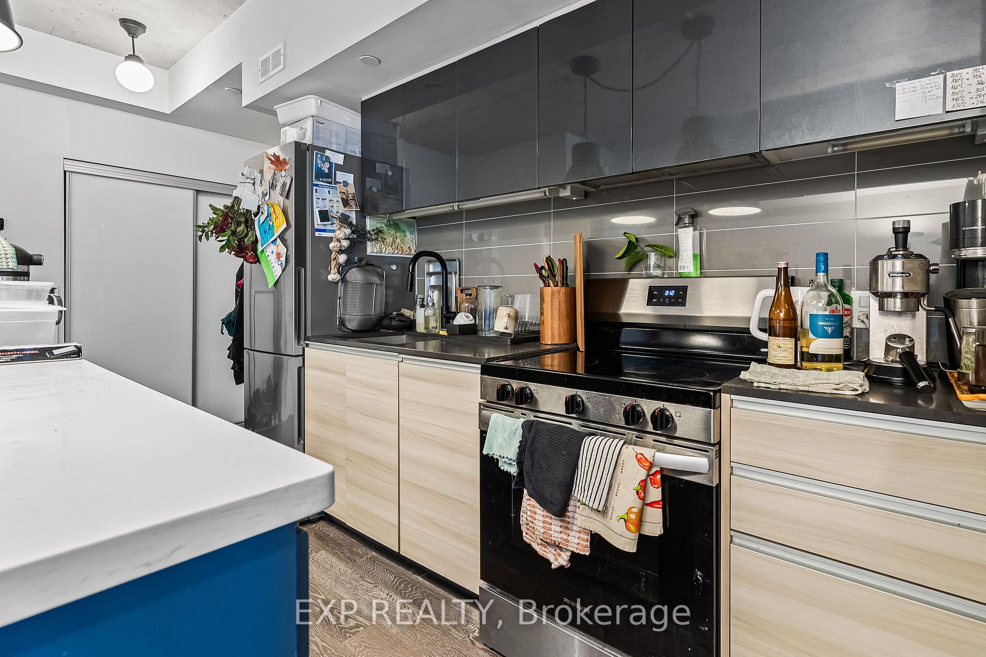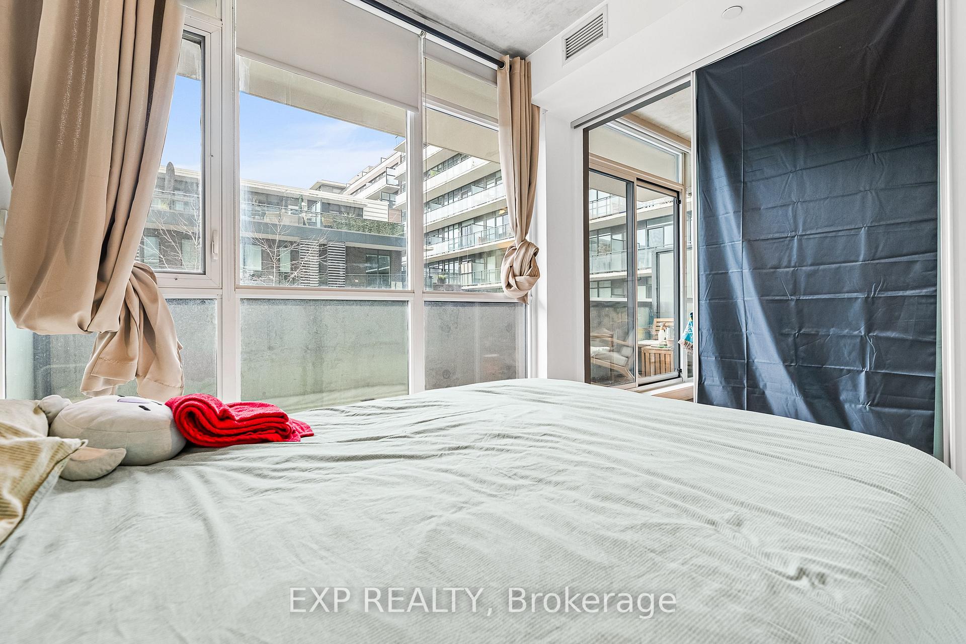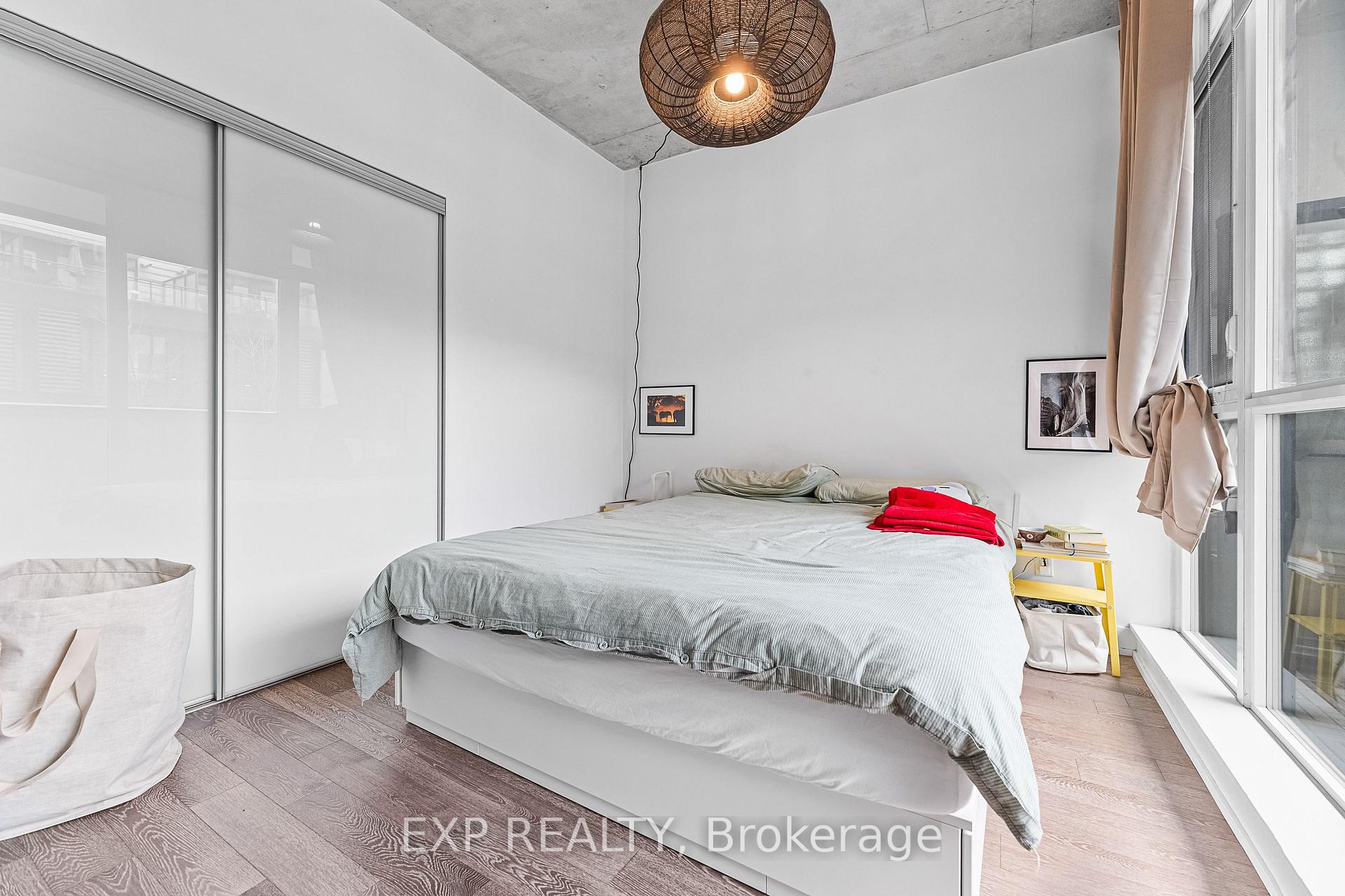 A rare find in Leslieville with parking included. This polished 1+den at The Carlaw offers bright, modern living with engineered hardwood, floor-to-ceiling windows, 9-ft brushed-concrete ceilings, sleek cabinetry-matched appliances, and a large balcony with a gas line for BBQs. The bedroom features its own window and a calm, private view, and the overall layout feels open and spacious. Steps to the best cafés, restaurants, parks, and daily conveniences in one of the east end's most loved neighbourhoods-simply move in and enjoy.