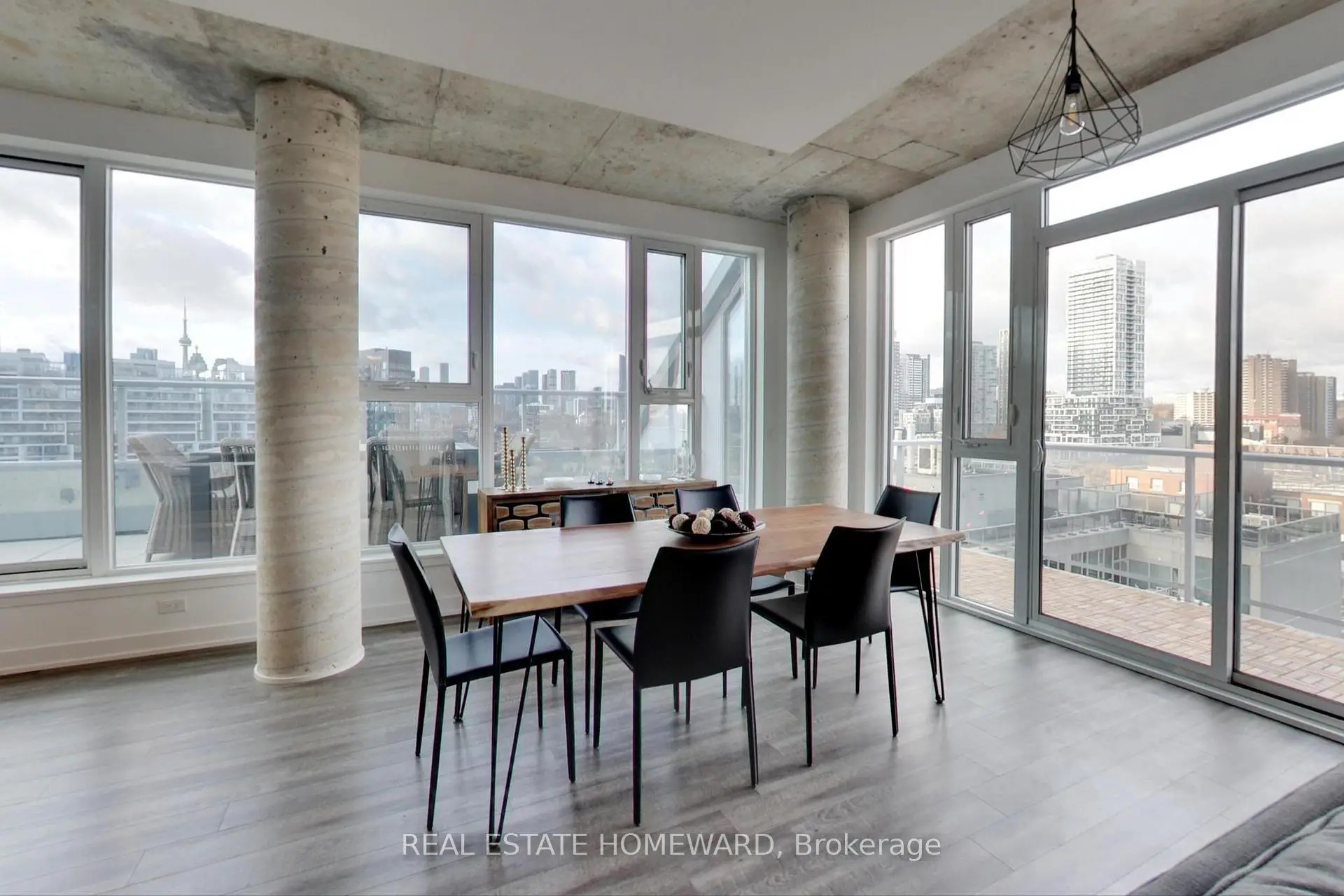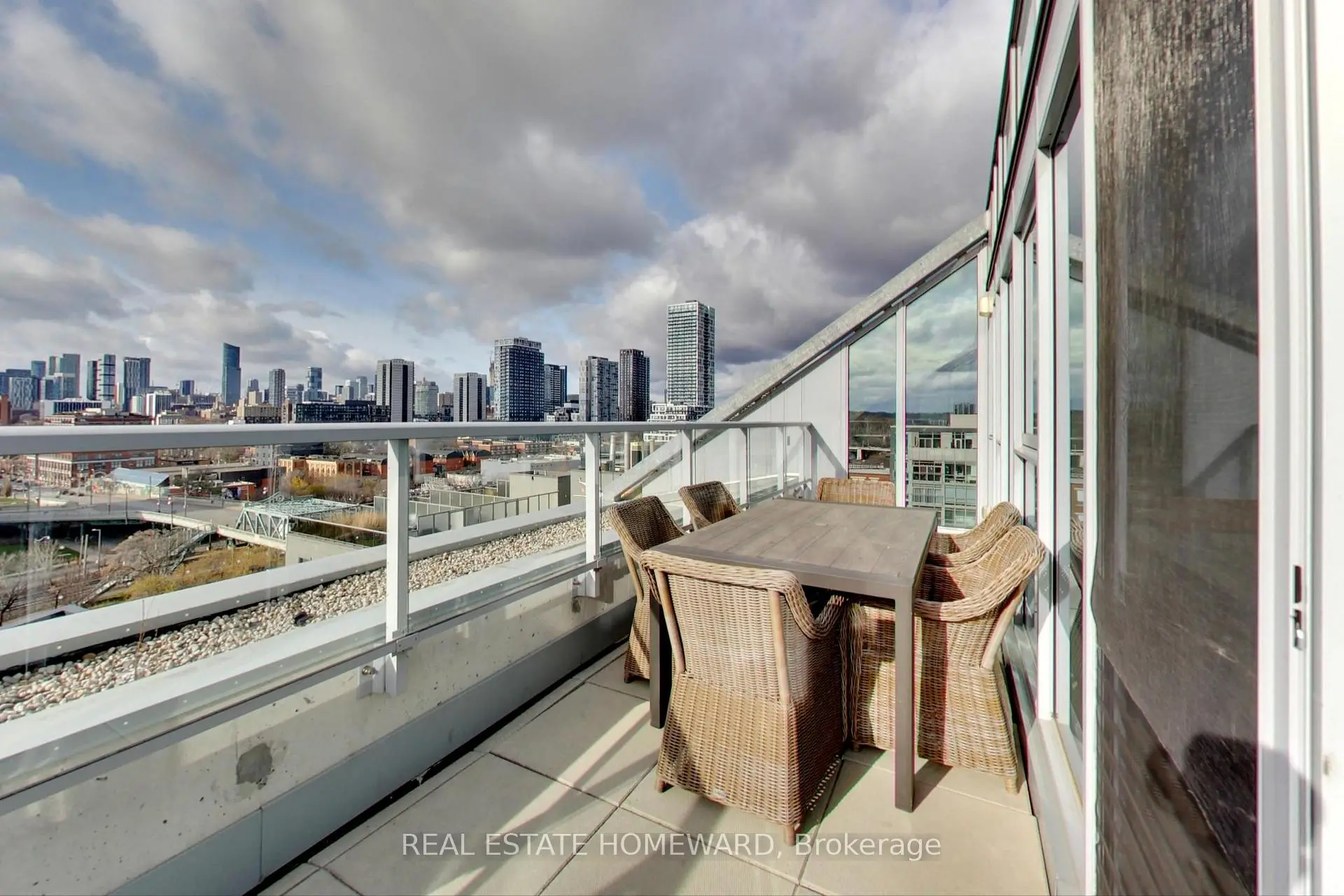 Sought After Riverside Square Location. This Loft Style and rarely offered 3-Bedroom, 2-Bathroom Corner Unit offers High Ceilings, Floor to Ceiling Windows, an Unobstructed view (North-West) with an expansive Private Terrace and Separate large Balcony overlooking Greenbelt/Park/City View to West. Great for outdoor living and entertainment. Tucked away on the 11th Floor. Quiet and Private. Upgrades Include: Laminate Flooring Throughout, Electric Stove + Stainless Steel Vent, Corian Counters and Backsplash, Cabinets in Kitchen and Bathrooms, Runnen Wood Outdoor Decking on Large Balcony (over 300 Square Feet of Outdoor Living Space). Electric Light Fixtures in Kitchen, Living, Primary, 2nd and 3rd Bedrooms. Rarely Offered and now Available. Balcony offers unobstructed views of City/Greenland/Park/Queen Street. Terrace offers unobstructed views of City/Lake to the South/Parks and Queen Street to the North. One of the largest layouts in the building. Includes 2 Parking Spaces and a Locker. Incredible Amenities.