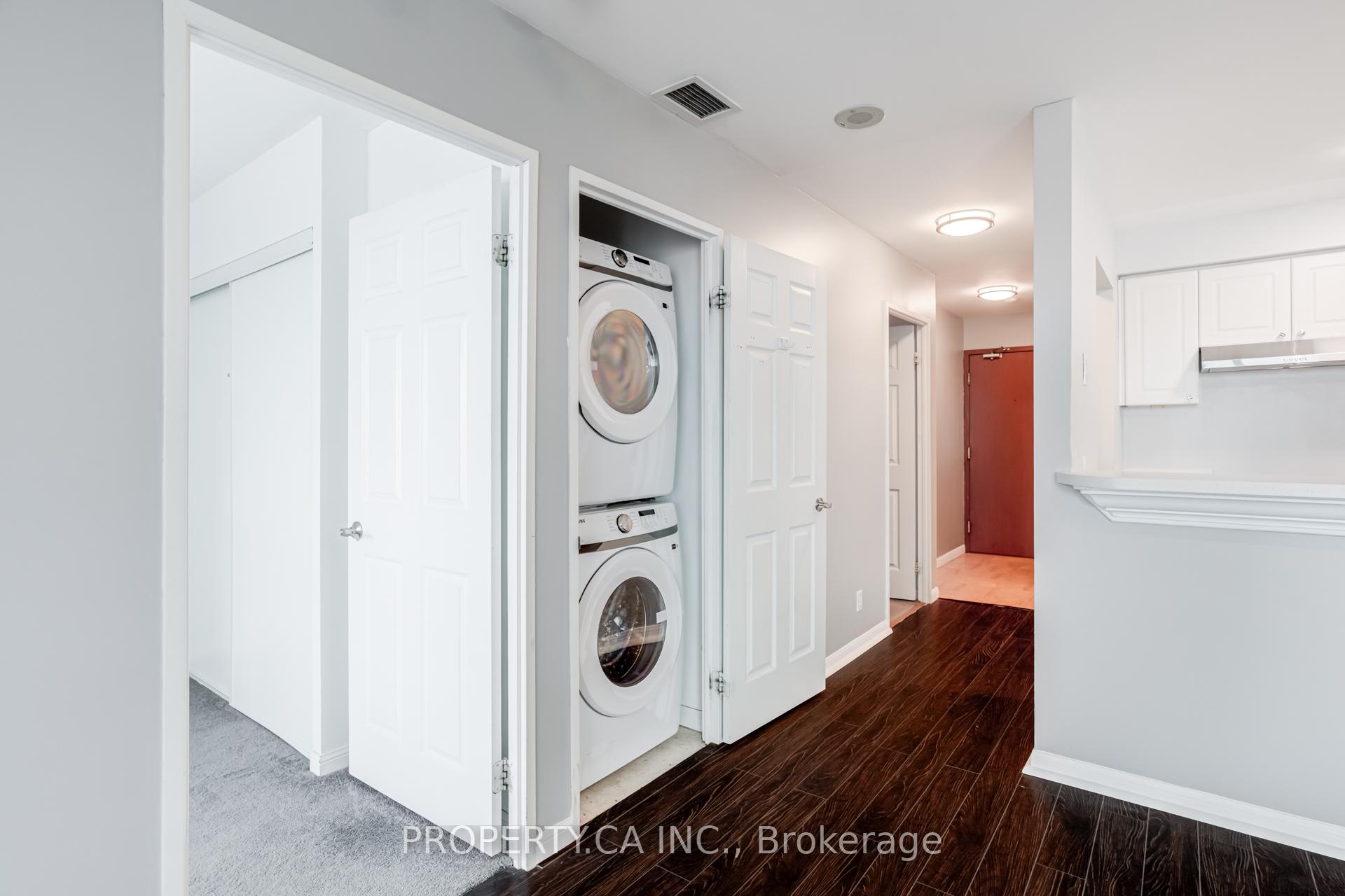 Experience elevated condo living in this beautifully updated 1+1 bedroom suite featuring clear, unobstructed views and a bright open-concept layout. The renovated kitchen offers new stainless steel appliances, quartz countertops, and modern plumbing upgrades, while the den has been converted into a fully enclosed bedroom for added versatility. Enjoy the convenience of ensuite laundry with new washer and dryer, plus a locker and one tandem parking - a rare luxury. Ideally located steps from shopping, dining, and quick access to Hwy 401. Residents enjoy exceptional amenities including an indoor pool, sauna, guest suites, visitor parking, and a court. Perfect for first-time buyers, downsizers, or investors-this move-in-ready unit checks all the boxes.