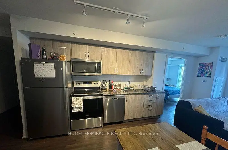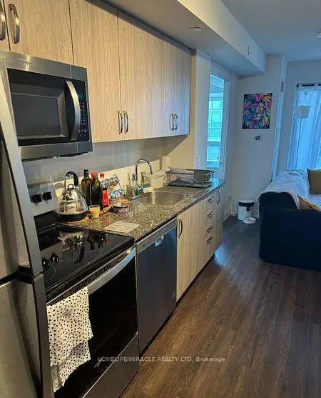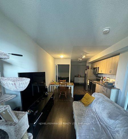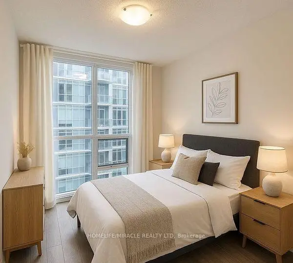 Welcome to this beautifully Condo offers 2 spacious bedrooms, 2 full bathrooms, and a den. Suit perfectly for a home office or a dining space. The Primary bedroom features a private ensuite, Large windows, Lots of natural light and showcase breathtaking views. Modern finishes throughout, laminate flooring, Countertops with stylish backsplash, Stainless steel appliances. Private balcony offers your own outdoor retreat-not shared with other unit. Additionally in-suite laundry, a owned parking spot, and 2 (two) storage locker. You will love the building's luxurious rooftop pool for relaxing or entertaining against the city skyline. Located in one of Toronto's most vibrant neighborhoods, steps from public transit, Schools parks, Al-Jannah Mosque, restaurants, shopping centers, recreational facilities, groceries, min to hwy 401, Building Amenities such as Concierge, Guest Suites, Gym, Outdoor Pool, Party/Meeting Room, etc. Don't miss this opportunity to live in a space that has lot to Offer! Must see
