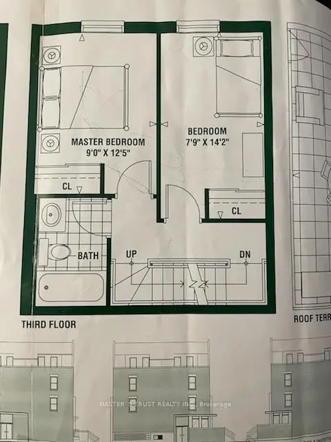 2 Bedrooms stacked townhome with 2-storey in quiet location at Dundas East and DVP. Spacious 919sf plus a 259sf roof top terrace with bbq hookup. Facing west flooded with natural light. Brand new laminate floor in living room, kitchen and hallway throughout. Granite countertops and storage in the kitchen. Freshly painted for the whole unit. Tankless combi-boiler is owned, no monthly rental fee for the water heater. The maintenance fee includs High speed fiber internet/water/Parking/locker and common elements. 24 Hours ttc, Dundas/Queen/King street cars are on doorsteps. Walking distance to downtown, beaches and Leslieville. Front load washer & dryer. Central A/C. Status certificate will be provided upon request.