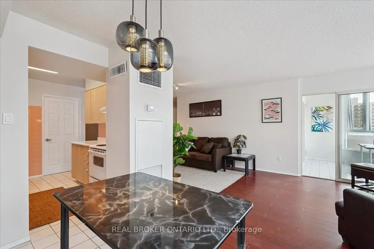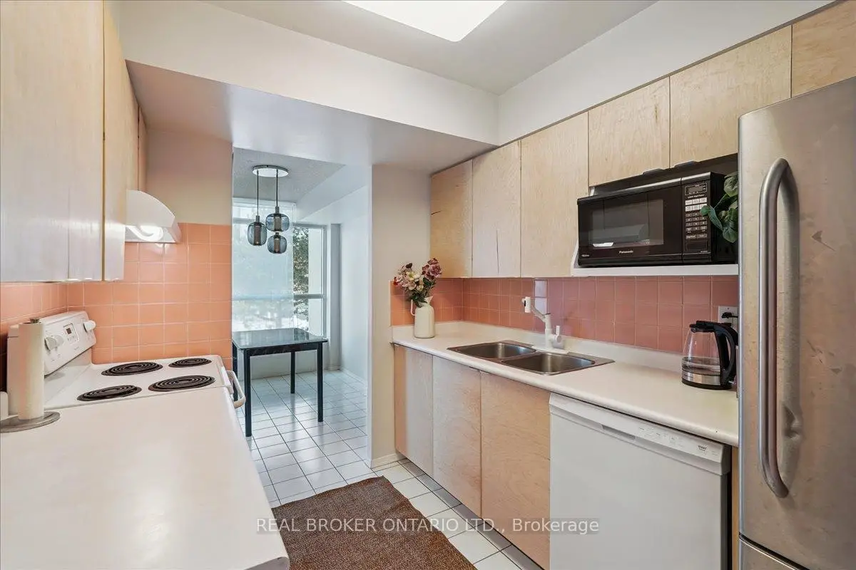 Freshly updated and truly move-in ready. This bright and spacious 2-bedroom plus den, 2-bathroom residence at Guildwood Terrace offers a smart, flexible layout designed for real life, plus a parking space. Main living areas have been freshly painted with updated light fixtures. The open living and dining area flows effortlessly, with a sun-filled solarium/den that works beautifully as a home office, reading nook, or play space. Two well-proportioned bedrooms, including a huge primary with walk-in closet, ensuite, and enclosed balcony, provide comfort and separation from the main living areas. A second full bathroom adds everyday ease for guests or family. Set within a well-managed building known for its resort-style amenities, ample visitor parking, transit access at your door, and proximity to GO, shopping, and green space. Ideal for buyers who value light, layout, and low friction living - without having to lift a finger before moving in.