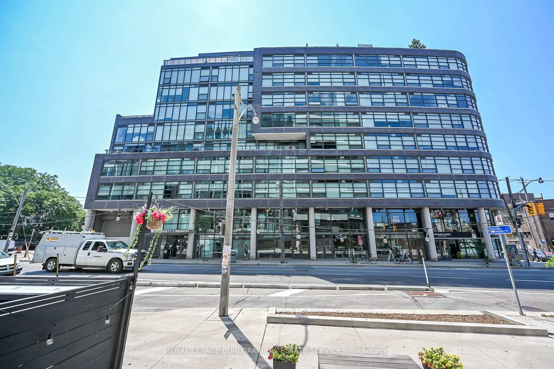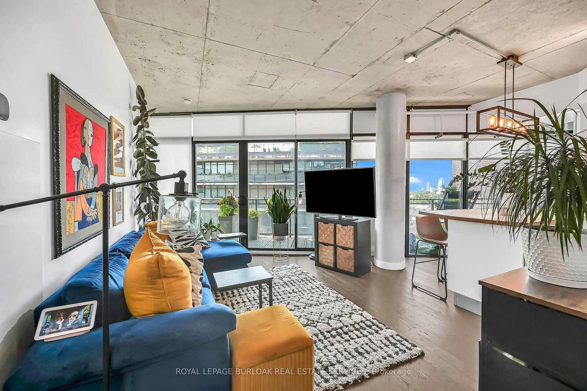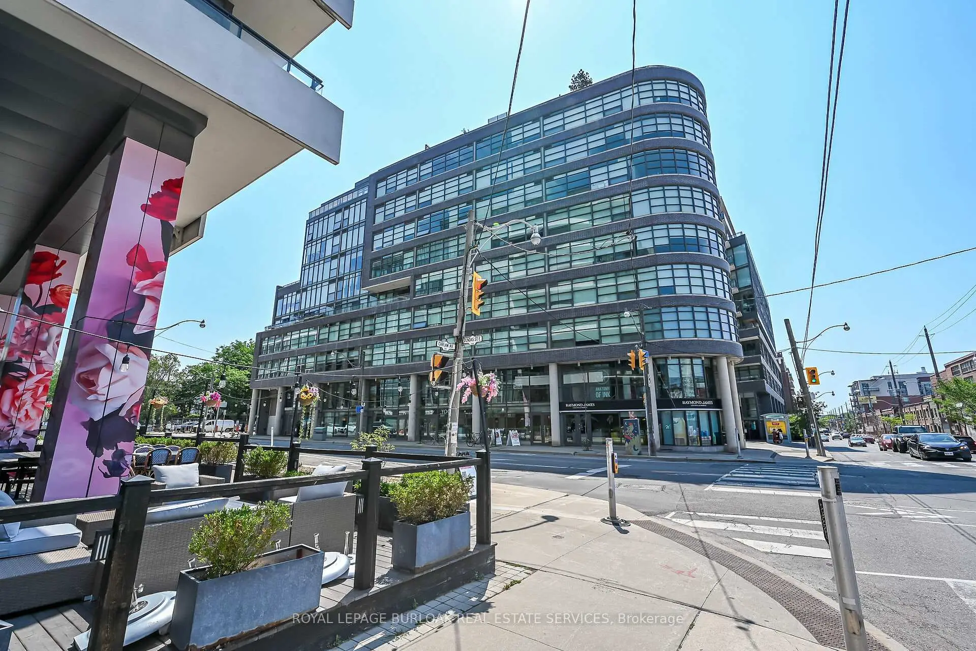 Welcome to Suite 902 at the Flat Iron Lofts, where modern design meets the vibrant charm of Leslieville. This bright 1bedroom plus den, 1-bath corner suite features a smart, open-concept layout ideal for professionals or couples. Floor-to-ceiling, south-facing windows flood the space with natural light throughout the day. Exposed concrete ceilings, wide-plank hardwood floors, and sleek finishes blend industrial character with contemporary style. The modern kitchen offers full-sized stainless steel appliances, stone countertops, and generous storage-perfect for everyday living or entertaining. A standout feature is the expansive private terrace with gas BBQ hookup, offering a seamless extension of the living space. Enjoy city views and stunning downtown sunsets, whether hosting friends or unwinding at the end of the day. Residents also have access to a rooftop terrace with panoramic skyline views. Steps to parks, transit, and Leslieville's best cafés, shops, and restaurants along Queen East and Gerrard. Suite 902 is more than a condo-it's a lifestyle.