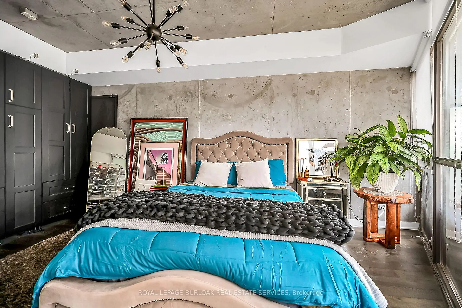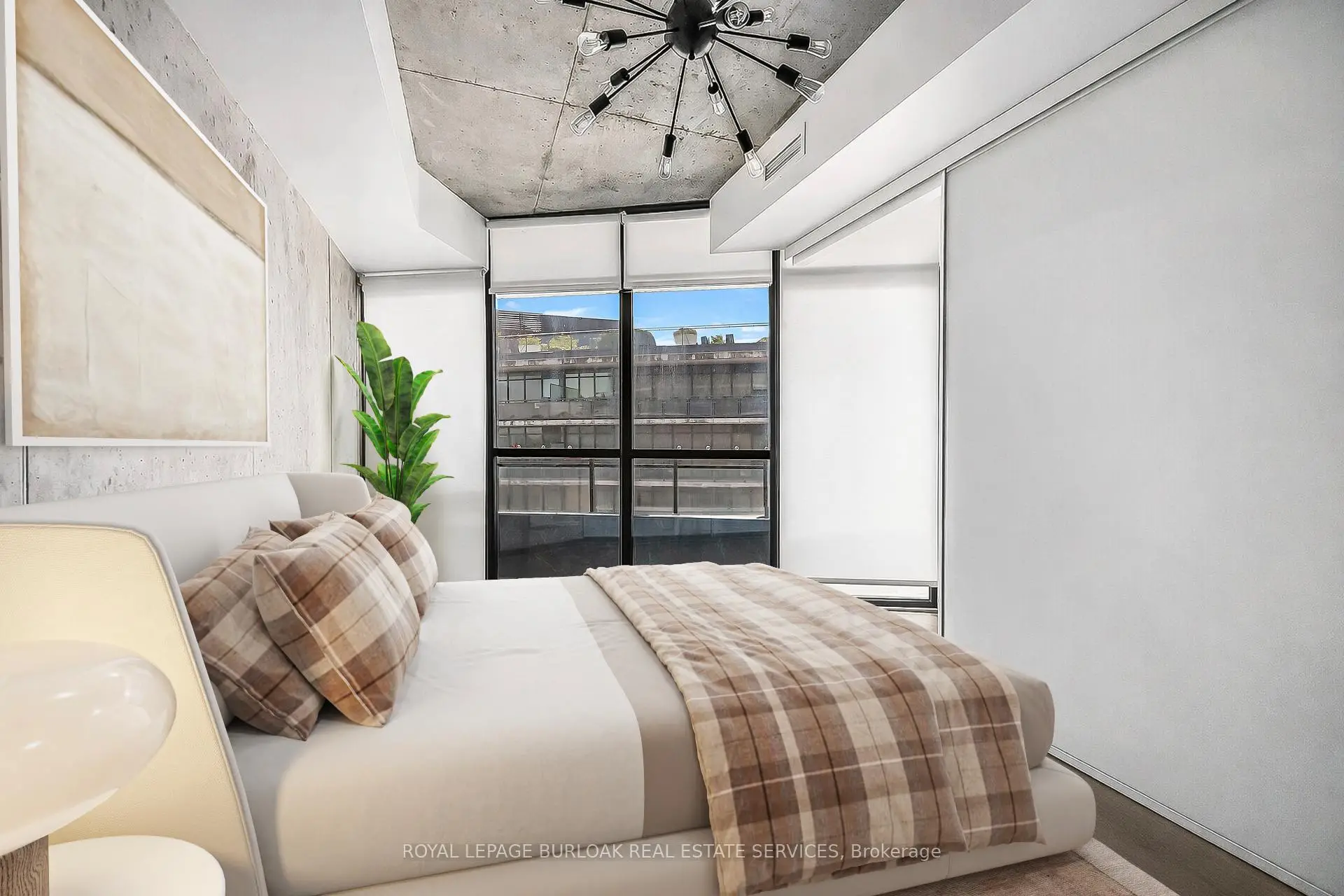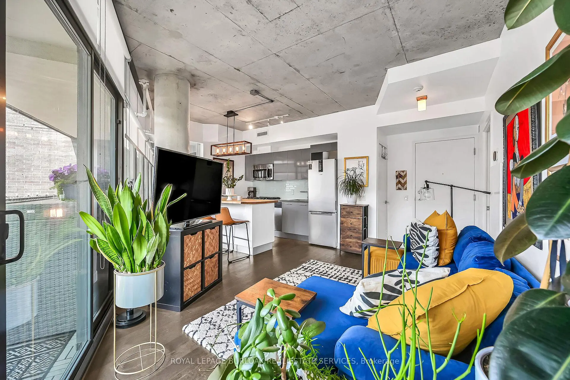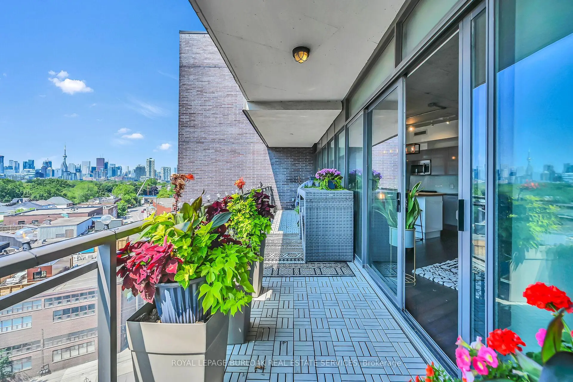Welcome to Suite 902 at the Flat Iron Lofts, where modern design meets the vibrant charm of Leslieville. This bright 1bedroom plus den, 1-bath corner suite features a smart, open-concept layout ideal for professionals or couples. Floor-to-ceiling, south-facing windows flood the space with natural light throughout the day. Exposed concrete ceilings, wide-plank hardwood floors, and sleek finishes blend industrial character with contemporary style. The modern kitchen offers full-sized stainless steel appliances, stone countertops, and generous storage-perfect for everyday living or entertaining. A standout feature is the expansive private terrace with gas BBQ hookup, offering a seamless extension of the living space. Enjoy city views and stunning downtown sunsets, whether hosting friends or unwinding at the end of the day. Residents also have access to a rooftop terrace with panoramic skyline views. Steps to parks, transit, and Leslieville's best cafés, shops, and restaurants along Queen East and Gerrard. Suite 902 is more than a condo-it's a lifestyle.