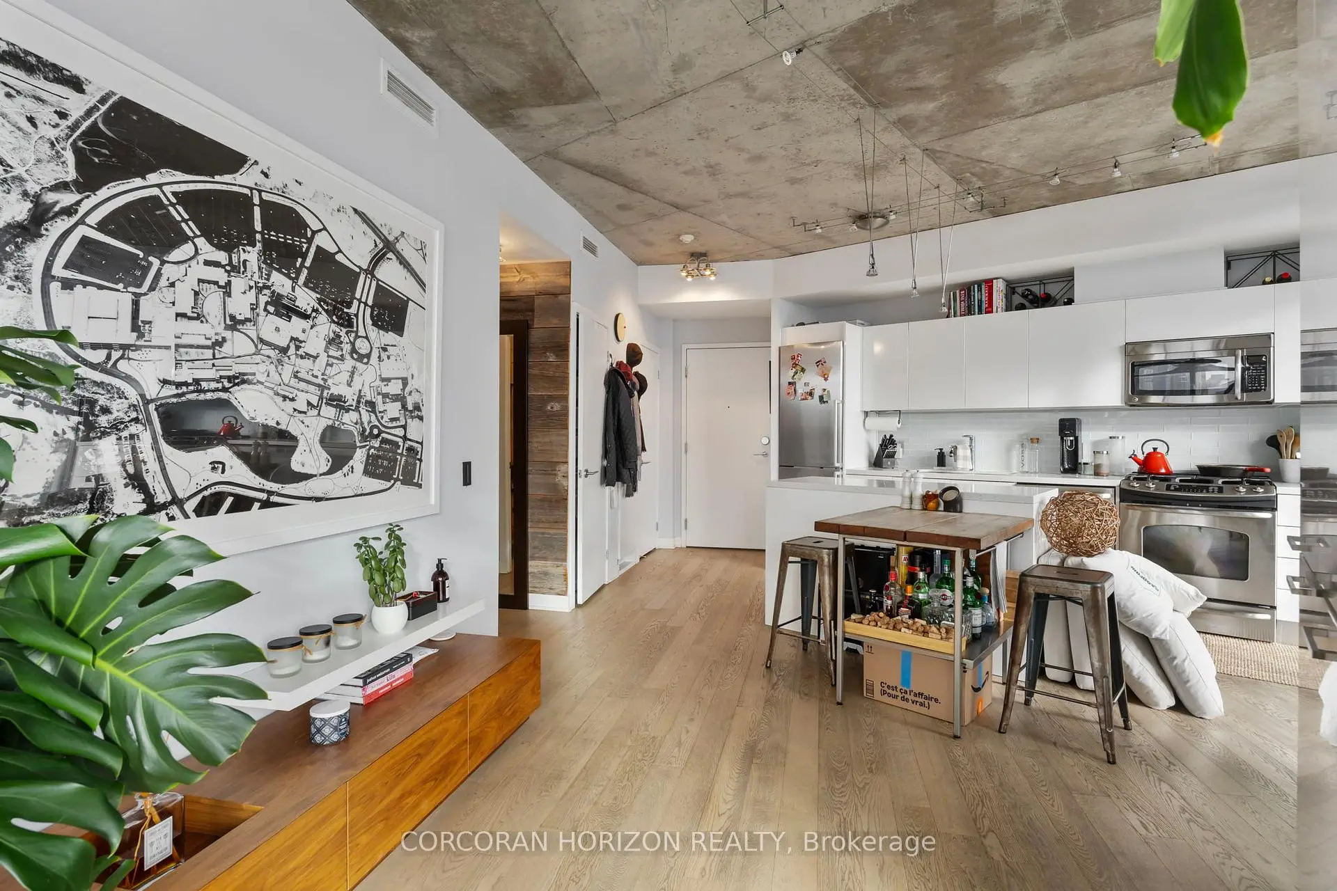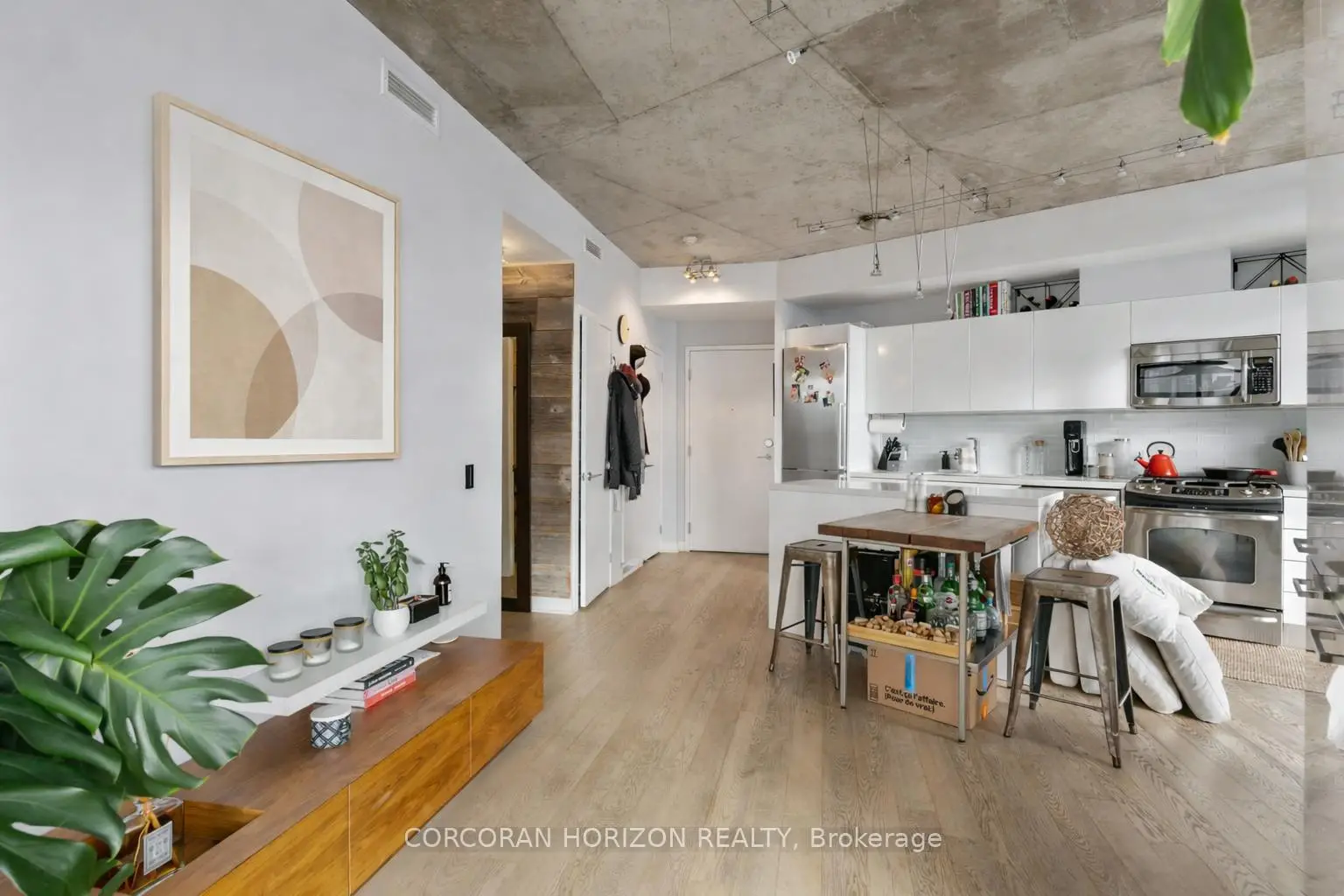 Welcome to this beautifully designed 2 bedroom suite at the Flatiron Lofts, a boutique soft loft residence in the heart of Leslieville. This bright, light filled home is defined by elegant curved walls inspired by the building's iconic flatiron architecture, creating a warm and distinctive living experience. The functional layout is ideal for young professionals, families, or down-sizers, featuring a modern kitchen and dining area seamlessly connected to the open concept living space. The second bedroom offers versatility as a guest room, office, or den, while the spacious primary bedroom includes a large closet and a private 4 piece ensuite. Located in an intimate 10 storey building with retail at ground level, this suite places you steps from Leslieville's best restaurants, cafés, shops, groceries, and everyday amenities offering urban living in one of Toronto's most vibrant neighbourhoods.