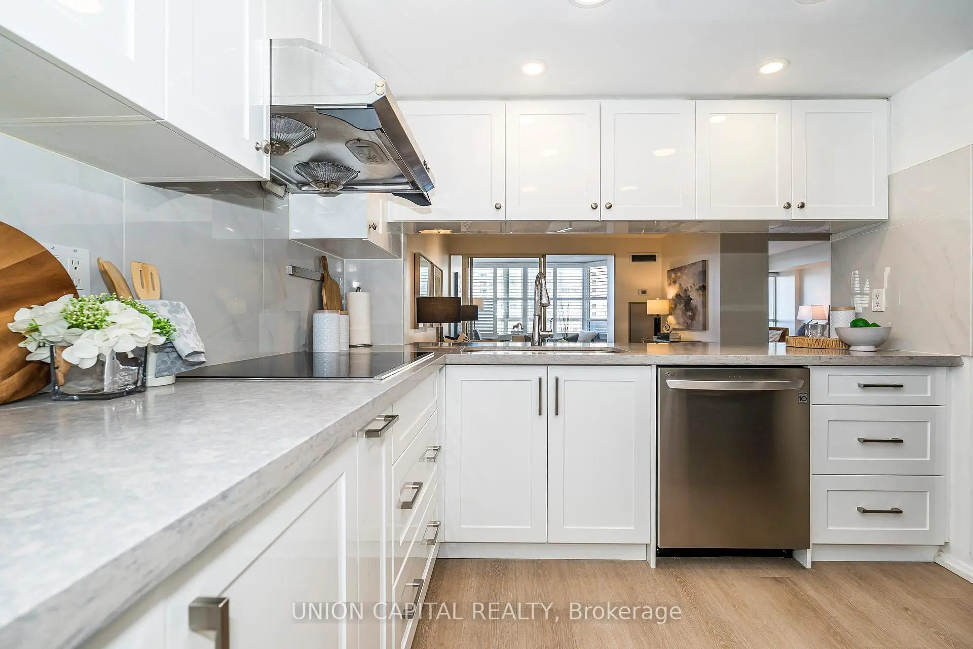 Welcome to this updated 1+1 unit with parking in sought-after luxury Tridel building. The sun-filled solarium can easily be used as a second bedroom, while the large open-concept den offers flexible living or work-from-home space. New vinyl flooring flows throughout the open and functional layout. The newly renovated kitchen features quartz countertops, pull-out pot drawers, two-tier pull-down cabinetry, and stainless steel appliances-perfect for both everyday living and entertaining. Maintenance fees include all utilities, cable TV, and internet, offering exceptional value. Enjoy an unbeatable location with easy access to supermarkets, parks, library, restaurants, banks, clinics, schools, and public transit. The recently renovated building boasts updated hallways and lobby, along with outstanding amenities: landscaped grounds, indoor and outdoor pools, exercise rooms, party rooms, squash, racquet and tennis courts, ample outdoor space, BBQ areas, and 24-hour gatehouse security. Ideal for down-sizers, retirees, or first-time home buyers.