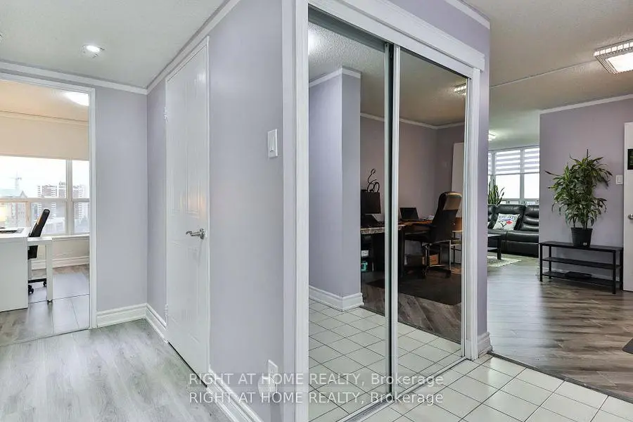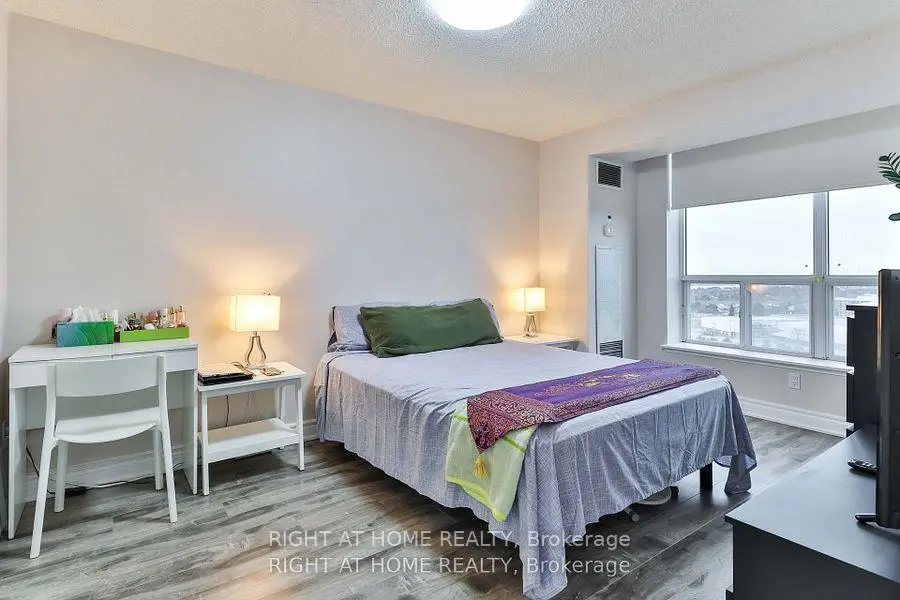 Stunning 2-Bedroom Corner Unit! This high-demand gem features sleek laminate flooring, modern light fixtures, and an open-concept layout. Enjoy breathtaking panoramic views from your oversized private balcony. The spacious master suite boasts a 6-piece ensuite and walk-in his/her closet. 24-hour gated security ensures peace of mind. Prime location-steps from TTC, top-rated schools, shopping, and more! Don't miss this rare opportunity-schedule your viewing today!