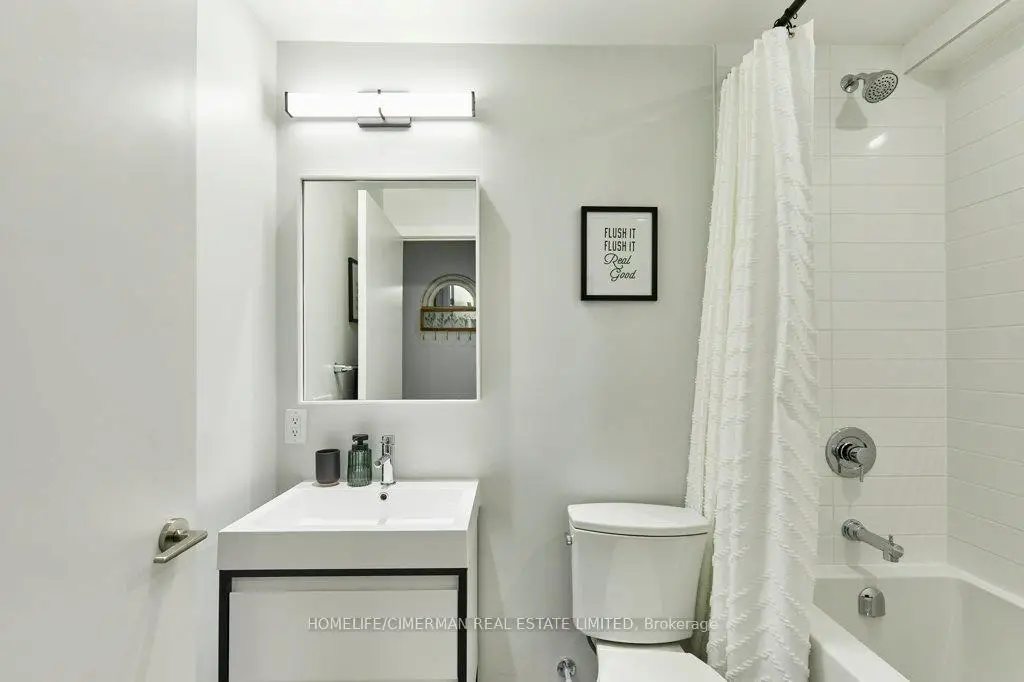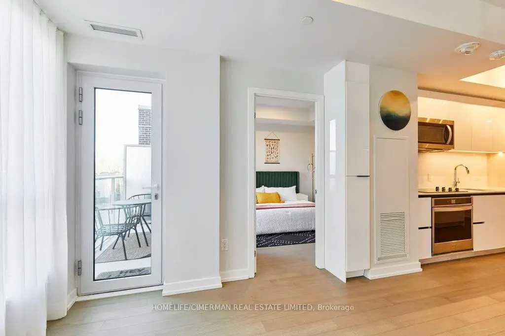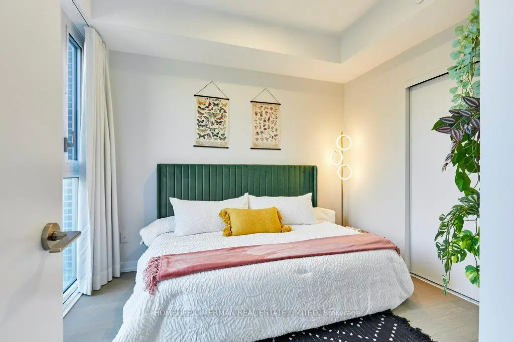 The Wonder Condos - Leslieville's iconic former Weston Bakery, reimagined into one of the east end's most sought-after addresses. This 1,102 sq. ft. northeast corner suite offers a rare, one-of-a-kind floor plan with 9 ft smooth ceilings, expansive windows, and a highly functional 2-bedroom plus den, 2-bath layout. Bright and beautifully finished, it delivers the scale of a home with the ease of condo living. The kitchen is a true focal point, featuring upgraded cabinetry, quartz backsplash, custom quartz waterfall peninsula, full-size Whirlpool appliances, fully integrated dishwasher, Fisher& Paykel refrigerator, under-cabinet lighting, undermount sink, and a custom pantry cabinet. Upgraded flooring runs throughout, complemented by enhanced bathroom tile selections for a polished, cohesive feel. The primary bedroom includes custom cabinetry in the walk-in closet and a well-appointed ensuite with heated floors for added comfort. The second bedroom offers flexibility for guests or family, while the separate den with closet functions perfectly as a dedicated home office or creative workspace. Custom window treatments are included, and all appliances and fixtures convey, making this a turnkey opportunity. Enjoy your private open balcony, underground parking, and locker. Residents benefit from exceptional amenities including a rooftop terrace with unobstructed city views, BBQs and fire pit, fully equipped gym, concierge, co-working space with WiFi, indoor family and children's playroom, pet wash, and bike storage. Steps to the best stretch of Queen Street East, you're surrounded by top restaurants, independent boutiques, lively patios, transit, and excellent schools including Morse Street Junior Public School. On the Queen streetcar line and close to two future Ontario Line stations for seamless downtown access. A rare blend of space, design, and full-service urban living in the heart of Leslieville. Furnishings (excluding dining set and piano) negotiable.