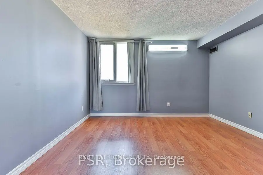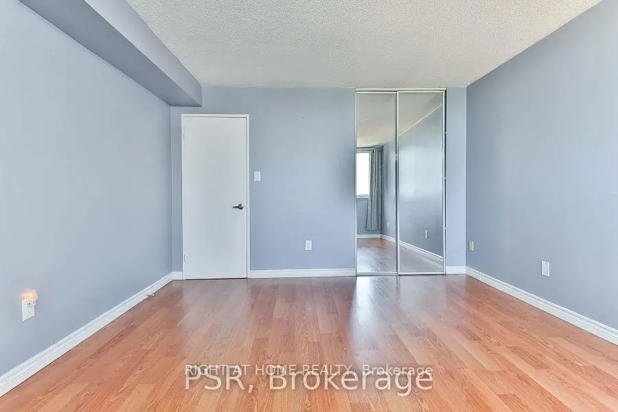 Unbeatable value! Beautifully updated, spacious, and well laid-out one-bedroom condo featuring parking and a locker. Renovated kitchen and bathroom, along with modern laminate flooring throughout-move in and enjoy.This bright unit offers generous living space with a large living and dining room combination that walks out to your private balcony. The oversized primary bedroom easily accommodates a king-sized bed and additional furniture.Ideally located just steps to shopping malls, grocery stores, transit, parks, schools, a community centre, and library, with quick access to Highway 401 for easy commuting.