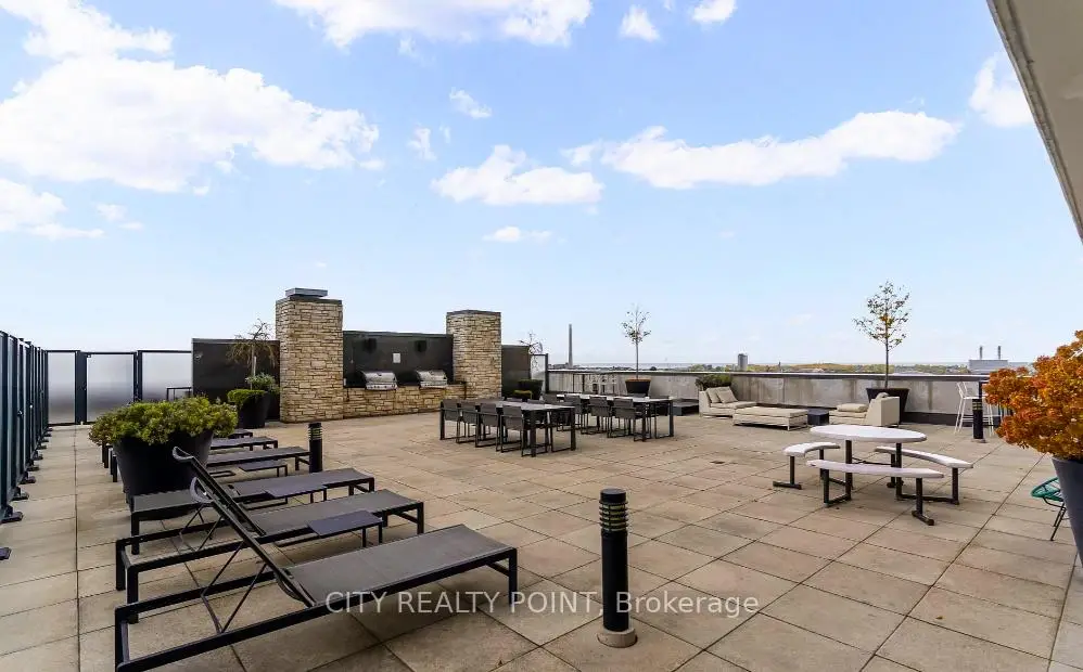Bright, spacious, and thoughtfully crafted, this loft at The Carlaw features two well-sized bedrooms, two full bathrooms, and a versatile den ideal for a home office or additional living space. Designed for contemporary living, it boasts 9-foot exposed concrete ceilings, expansive floor-to-ceiling windows, and a north-facing balcony complete with a gas line. The open-concept design is perfect for both entertaining and everyday use. The modern kitchen is upgraded with quartz countertops, extended cabinetry, and full-size stainless steel appliances, all presented in a sleek, cohesive finish. Hardwood flooring runs throughout, adding warmth and continuity to the space. A conveniently located locker on the same floor adds extra practicality. Residents enjoy access to premium building amenities, including a rooftop terrace with stunning city views, a fully equipped fitness center, a stylish rooftop party room, and 24-hour concierge service. Ideally located in the vibrant East End, this home places you steps from Crows Theatre, the newly opened Piano Piano, and the best of Leslieville's shops, cafés, parks, and transit. An exceptional opportunity to experience stylish, low-maintenance urban living-welcome home.