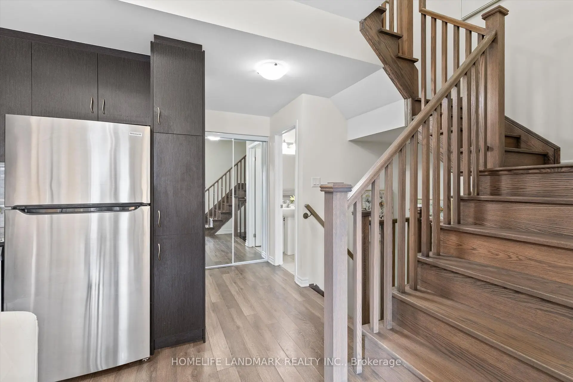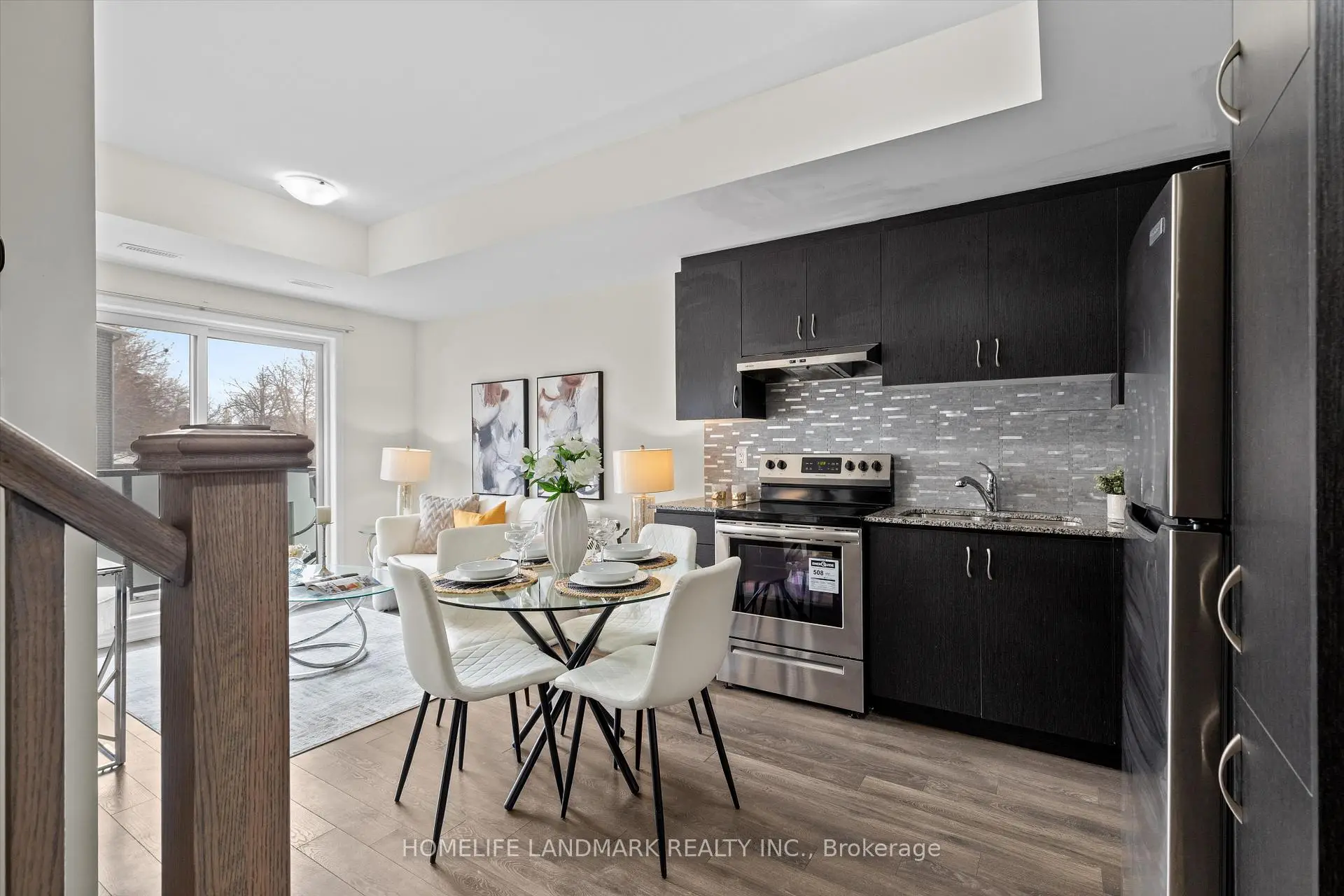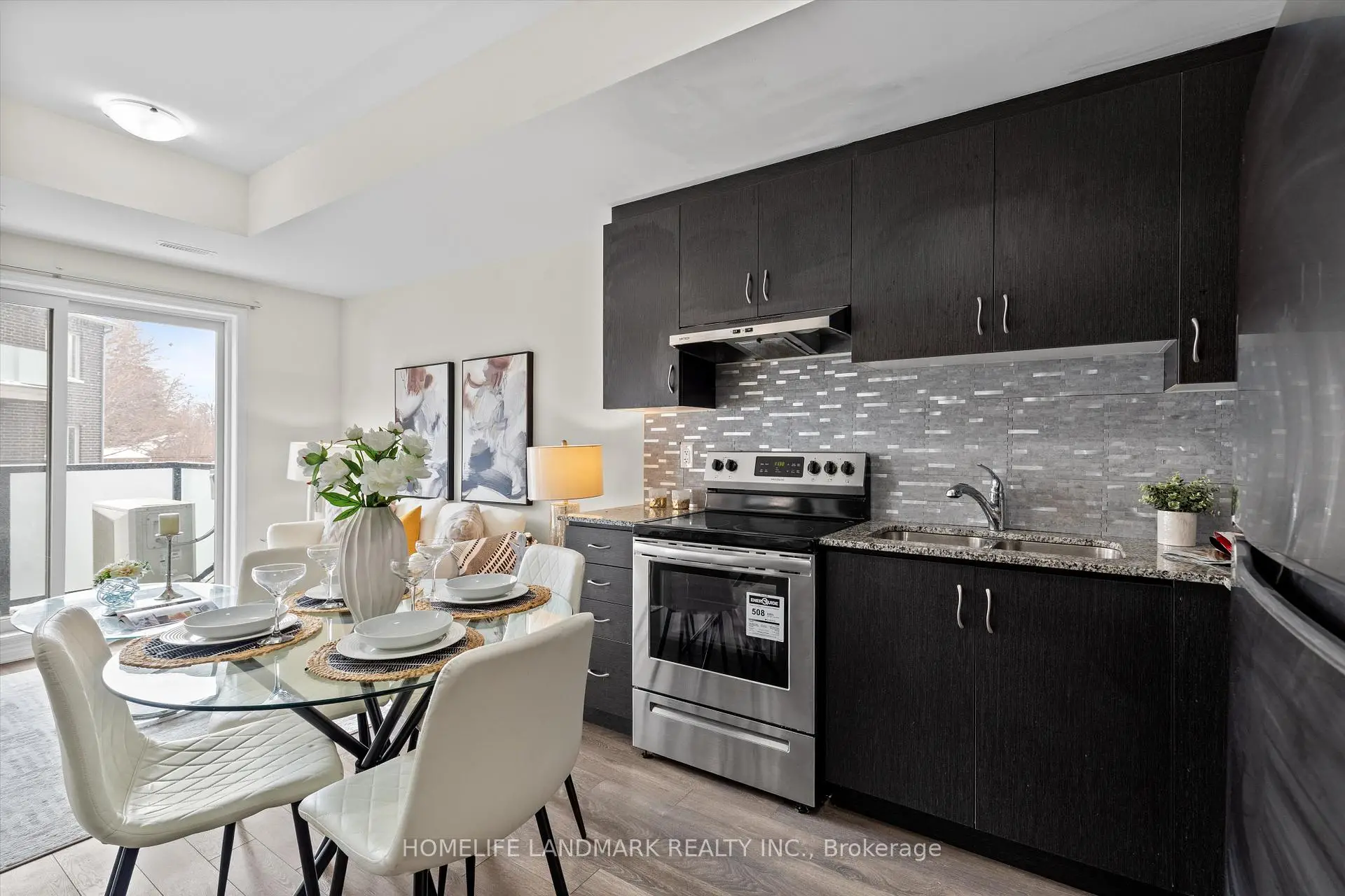 Welcome to East Station Townhomes - a beautifully upgraded 3-bedroom, 3-bath stacked townhome offering stylish, modern living in Toronto's vibrant east end. Built by Mattamy Homes, this thoughtfully designed residence offers over 1,000 sq. ft. whole home hardwood floor of functional living space with a bright open-concept layout ideal for families, professionals, or investors. The versatile third bedroom is currently used as a home office and can easily be converted into a sleek bedroom to suit your needs. The contemporary kitchen is designed to impress, featuring stone/granite countertops, upgraded cabinetry, stainless steel appliances, a stylish backsplash, and ample prep and storage space, perfect for both daily living and entertaining. The spacious living and dining area is filled with natural light and offers a walkout to a private balcony, ideal for morning coffee or evening relaxation. Upstairs, enjoy well-sized bedrooms including a comfortable primary suite with ensuite bath and generous closet space. Elegant finishes throughout include modern flooring, refined lighting, turnkey upgrades, plus the added comfort of a whole-home air exchanger for improved air circulation and year-round comfort. Conveniently located less than a kilometre from the Eglinton LRT and Kennedy Subway Station, and close to schools, parks, shopping, and everyday amenities, this low-maintenance urban home is a fantastic opportunity in a rapidly growing east Toronto community.
