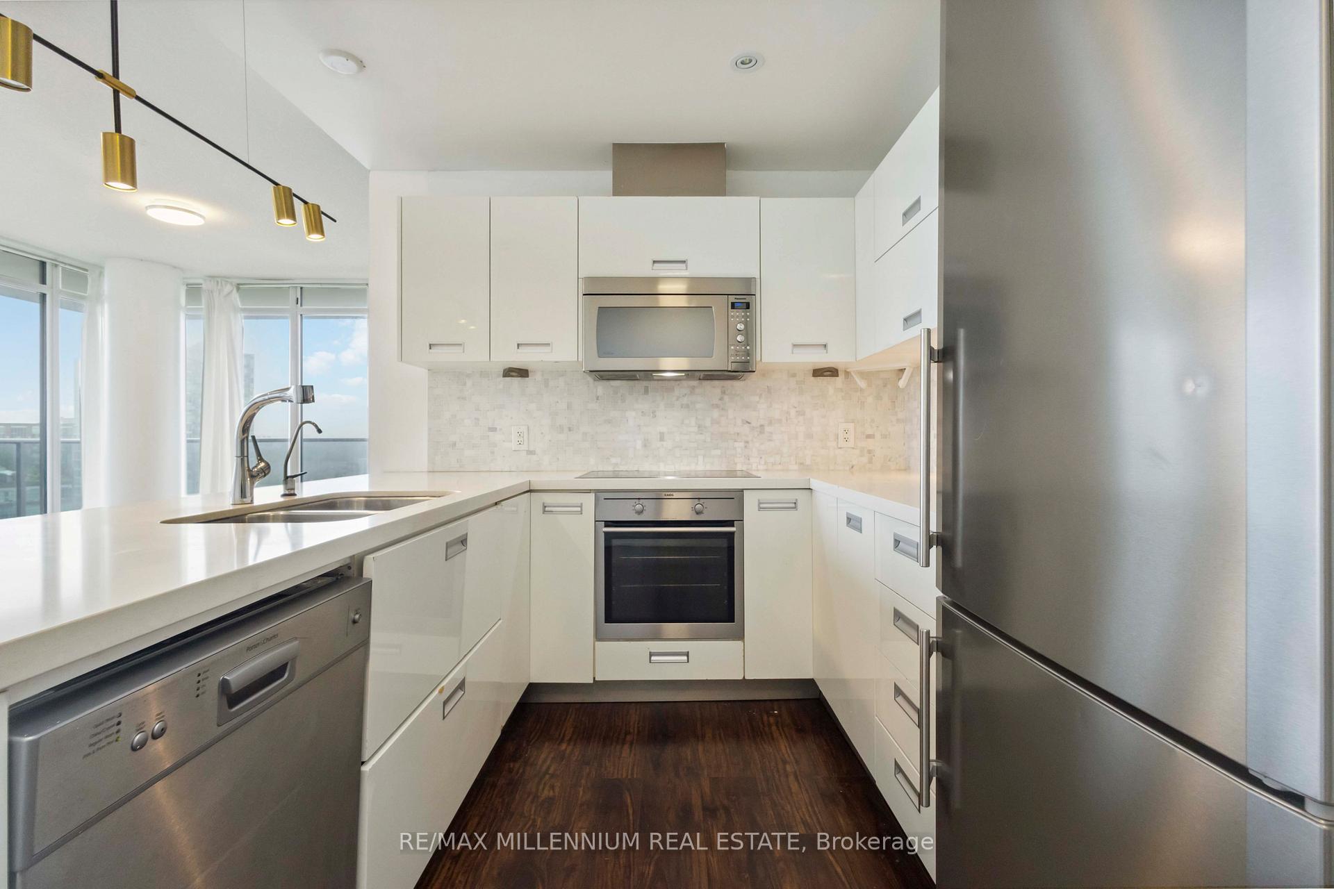Discover the epitome of urban elegance in this modern 2 Bedroom + Den condo unit, strategically positioned in Mimico community. This corner unit boasts a bright living area with floor to ceiling windows and a wrap-around balcony that invites natural light to enhance your living experience. Revel in the sophistication of hardwood flooring, stainless steel appliances, and exquisite stone countertops that define contemporary luxury. This exclusive unit includes 1 parking space and 1 locker. Elevate your lifestyle with the condos array of leisure amenities, including a gym filled with tons of natural light, indoor and outdoor pool with BBQ area, and sports facilities such as basketball and squash courts, all designed to cater to your active lifestyle. Secure your piece of this sought-after living experience where comfort meets luxury.