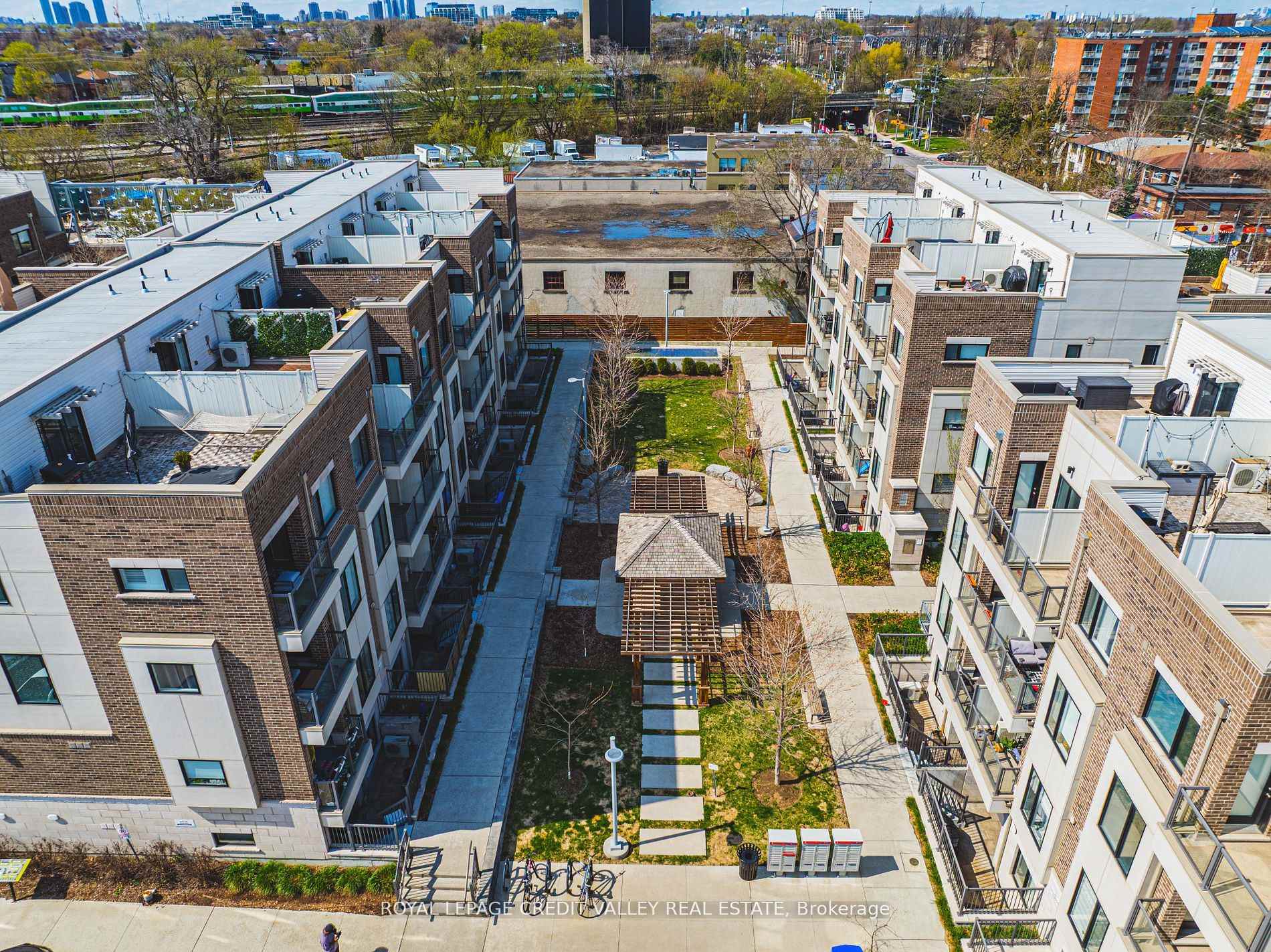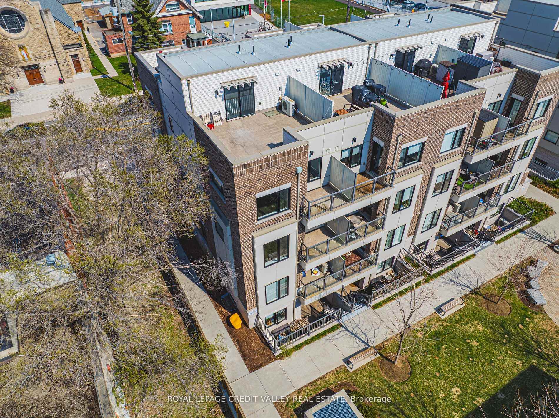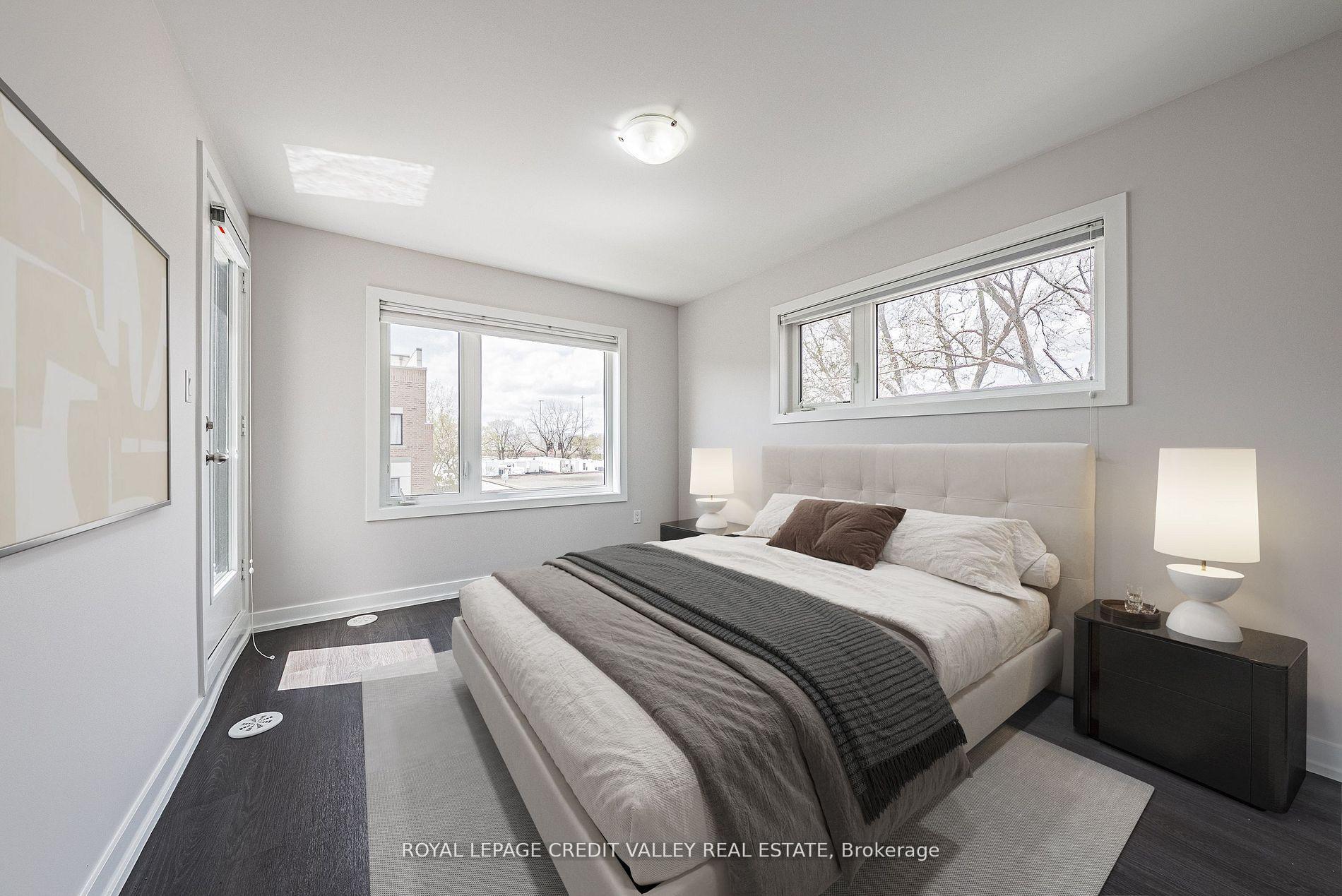 This 3 storey END UNIT townhome with RARE 2 PARKING SPACES, 2 BALCONIES PLUS 319 SF ROOF TOP TERRACE, offers urban convenience with a touch of charm. Perfectly Situated minutes from the LAKE and seamless access to public transportation across the street from Mimico Go Station and one bus to the subway, ideal for commuters and city dwellers. Freshly painted throughout the entire home, the home boasts a clean modern aesthetic with bright, inviting interiors. The layout is functional and efficient. typical of stacked townhome designs, featuring multiple levels for living sleeping and enjoyment. The crown jewel along with 2 balconies is the roof top terrace- perfect for relaxing, entertaining or soaking in panoramic views of the surrounding neighbourhood. Whether you're a first time buyer or looking for low maintenance investment, this townhome strikes a compelling balance between location, lifestyle, and value.