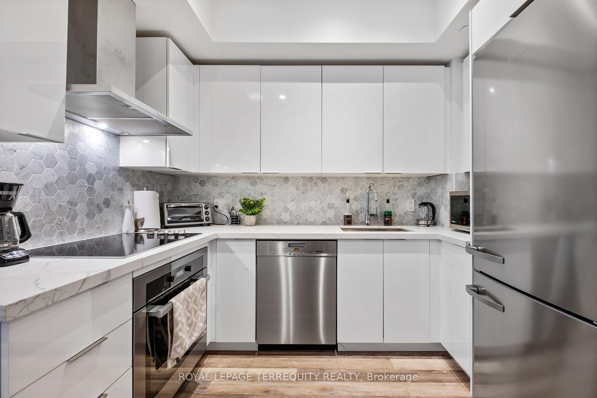 Welcome to your dream condo! This rare 2 bedroom, 2 bathroom offers the perfect blend of indoor/outdoor living with a large terrace of 370 sq ft! Located in the very popular Eau Du Soleil towers, the unit features premium Miele kitchen appliances, high ceilings and more! Primary bedroom with an ensuite bathroom and walk out to private terrace. This unit includes two lockers, one large locker located across the hall on the same floor and second located in the parking garage. 1 Prime parking space conveniently located by the Elevator! Building Amenities include: Rooftop deck with lounge chairs and bbqs overlooking the lake. Stunning party room, gym, indoor pool, sauna, bike storage and more! Prime location at one of Etobicoke's most popular communities with steps to the lake, park, trails, restaurants and easy access to get Downtown!