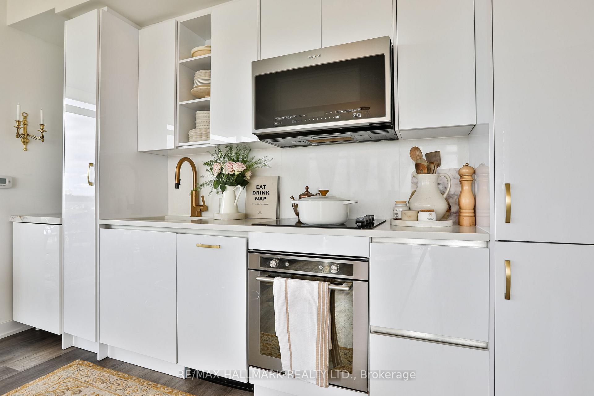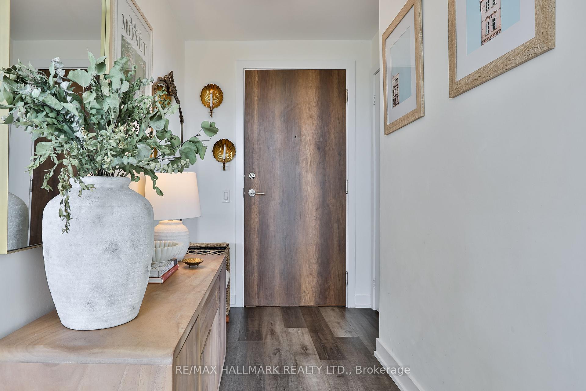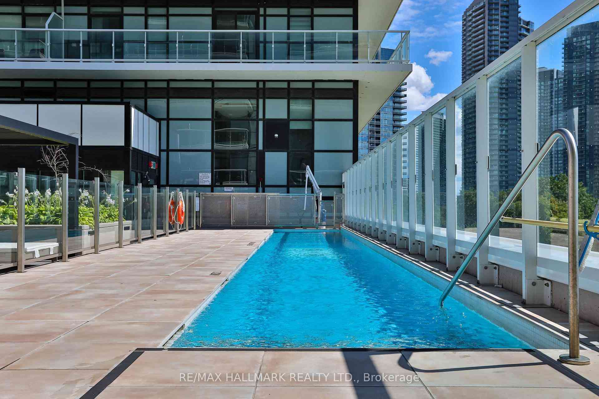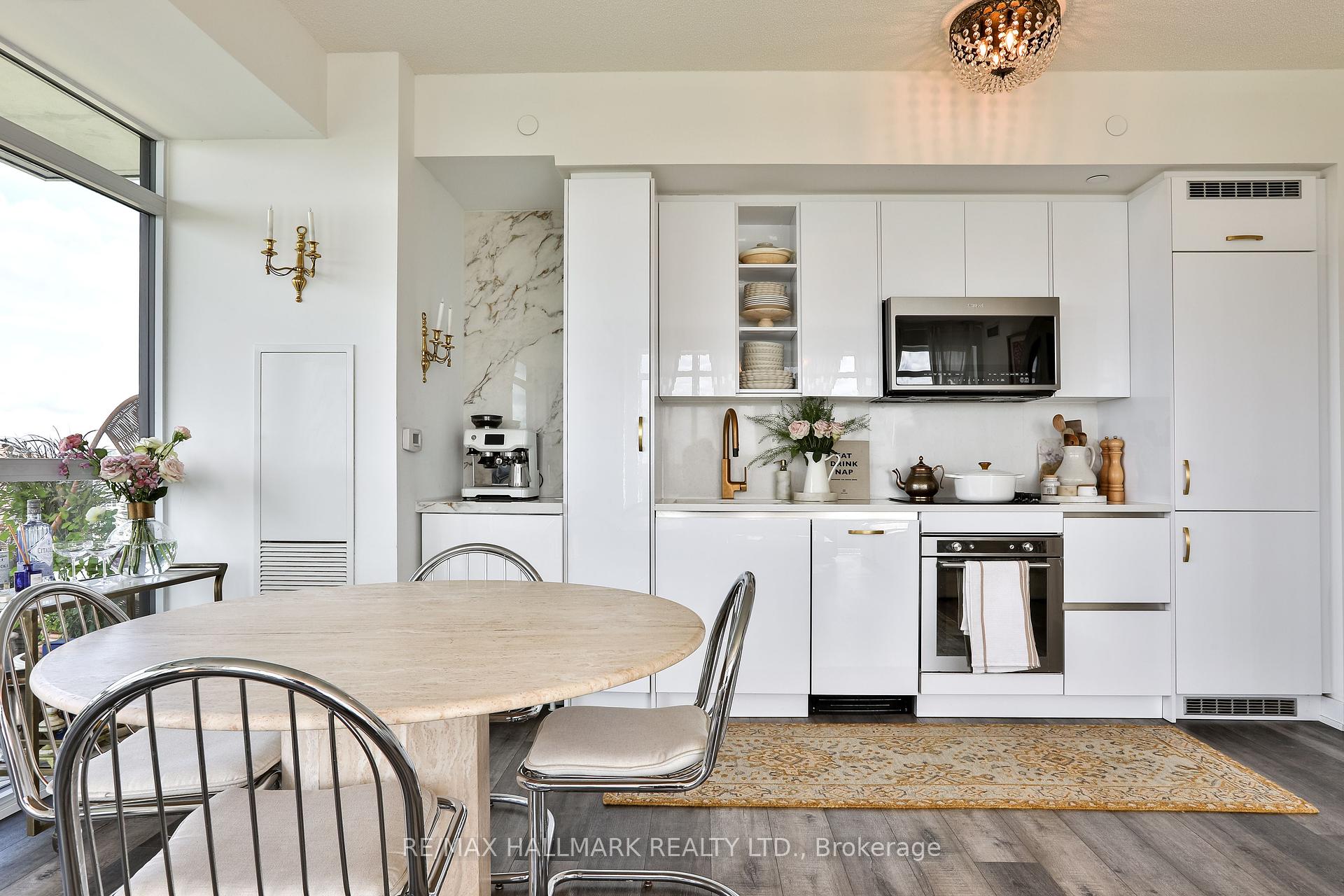 Welcome to this beautifully upgraded 2-bedroom, 2-bathroom condo offering 920 sq ft (including balcony) of thoughtfully designed living space with southwest exposure and sweeping views of Lake Ontario. Bright and modern, the open-concept layout showcases a sleek kitchen with a built-in coffee bar featuring porcelain counters and backsplash, an integrated flush fridge, flush cooktop, and undermount sink for a seamless designer look.The spacious living area opens to a private balcony, recently enhanced with custom paver tiles and outdoor pot lights perfect for entertaining or relaxing at sunset. Both bedrooms feature upgraded light fixtures with modern bedside sconces, creating a warm and elegant ambiance. With two generously sized bedrooms, the home is ideal for professionals or couples needing a dedicated work-from-home space. Added conveniences include in-suite laundry, two storage lockers, and a parking spot near the elevator with EV charging rough-in.The building offers resort-style amenities: outdoor pool, sauna, fully equipped gym, yoga studio, pet wash station, and 24-hour concierge and security.Unbeatable location steps from Mimico GO Station for an easy downtown commute, minutes to major highways, and a short walk to the waterfront trail for biking, running, or lakeside strolls. A perfect balance of urban convenience, lakeside tranquility, and work-from-home practicality.