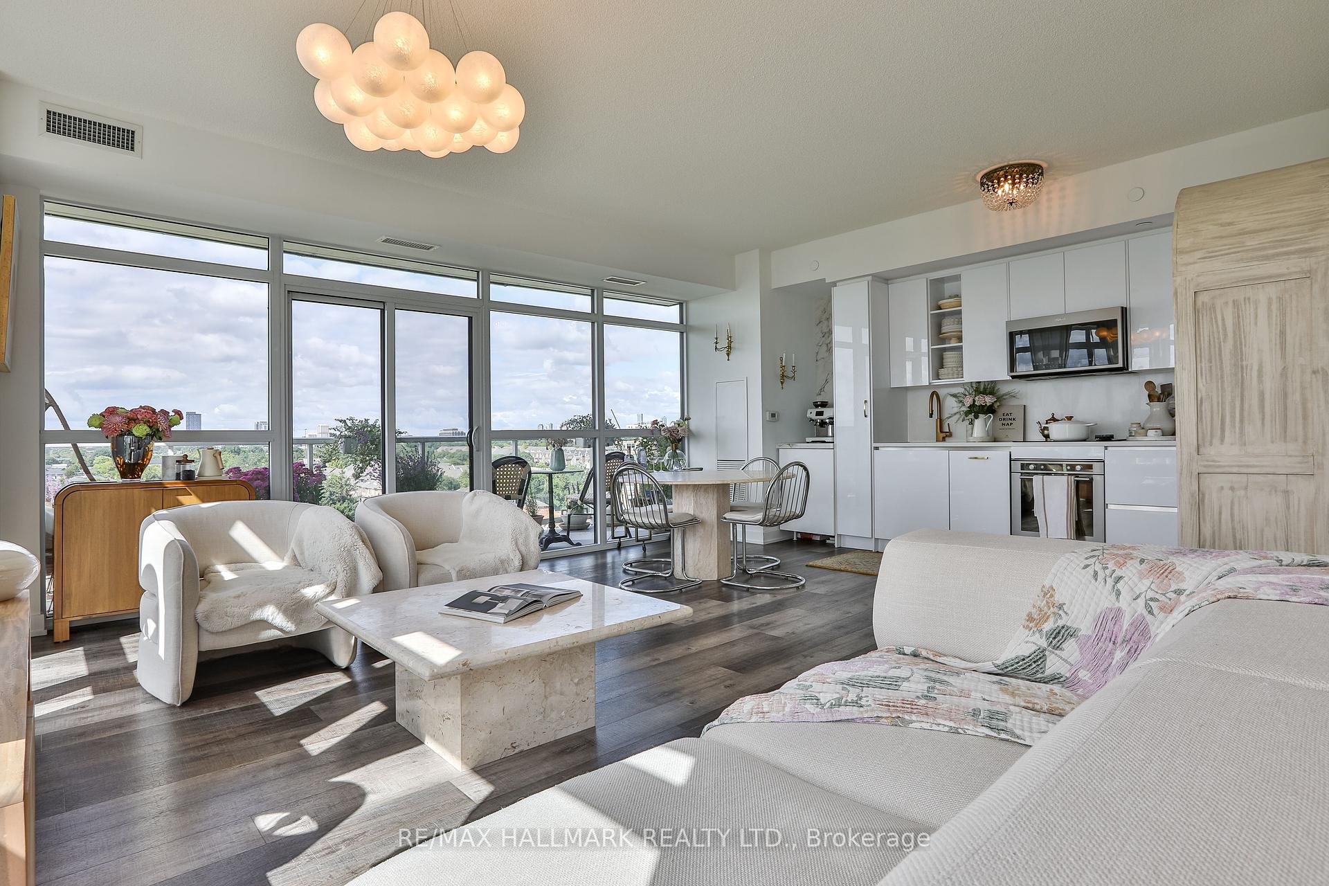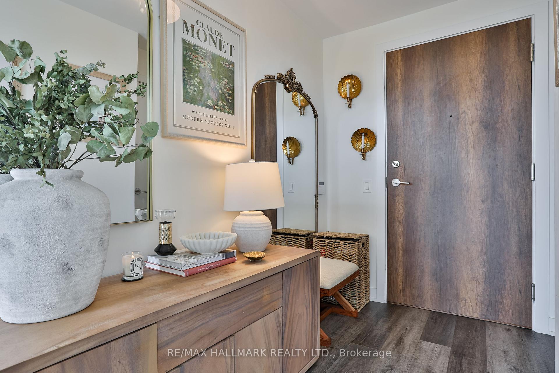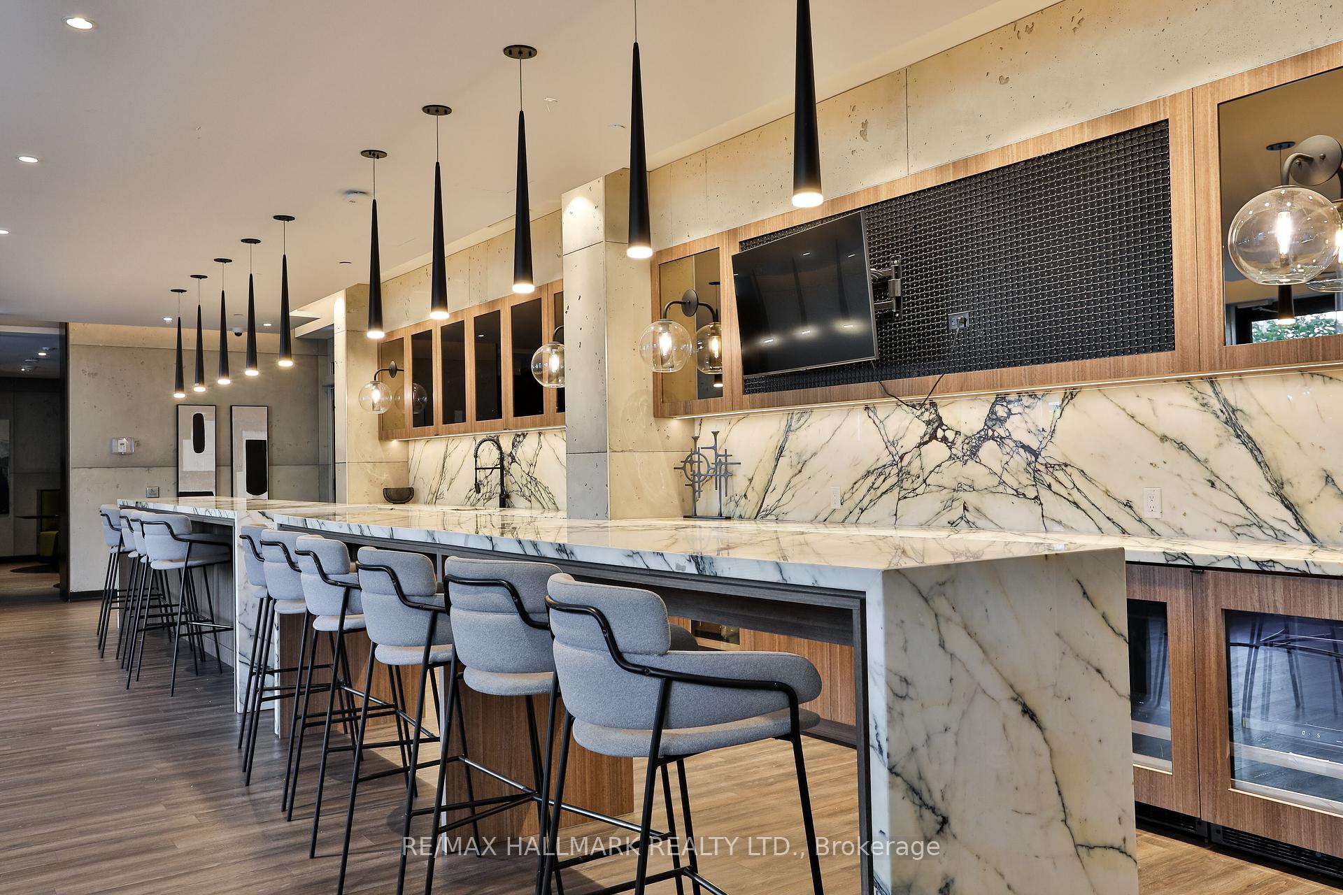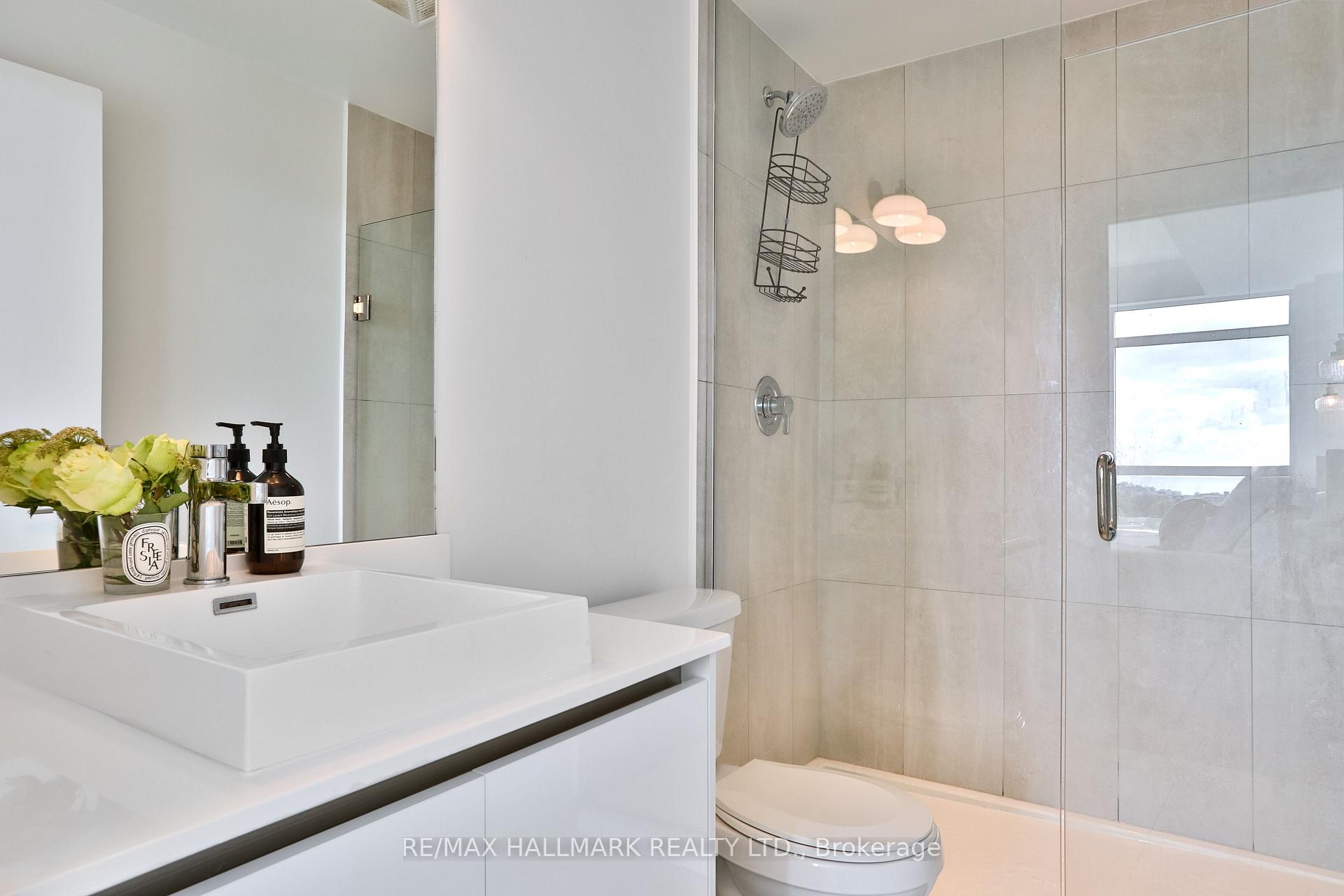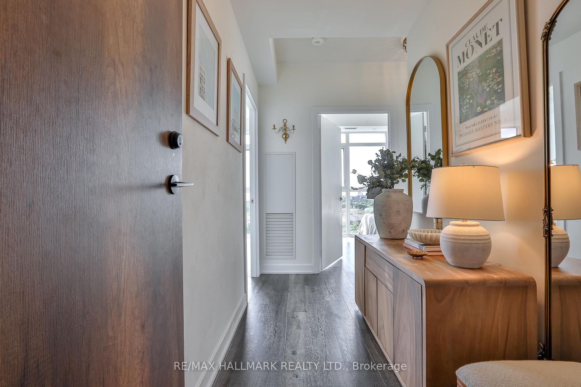 Welcome to this beautifully upgraded 2-bedroom, 2-bathroom condo offering 920 sq ft (including balcony) of thoughtfully designed living space with southwest exposure and sweeping views of Lake Ontario. Bright and modern, the open-concept layout showcases a sleek kitchen with a built-in coffee bar featuring porcelain counters and backsplash, an integrated flush fridge, flush cooktop, and undermount sink for a seamless designer look.The spacious living area opens to a private balcony, recently enhanced with custom paver tiles and outdoor pot lights perfect for entertaining or relaxing at sunset. Both bedrooms feature upgraded light fixtures with modern bedside sconces, creating a warm and elegant ambiance. With two generously sized bedrooms, the home is ideal for professionals or couples needing a dedicated work-from-home space. Added conveniences include in-suite laundry, two storage lockers, and a parking spot near the elevator with EV charging rough-in.The building offers resort-style amenities: outdoor pool, sauna, fully equipped gym, yoga studio, pet wash station, and 24-hour concierge and security.Unbeatable location steps from Mimico GO Station for an easy downtown commute, minutes to major highways, and a short walk to the waterfront trail for biking, running, or lakeside strolls. A perfect balance of urban convenience, lakeside tranquility, and work-from-home practicality.
