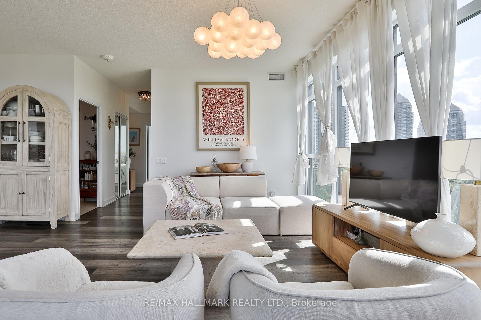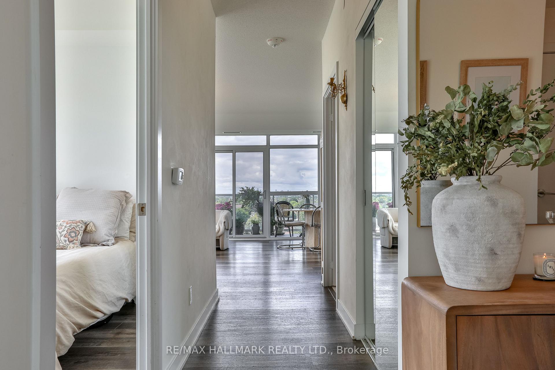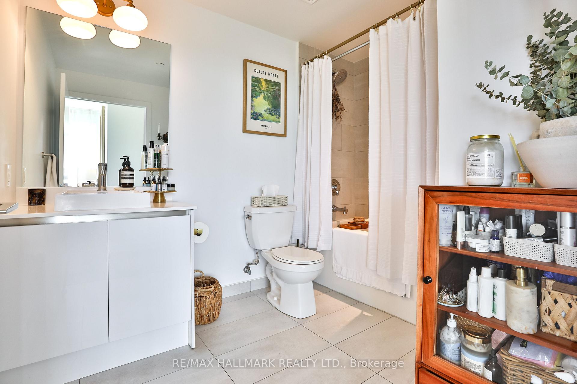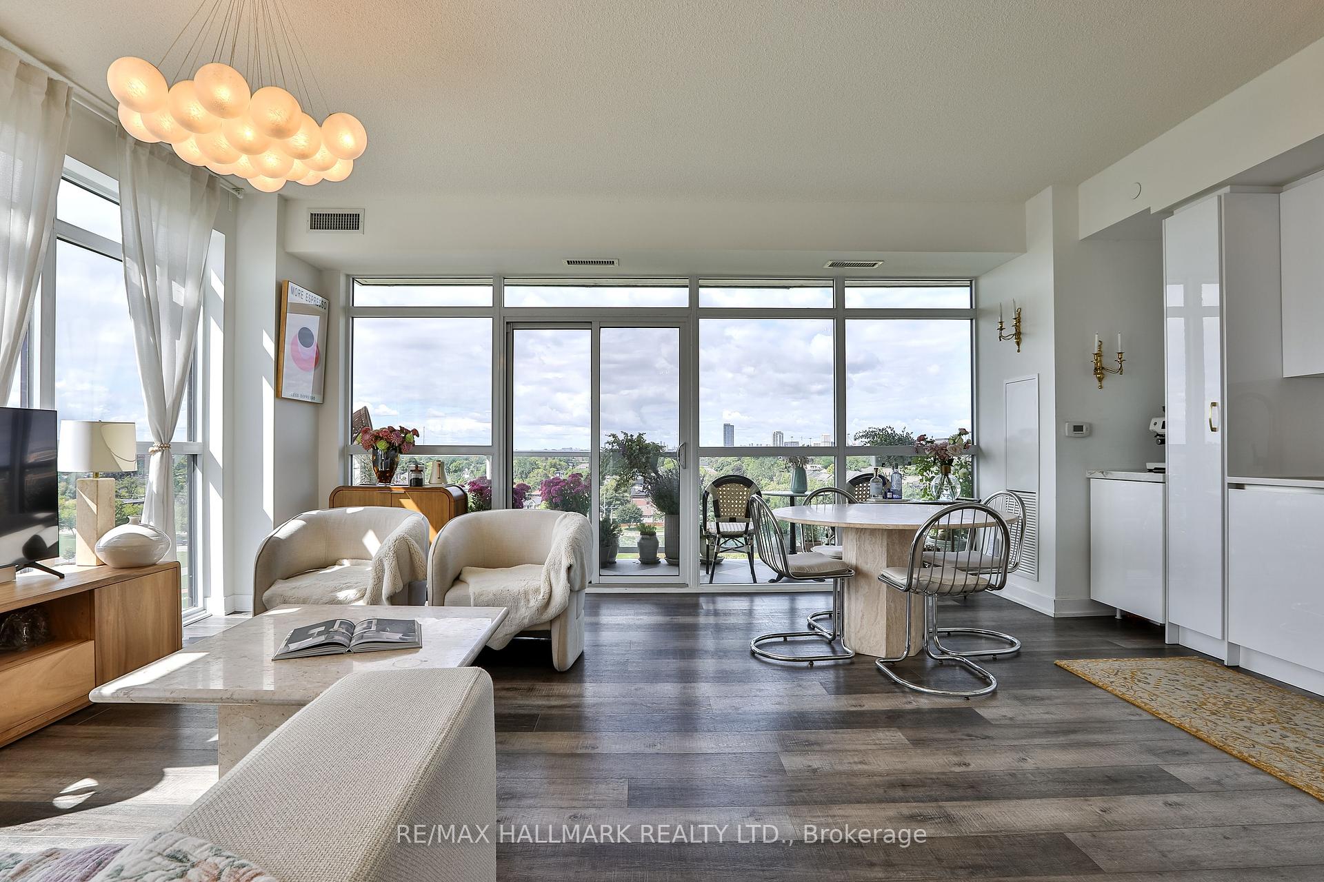Welcome to this beautifully upgraded 2-bedroom, 2-bathroom condo offering 920 sq ft (including balcony) of thoughtfully designed living space with southwest exposure and sweeping views of Lake Ontario. Bright and modern, the open-concept layout showcases a sleek kitchen with a built-in coffee bar featuring porcelain counters and backsplash, an integrated flush fridge, flush cooktop, and undermount sink for a seamless designer look.The spacious living area opens to a private balcony, recently enhanced with custom paver tiles and outdoor pot lights perfect for entertaining or relaxing at sunset. Both bedrooms feature upgraded light fixtures with modern bedside sconces, creating a warm and elegant ambiance. With two generously sized bedrooms, the home is ideal for professionals or couples needing a dedicated work-from-home space. Added conveniences include in-suite laundry, two storage lockers, and a parking spot near the elevator with EV charging rough-in.The building offers resort-style amenities: outdoor pool, sauna, fully equipped gym, yoga studio, pet wash station, and 24-hour concierge and security.Unbeatable location steps from Mimico GO Station for an easy downtown commute, minutes to major highways, and a short walk to the waterfront trail for biking, running, or lakeside strolls. A perfect balance of urban convenience, lakeside tranquility, and work-from-home practicality.