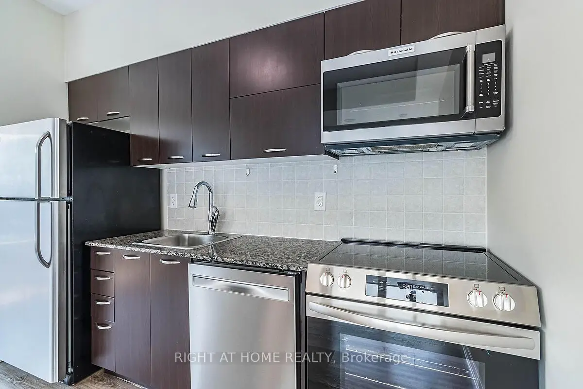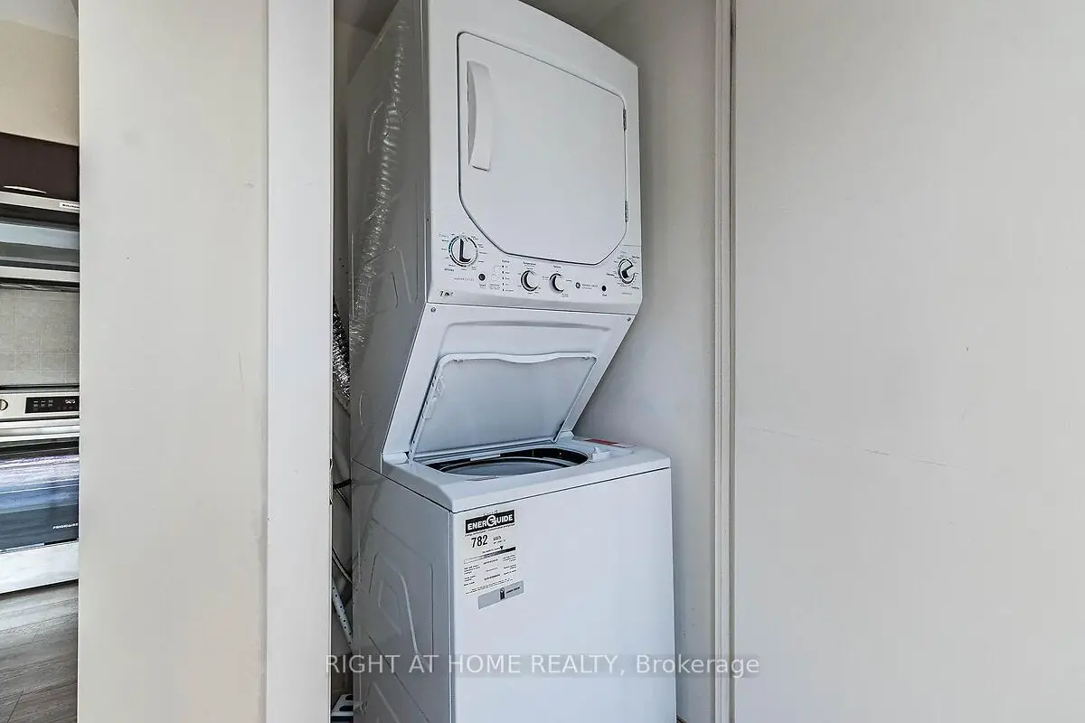 Gorgeous sunfilled 1 bd corner unit at Bridge condominium for sale! This bright and modern Corner Unit features Fully Upgraded Vinyl floors, New S/S Kitchen Appliances, 2 y New Stacked Washer/Dryer, New Modern Window coverings, freshly painted throughout! Unbeatable convenient location w/walking distance to groceries, restaurants and public transit, park across the street. Amenities include fully equipped gym, indoor pool, outdoor garden, steam room, party room, quest suite and 24 h concierge.