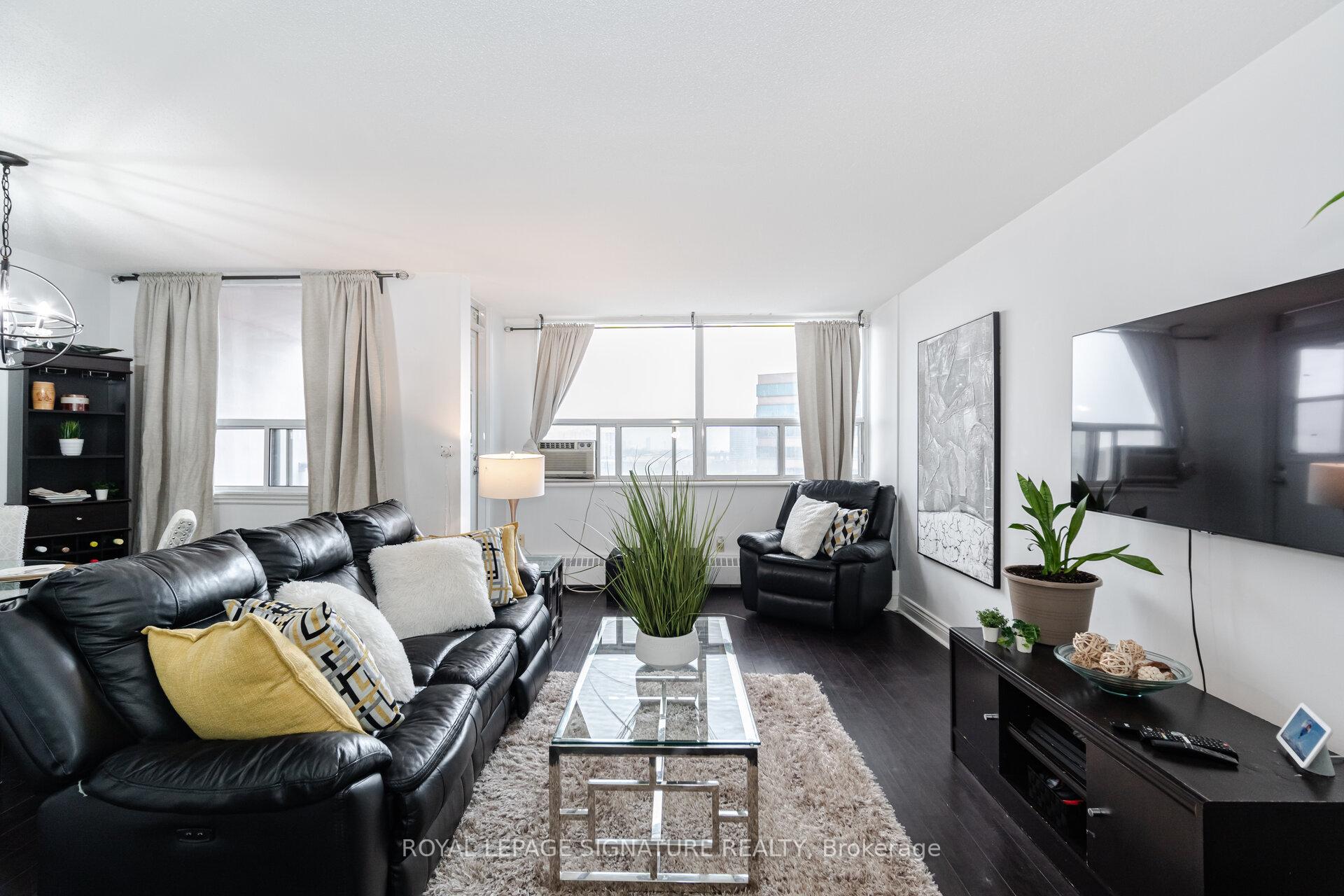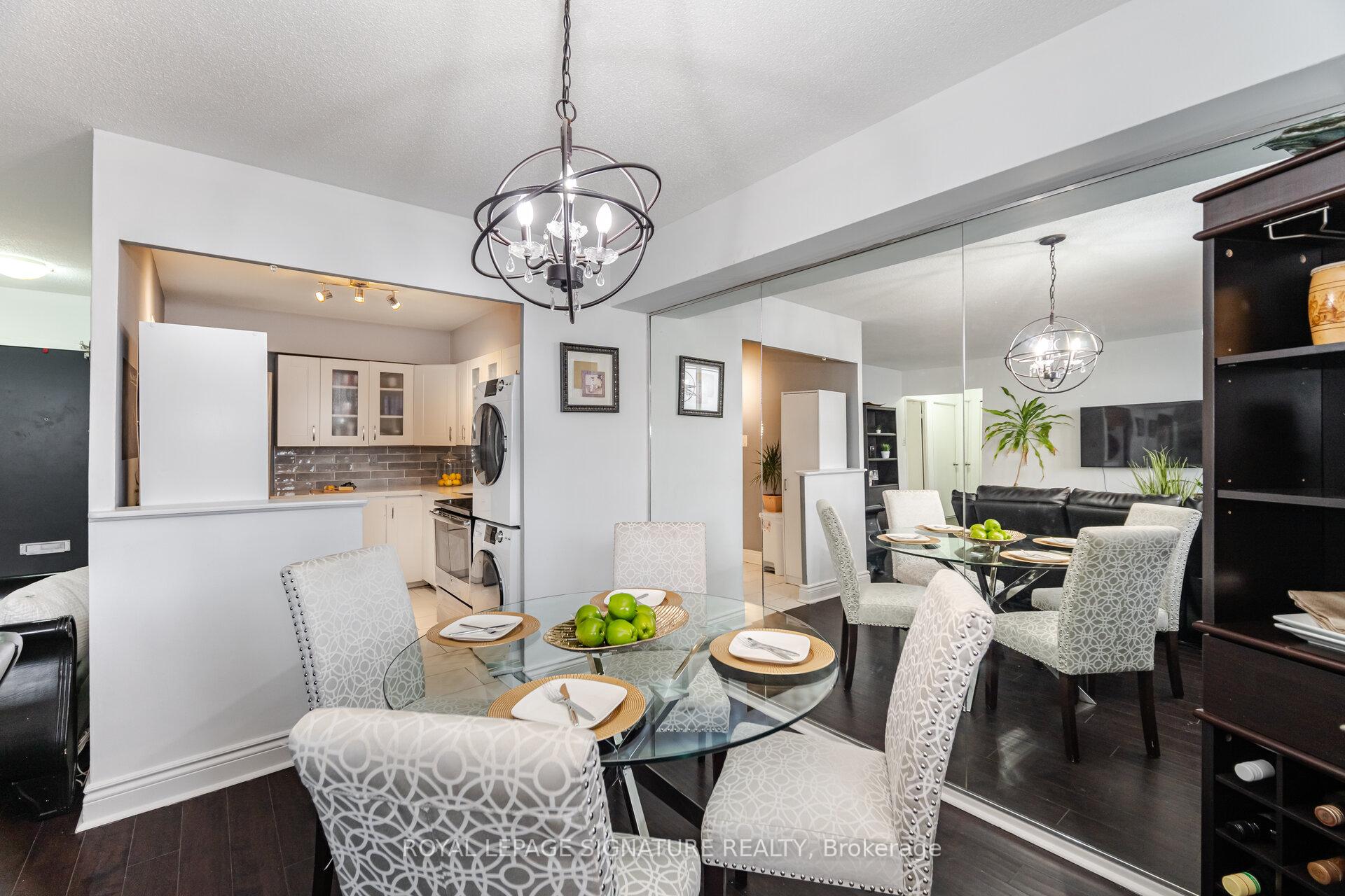Client RemarksAMAZING VALUE!!!!!! Updated and Spacious one bedroom suite in desirable and well managed Sussex House! A must see with over 800 sq ft of living space and tasteful and neutral quality upgrades. The Large bedroom is able to accommodate a King size bed and Dressers and boasts a roomy walk in closet. The open concept Living and Dining rooms are equally large ...Perfect for those that like to entertain! The kitchen has been updated and features Stainless appliances and In-suite laundry. The updated 4 pc bathroom features modern ceramic floors and tub surround. The open balcony offers some of the best views in the building with a Stunning Panoramic view of the Toronto Skyline. Building amenities include a heated outdoor pool, tennis courts Gym Sauna and much more !!! **EXTRAS** Existing Stainless Fridge, Stainless Stove, Washer, Dryer, Window Air conditioner.