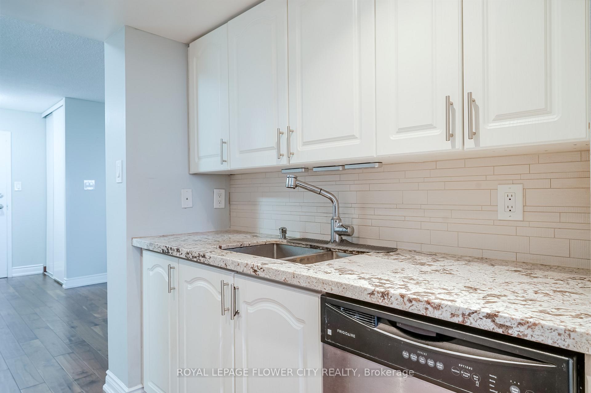 Beautifully updated condo with breathtaking views of the ravine, river, and city skyline! This spacious 2-bedroom, 2 full bathroom unit features an open-concept living and dining area with a bright solarium, walnut hardwood floors, and ensuite laundry. The renovated kitchen boasts granite countertops, stone tile backsplash, and newer doors. The primary bedroom includes a full ensuite with tub, separate shower, and walkout to a private balcony. Includes 2side-by-side parking spots. Located close to all amenities including shopping, schools, parks, and public transit-this is the perfect blend of comfort, style, and convenience!