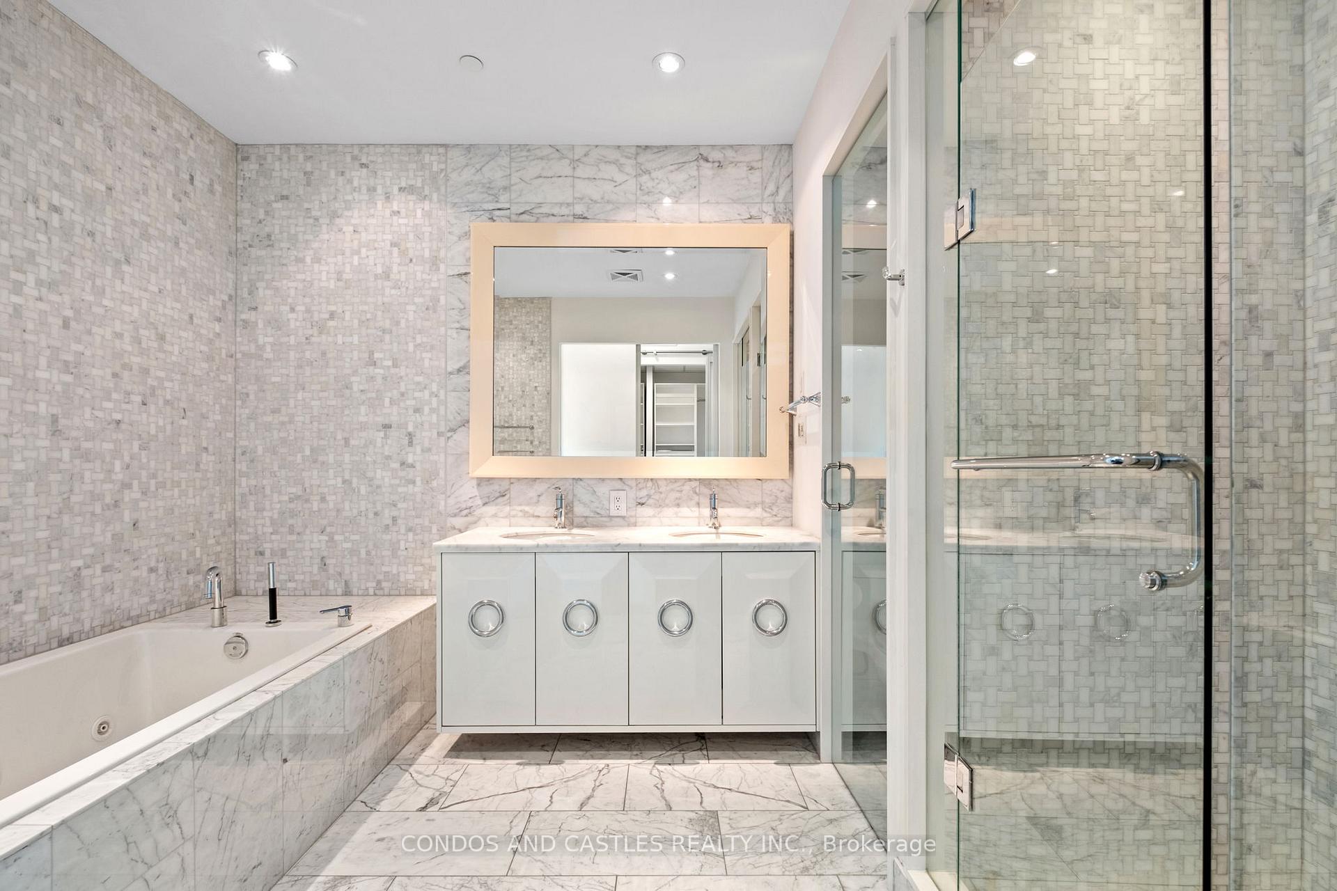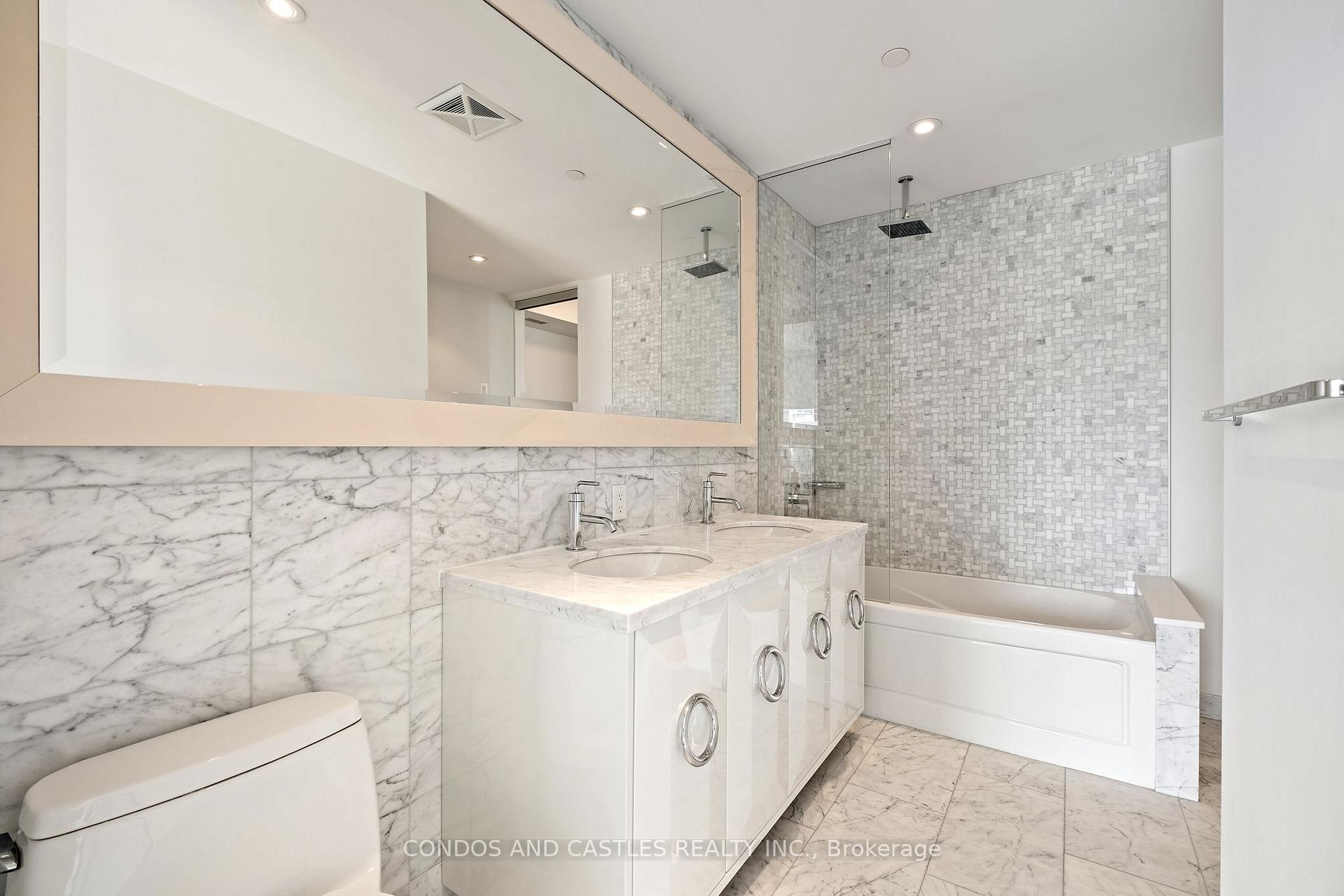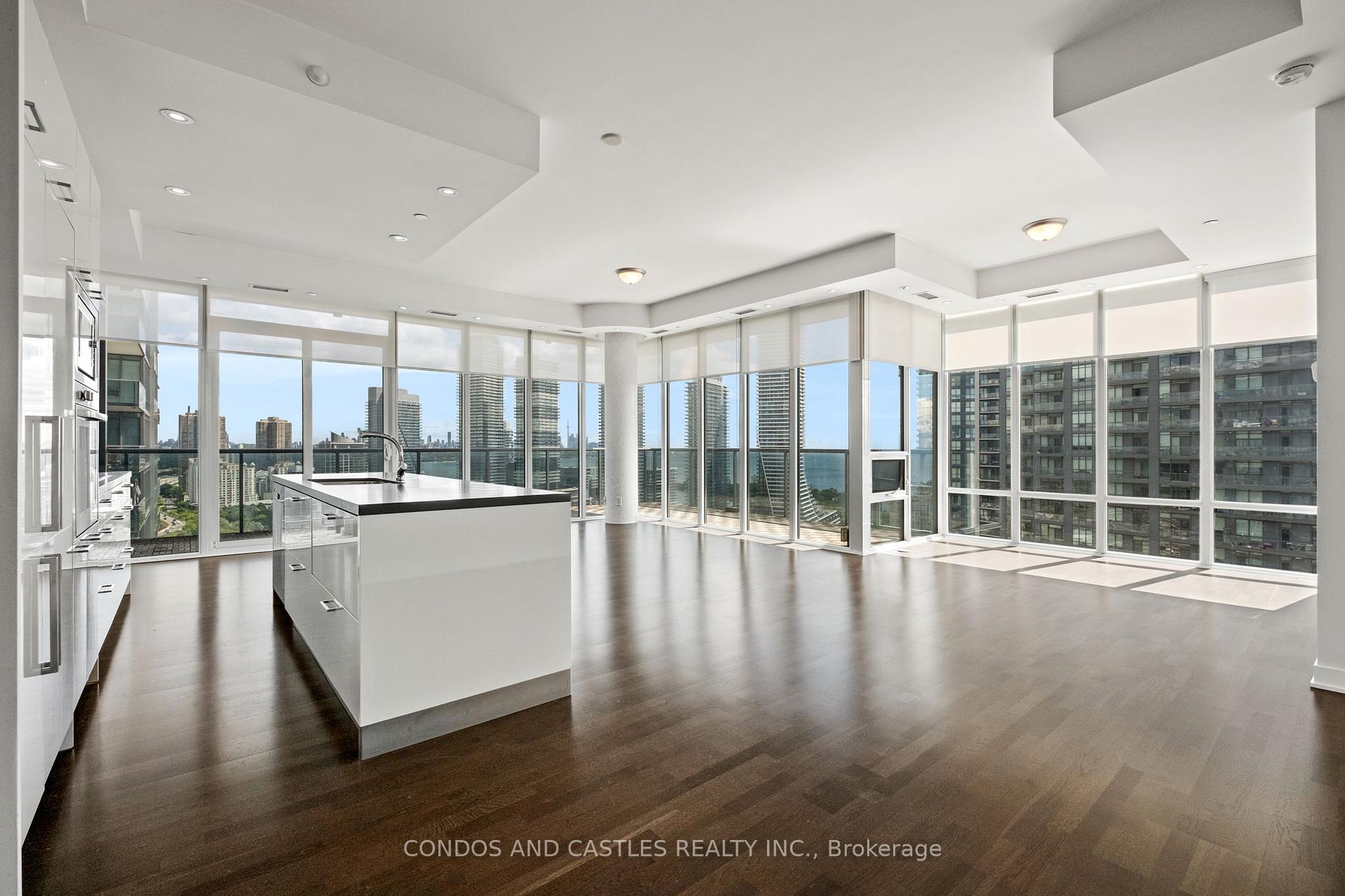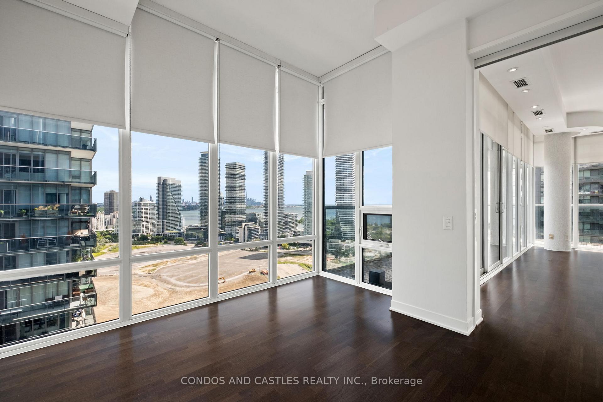 Award winning master planned community "South Beach Condos & Lofts" by Amexon. Close proximity to downtown, waterfront and public transportation. Vacation type living at its fullest with over 40,000 sq ft of resort lifestyle amenities. High end art deco retail gateway at entrance. Rarely offered Penthouse suite, large 3bd+den, 3 bathroom corner unit with soaring 10' ceilings. Fully upgraded with thousands spent..Wrap around terrace and private balcony with walk out in primary bedroom. Wrap around floor to ceiling windows with spectacular panoramic views. Luxuries finishes, European appliances, Pot lights, marble kitchen and bathrooms, panelled fridge and dishwasher (double door fridge/freezer), spa like bathrooms. Separate laundry room with ample storage. Double sink, jacuzzi tub and heated floors in primary ensuite. Jack and Jill bathroom with double sink connected to 2nd and 3rd bedroom. Custom Closet organizers throughout. Two parking spots included (side by side) with your own private garage (EV charging). One locker included. A must see!