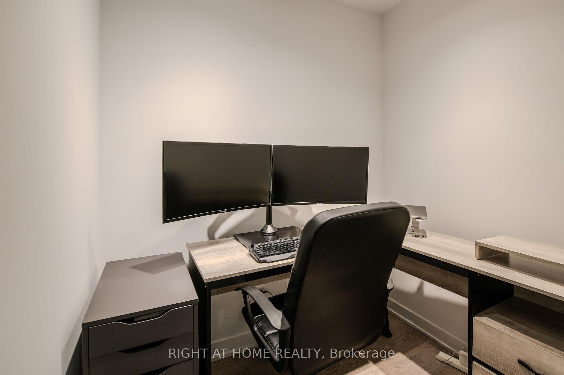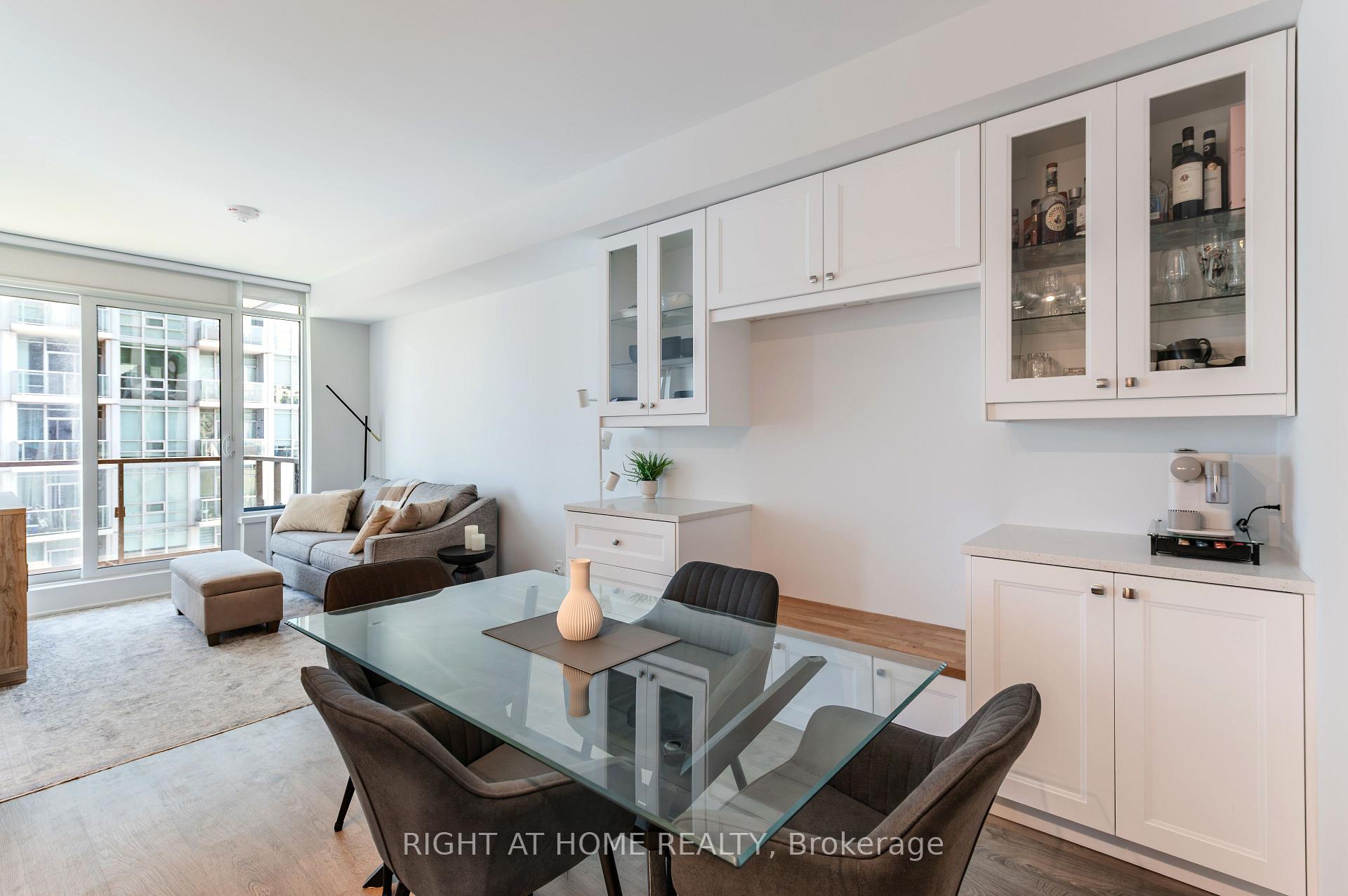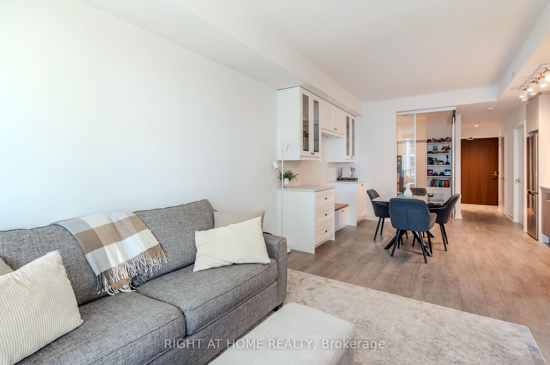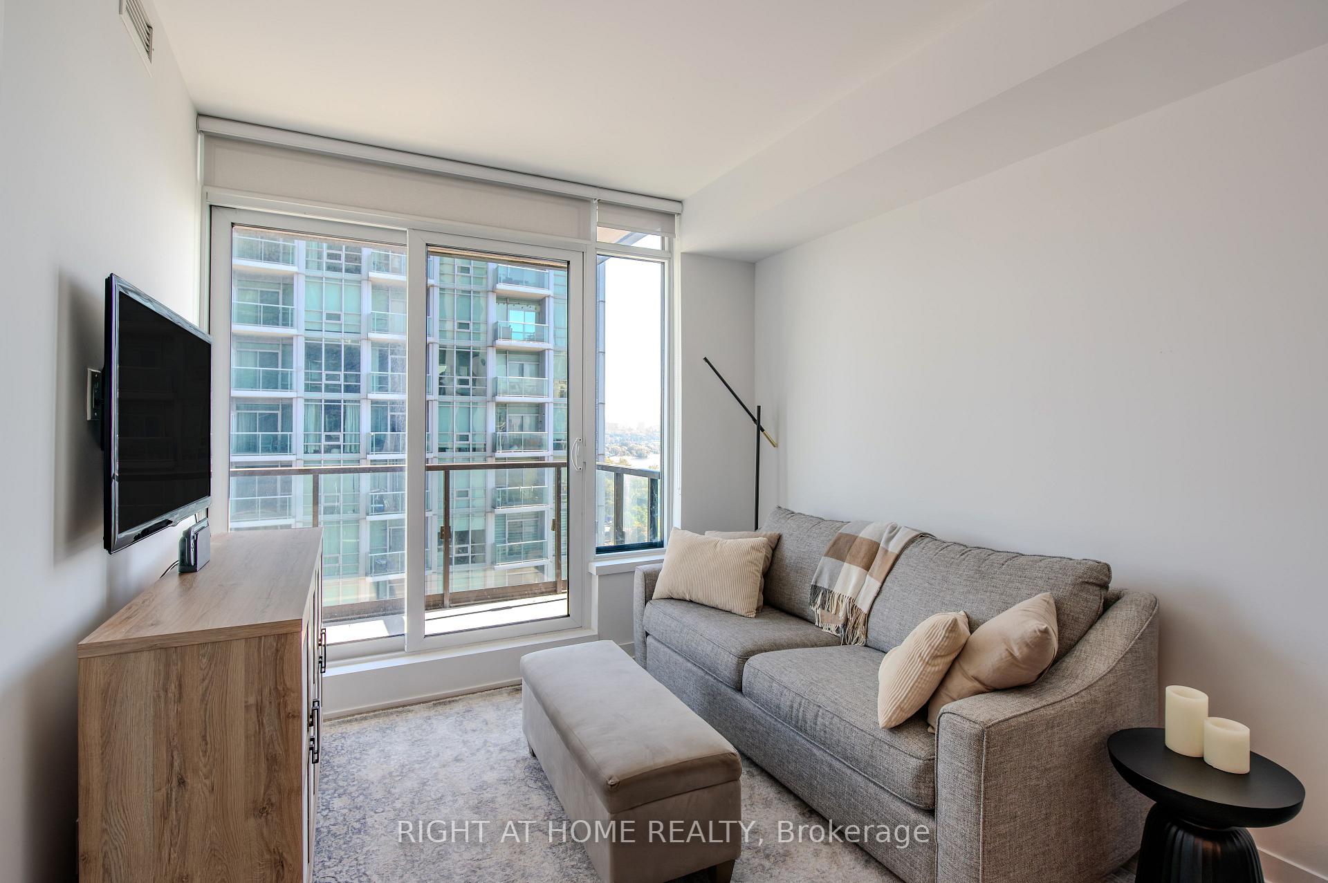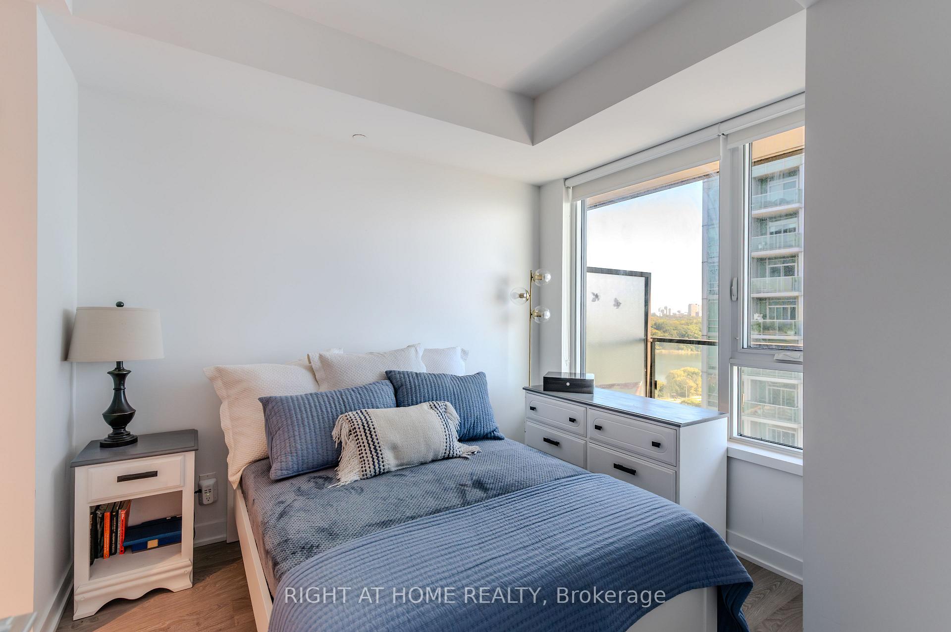 Welcome to Suite 1806 at 1926 Lake Shore Blvd W - a bright, modern condo offering stunning views of Humber Bay and the city skyline. The open-concept layout features a beautifully upgraded kitchen and custom built-in wall unit that adds valuable counter and cabinet storage space. The living area opens to a private balcony, perfect for morning coffee or sunset views over the lake. The primary bedroom offers generous closet space and serene natural light, and the den provides a valuable office space, letting you work from home in private. Residents enjoy premium amenities including a fitness centre, pool, and 24-hour concierge. The seller is also open to including the kitchen and living room furniture, as well as the primary bedroom bed, making this home truly move-in ready.