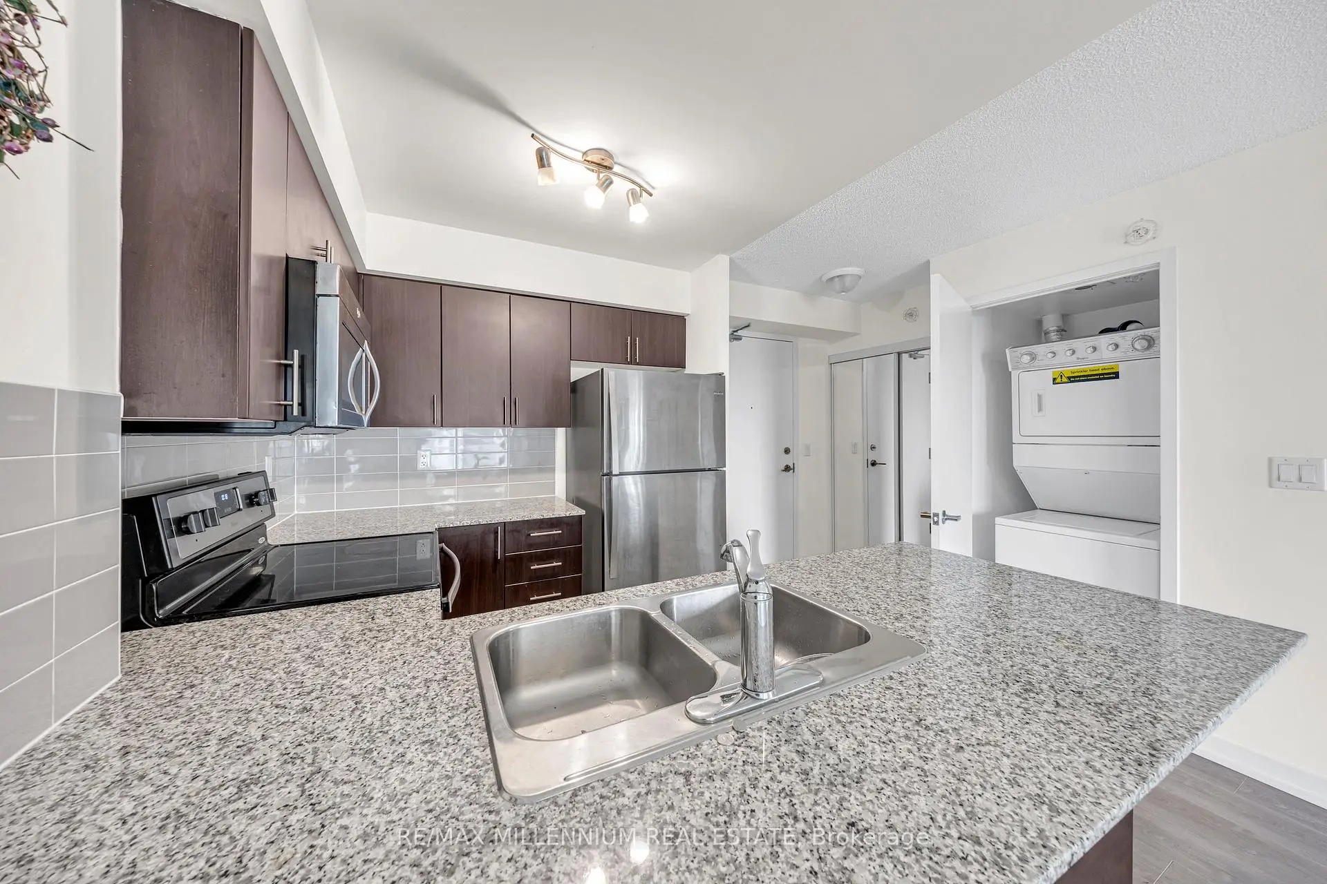Condo living at its finest! This bright and beautifully designed 1-bedroom suite offers the perfect open-concept layout with no wasted space. The modern kitchen features full-sized stainless steel appliances, granite countertops, and a breakfast bar ideal for cooking and entertaining. The spacious bedroom includes a double closet, while large windows fill the home with natural light. Enjoy the ultimate convenience with a grocery store and drugstore in the building, plus easy access to The Junction, Bloor subway, and High Park. Complete with parking and locker this is modern city living done right.
