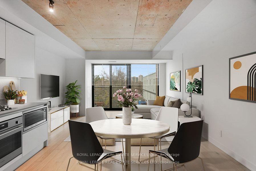 Urban living in the heart of the Junction! Step inside Superkul's award winning boutique condominium project - the Junction House. This thoughtfully designed and spacious, almost 700 sqft, one bedroom unit features exposed 9ft ceilings, floor to ceiling windows, contemporary materials and finishes for both entertaining & ease of living. Well appointed modern Scavolini kitchen includes integrated appliances, porcelain tile backsplash & gas cooktop. There's plenty of room for a dining table or island or both. The open concept living room is flooded with natural light - functional and inviting, an area you'll want to spend time in. Enough space to easily set up your home office. Spa-like bathroom includes a double door vanity, porcelain tiles & large soaker tub. Premium white oak hardwood flooring throughout. Steps from the best restaurants, cafes, charming local shops, breweries, farmer's markets, transit (15 min walk to GO Train, UP Express, subway) providing every convenience. The unique building includes a dynamic co-working/ social space, reliable concierge, well-equipped gym, yoga studio, visitor parking, 4000 sqft landscaped rooftop terrace with BBQs, fire pits and stunning city skyline views. One large storage locker included. Available rental parking in the building. Freshly painted. Don't miss the opportunity to own in one of Toronto's most vibrant and sought after neighbourhoods.