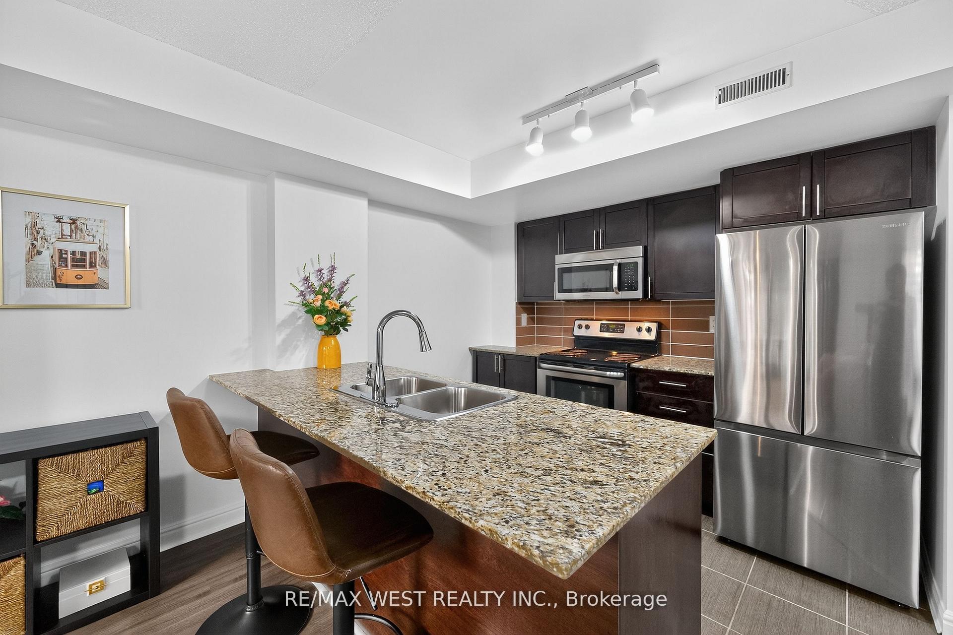 Beautiful 2-Storey Townhouse Located In The Desirable Emerson Wallace District. 2 spacious Bdrm and 2 Bath, W/Private Terrace. Large and functional Layout to this amazing Open Concept, all the rooms are Generous Sized Rms, Stylish & Quality Fin. Including, laminated floor , delightful Kitchen W/Brkfst Bar, Master W/I Closet, 2nd Bdrm W/ Dbl Closet, Main Flr Powder Rm, Foyer W/Entrance Closet. Ensuite Laundry & 1 Undgrnd Parking Spot. Great For Entertaining & Close To All Amenities. A Must See!