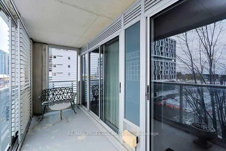 Welcome to Loggia condos on The Queensway! Spacious and bright 2 plus den approx 1000 sq ft plus 173 sq ft balcony! Desirable southwest corner suite with floor to ceiling windows! 3 walkouts to a large balcony outfitted with aluminum louvered shutters that create privacy and shelter for multi-season use! Open concept kitchen allows for easy flow with the living and dining areas. Primary Bedroom can fit a king sized bed! Huge walk-in closet and private 4 piece bath with a window! Versatile layout! The Second bedroom is currently set up as a living room. The Cozy den with pocket doors would also make a great office or extra bedroom. Lots of storage space! Locker is conveniently next to the underground parking space. Enjoy the great amenities- gym, Indoor lap pool, Sauna, Hot tub and Party Room! Concierge and Underground visitor parking. Ideal location near Cineplex Theatres, IKEA, Costco, many unique restaurants and neighbourhood shops, with easy highway access to downtown or Pearson. TTC practically at your door! New Longos opening soon nearby. Proposed park and more retail coming across the street!