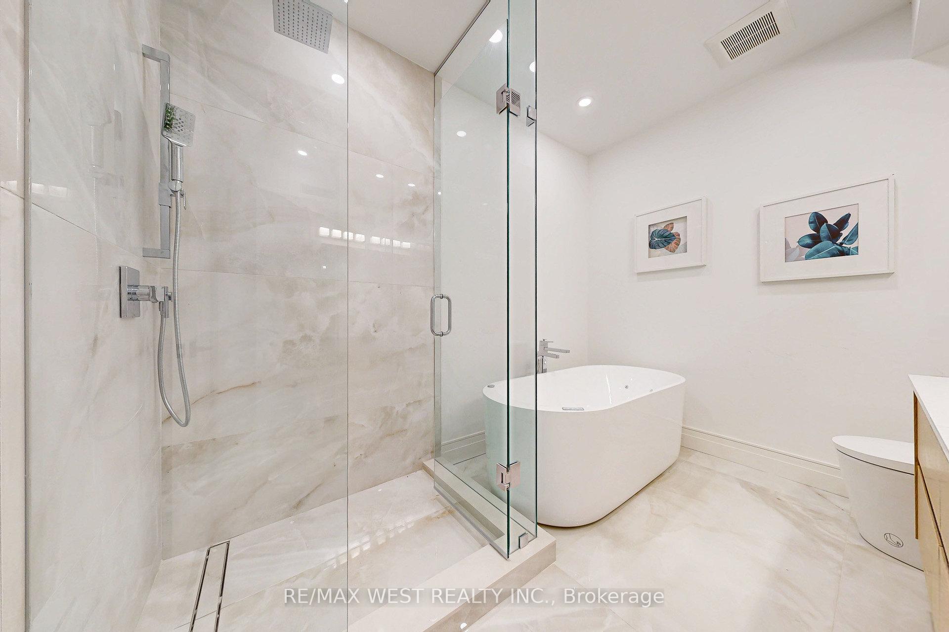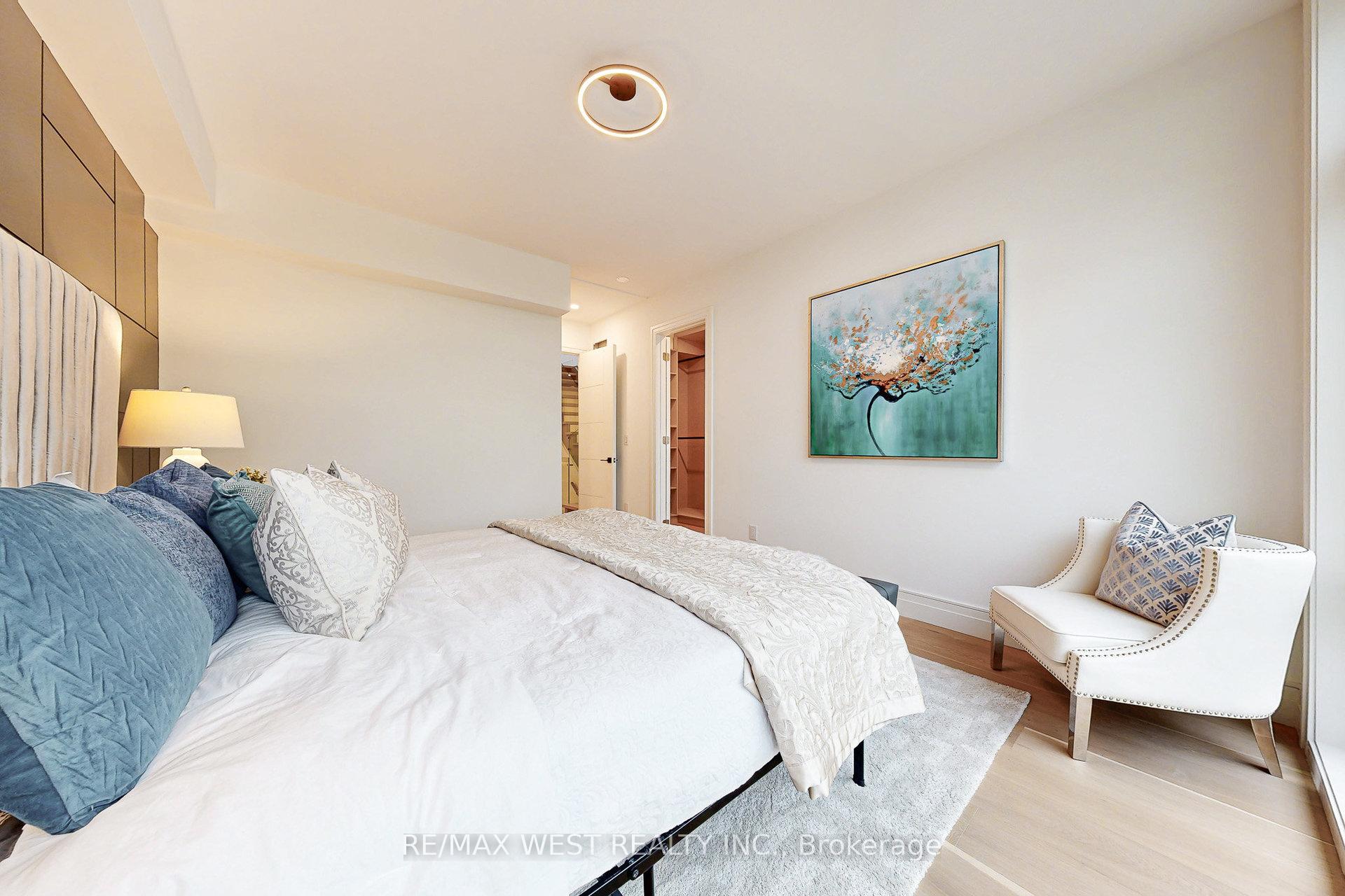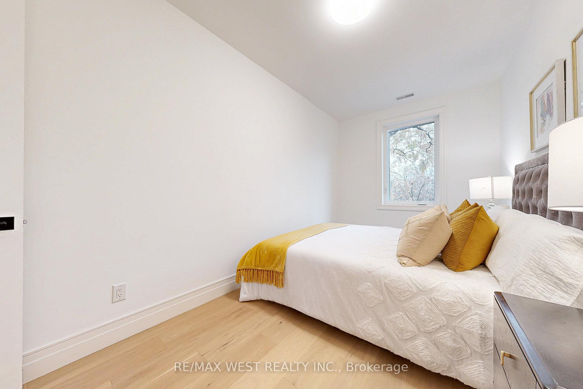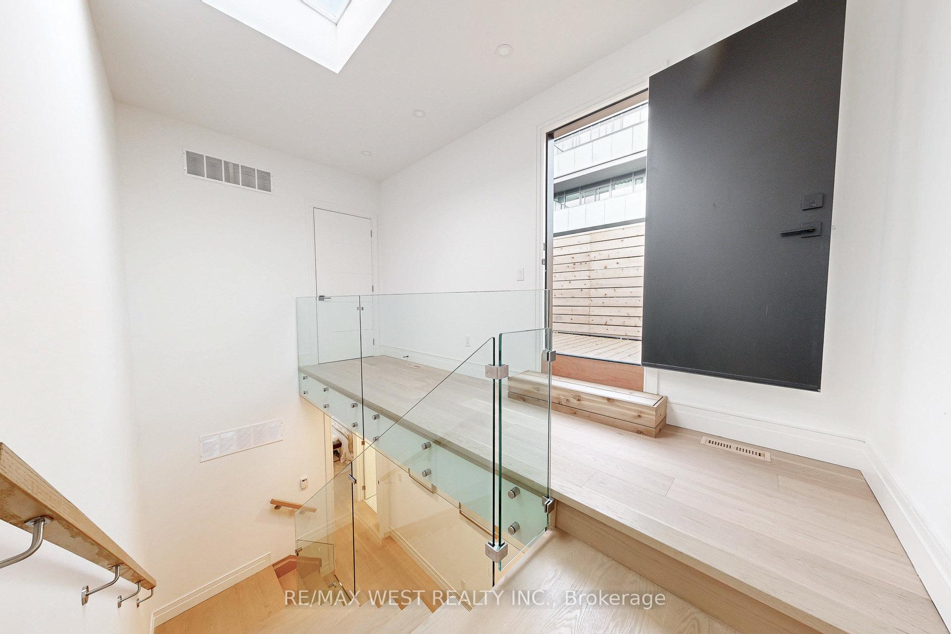 Welcome to 2639 R Dundas St Unit 4, Newly custom built 2600 Sq Ft sophisticated luxury End unit townhouse tucked just behind Dundas on a private lot with only 4 units. Features rooftop deck of 356 Sq Ft with skyline/CN tower views, a private backyard and a glass balcony off the kitchen to enjoy the outdoors. Refined craftsmanship and superior high-end finishes throughout sure to impress, featuring an open floor plan, sleek custom made 15 ft kitchen 9x3 ft quartz island with waterfall feature , Riobel touchless faucet, floor to ceiling windows. Airy bright family room with large window, media wall, fireplace and open shelves. Master bedroom retreat with floor to ceiling windows, custom accent wall, 12x5 walk-in closet with custom built in cabinets, Spa like bath features deep whirlpool tub, glass shower with waterfall, smart touchless toilet/bidet, and heated floors. Bedrooms 2&3 both have custom double built in closets and share a 4-pc bath. Glass railings on all levels, open staircase, 12 feet ceilings on main, 10 feet on second, and 9 feet on third. Skylight over staircase brings natural light to all levels. Welcoming foyer with 6x4 ceramic tiles heated floors, floor to ceiling closet/cabinets and direct access to a 220 sq foot garage. Impressive ground level recreation room with custom accent wall, 12 foot ceilings, 3pc bath, with direct access to private backyard. This room would also suit a home office, gym or nanny suite. These are just some of the exceptional features of this home, full list on feature sheet. Prime Junction Located within a short walk to Bloor subway and GO Train line to Downtown or Airport, and just minutes to Roncesvalles Village, High Park, and Bloor West Village shops, restaurants and great school district. Truly unique opportunity and great value that's almost impossible to find for a newly built home of this size in a prime Toronto west location.