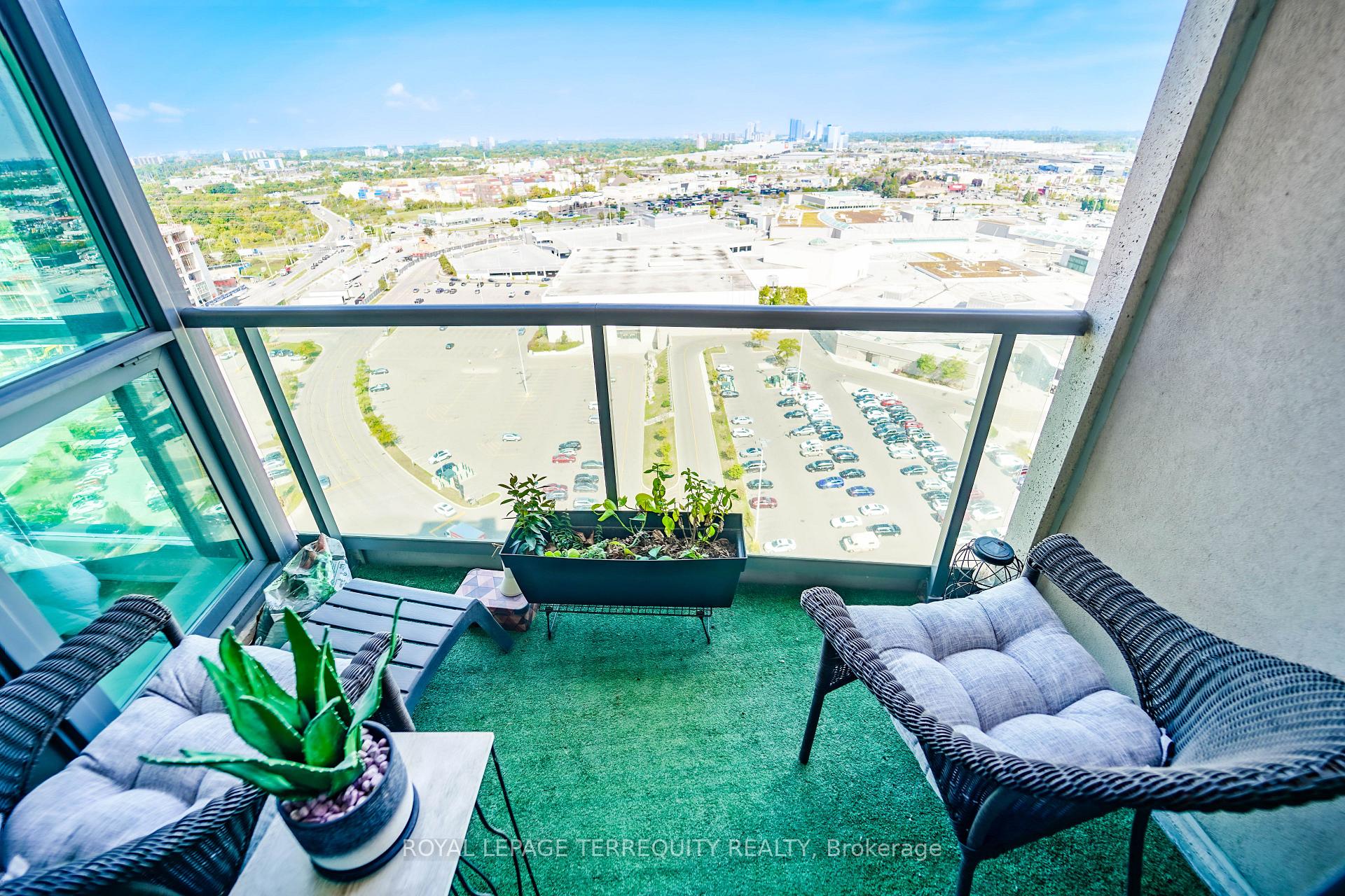 Welcome to One Sherway Tower 1 - where style, comfort, and convenience come together. This 1 Bedroom + Den suite features floor-to-ceiling windows, rich hardwood floors, and a bright open-concept layout perfect for entertaining or relaxing. Step out to your private balcony and enjoy serene north views. The modern kitchen with breakfast bar and brand-new appliances makes cooking effortless, while the airy primary bedroom with corner windows offers the perfect retreat. The versatile den doubles as a home office, dining nook, or guest space-flexibility that suits every lifestyle. Resort-style amenities include an indoor pool, hot tub, gym, theatre, and party room. All this just steps to Sherway Gardens, restaurants, cafes, transit, GO stations, and scenic trails. Perfect for professionals, couples, or investors looking for a prime location with unbeatable walkability and transit access. Don't miss the chance to own this highly desirable suite-book your showing today!