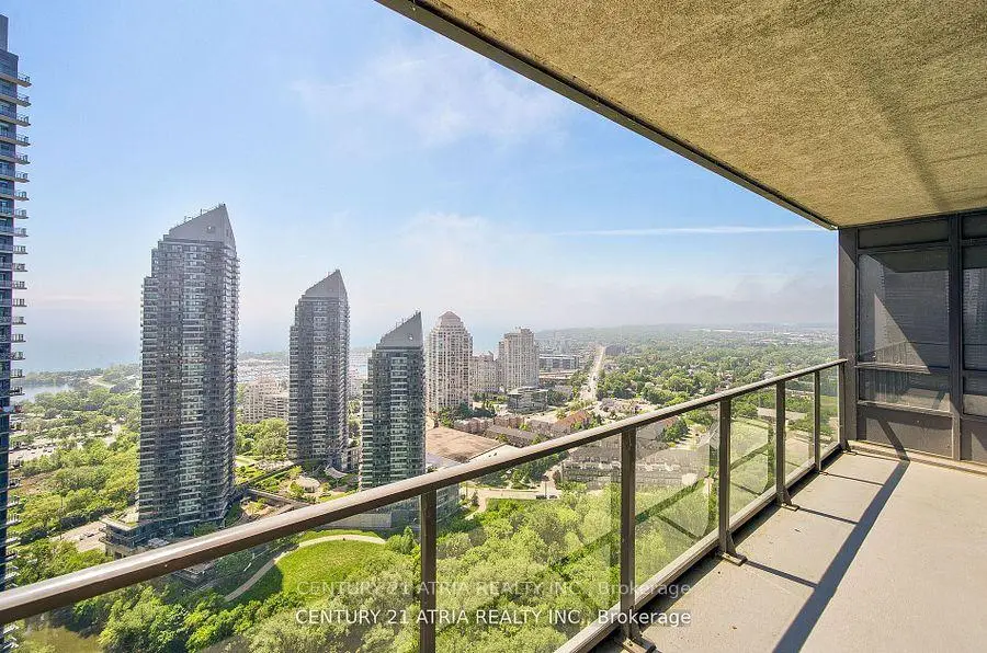 Breathtaking corner unit on 32 level, bright & gorgeous 2 bedrooms & 2 full washrooms, boasts approximately 990 sq ft + 125 sq ft balcony with lake view, facing south-east. Open concept living/dining, kitchen features quartz counter-top & stainless steel appliances. 3-pcs ensuite master bedroom & double closets, wide laminate throughout the apartment. Top-quality building and amenities. Walking distances to the lake, Humber Bay park, restaurants, & supermarket.