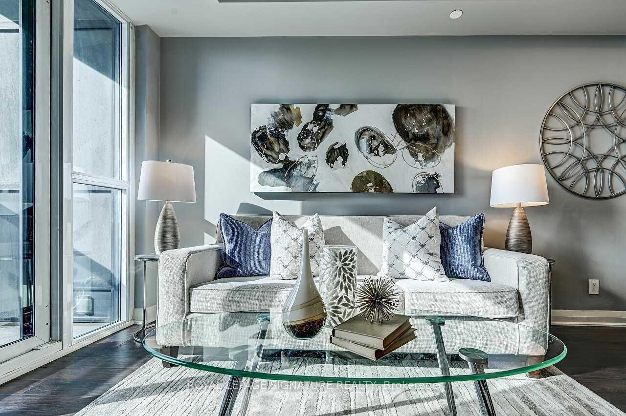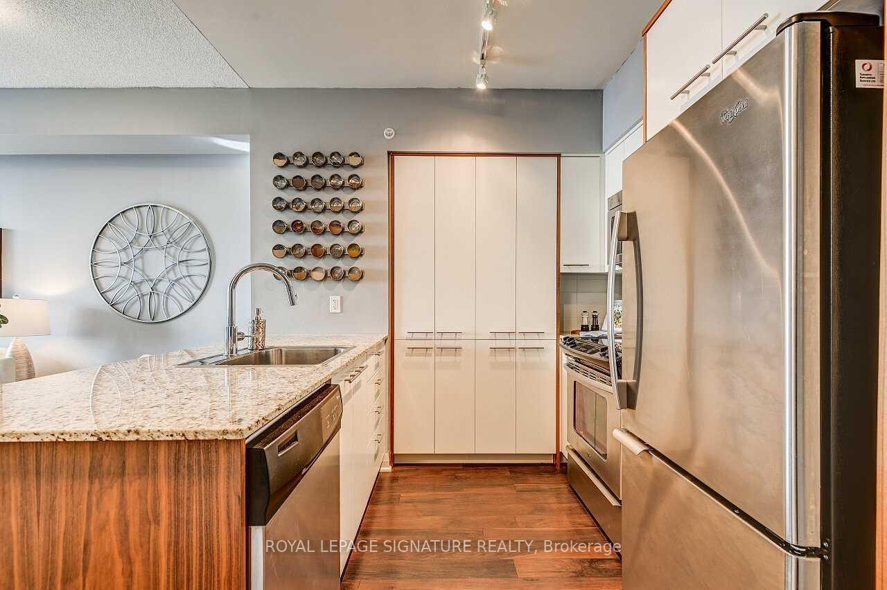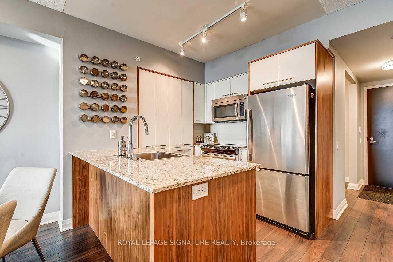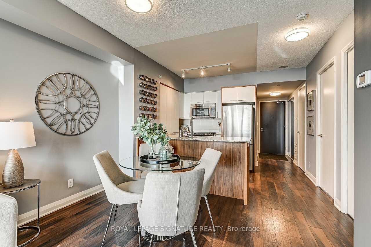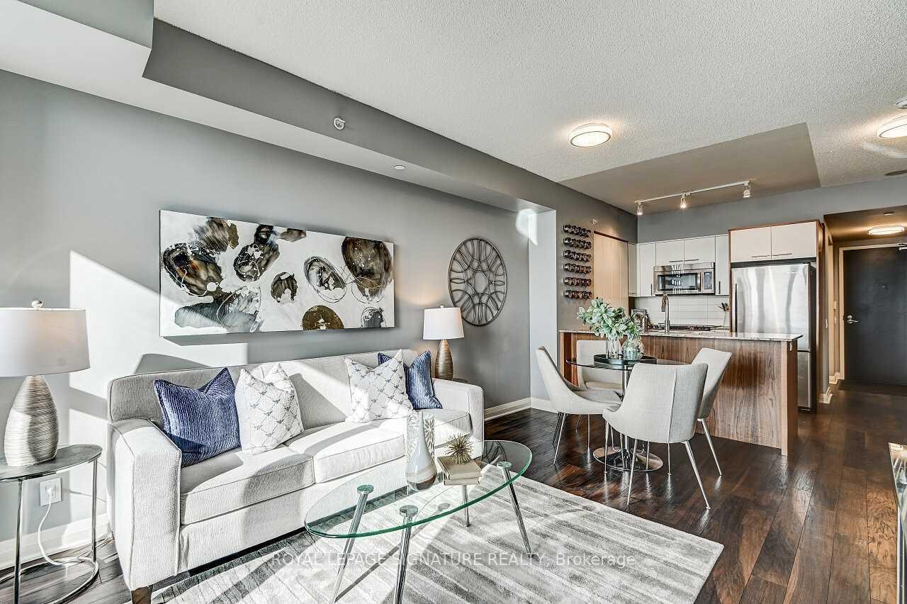 Stunning 1 Bedroom + Den with South Exposure.This bright and stylish suite offers 9-foot ceilings, modern laminate flooring, and convenient in-suite laundry. The open-concept kitchen features granite countertops, a breakfast bar which is great for entertaining, stainless steel appliances, and plenty of cabinetry. The sun-filled living area provides a walk-out to a private south-facing balcony, perfect for taking in panoramic views of Downtown Toronto, including the iconic CN Tower. The spacious primary bedroom includes a floor-to-ceiling window and a walk-in closet.Residents enjoy an impressive selection of resort-style amenities, including an indoor pool,sauna, fitness centre, yoga studio, guest suite, movie theatre, outdoor BBQ area, pet park, anda party/game room.The building offers 24-hour concierge service, secure parking (one spot included), and an unbeatable location close to Hwy 427, QEW, TTC, Kipling GO Station, shopping, dining,entertainment, top-rated schools, parks, Trillium Hospital and more.